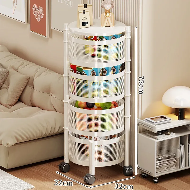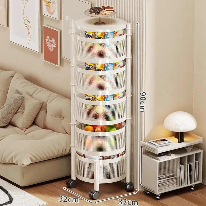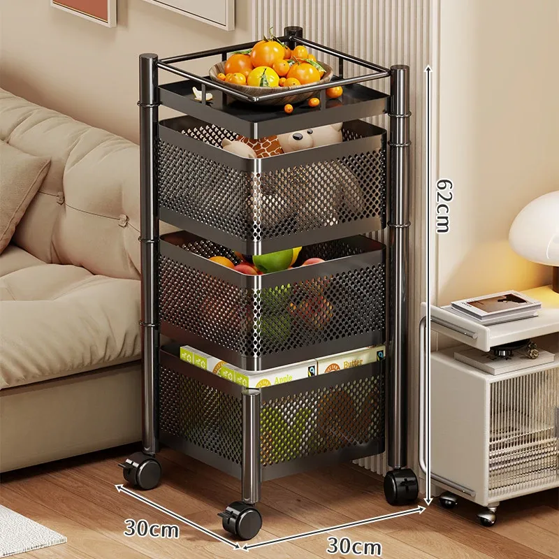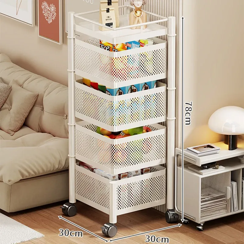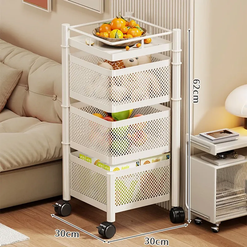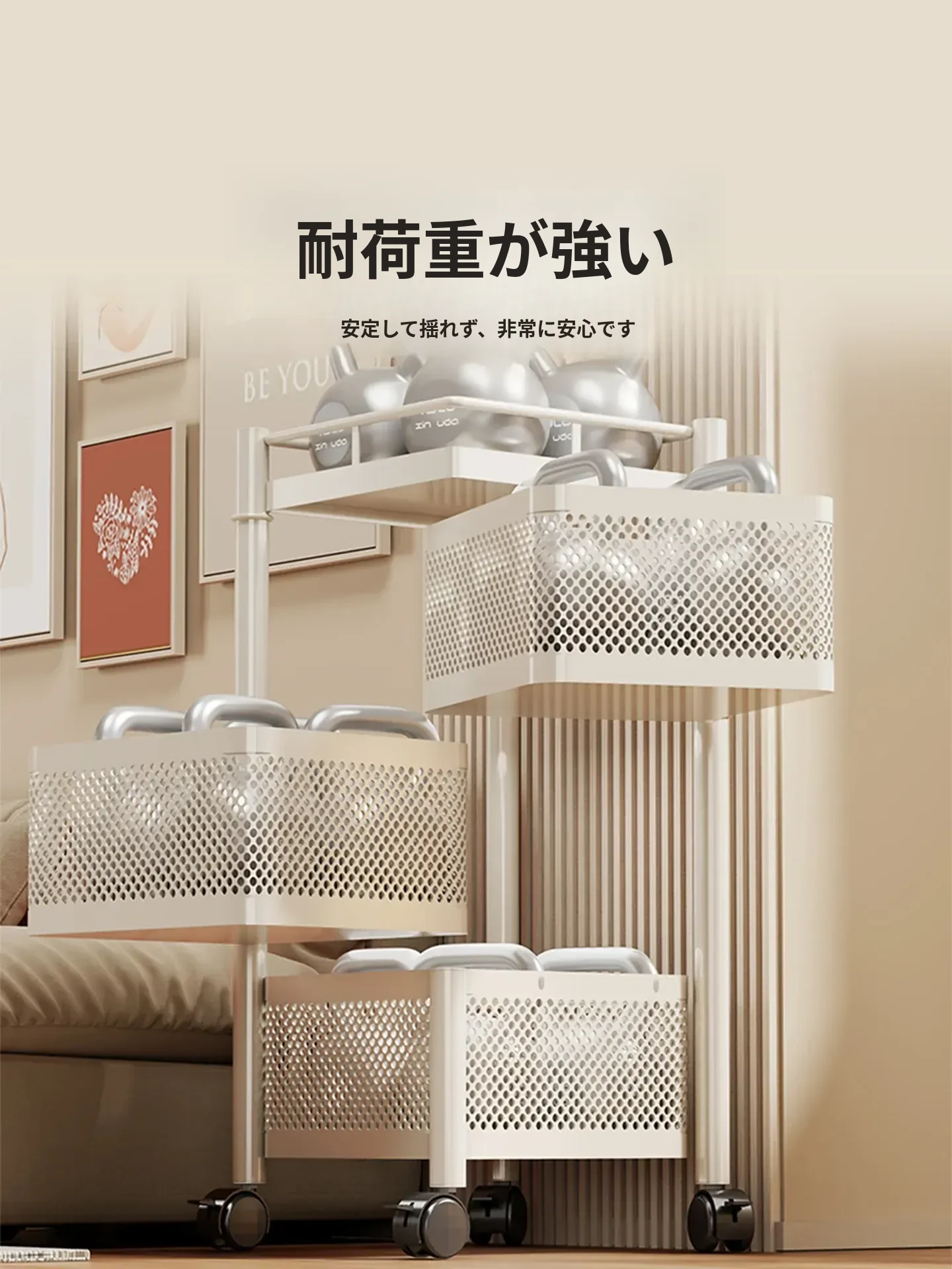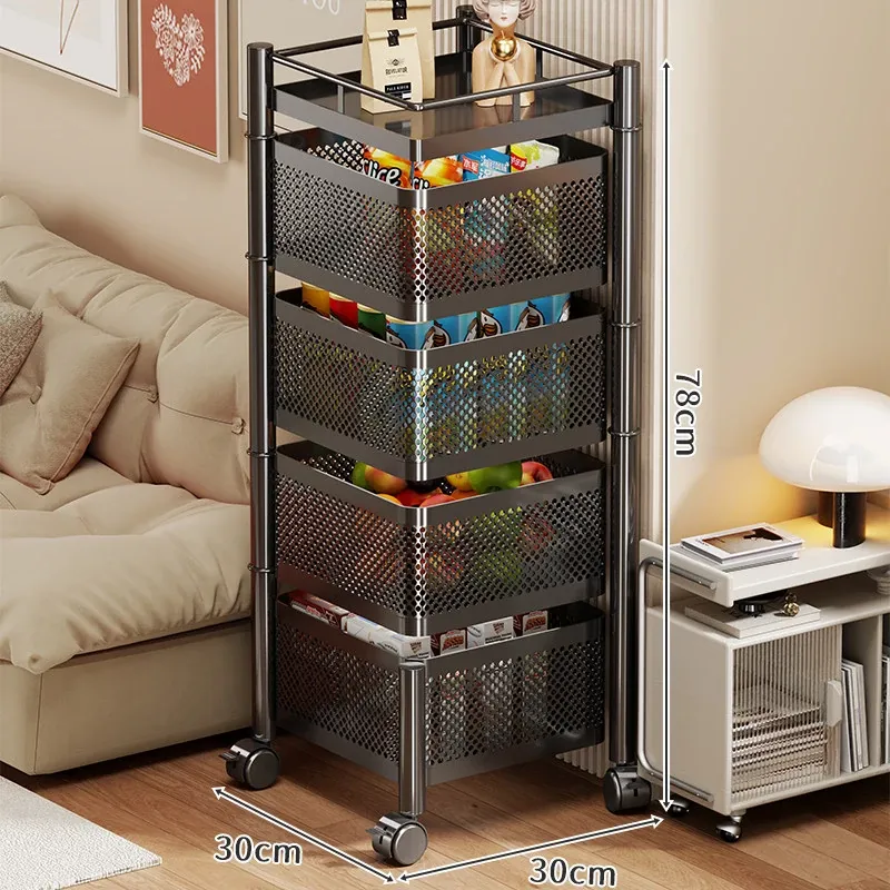 回転式マルチ収納キャリーワゴン - おしゃれで便利なスナック・フルーツ・書類整理ラック!多層デザインでスペースを有効活用!どこでも簡単に移動可能!