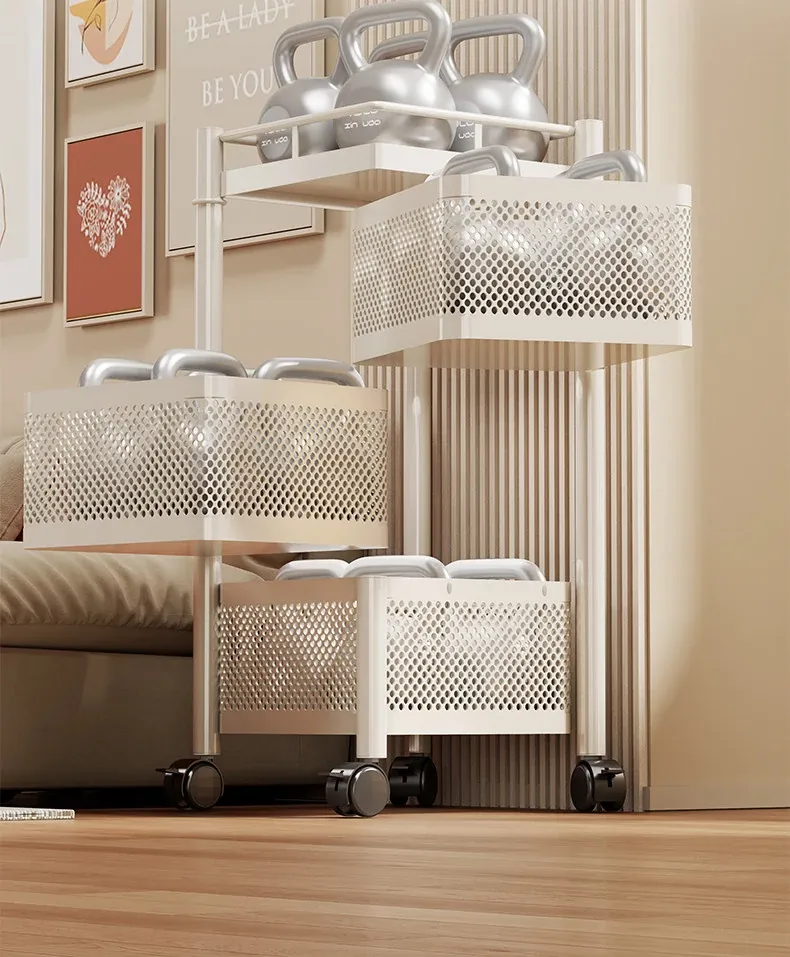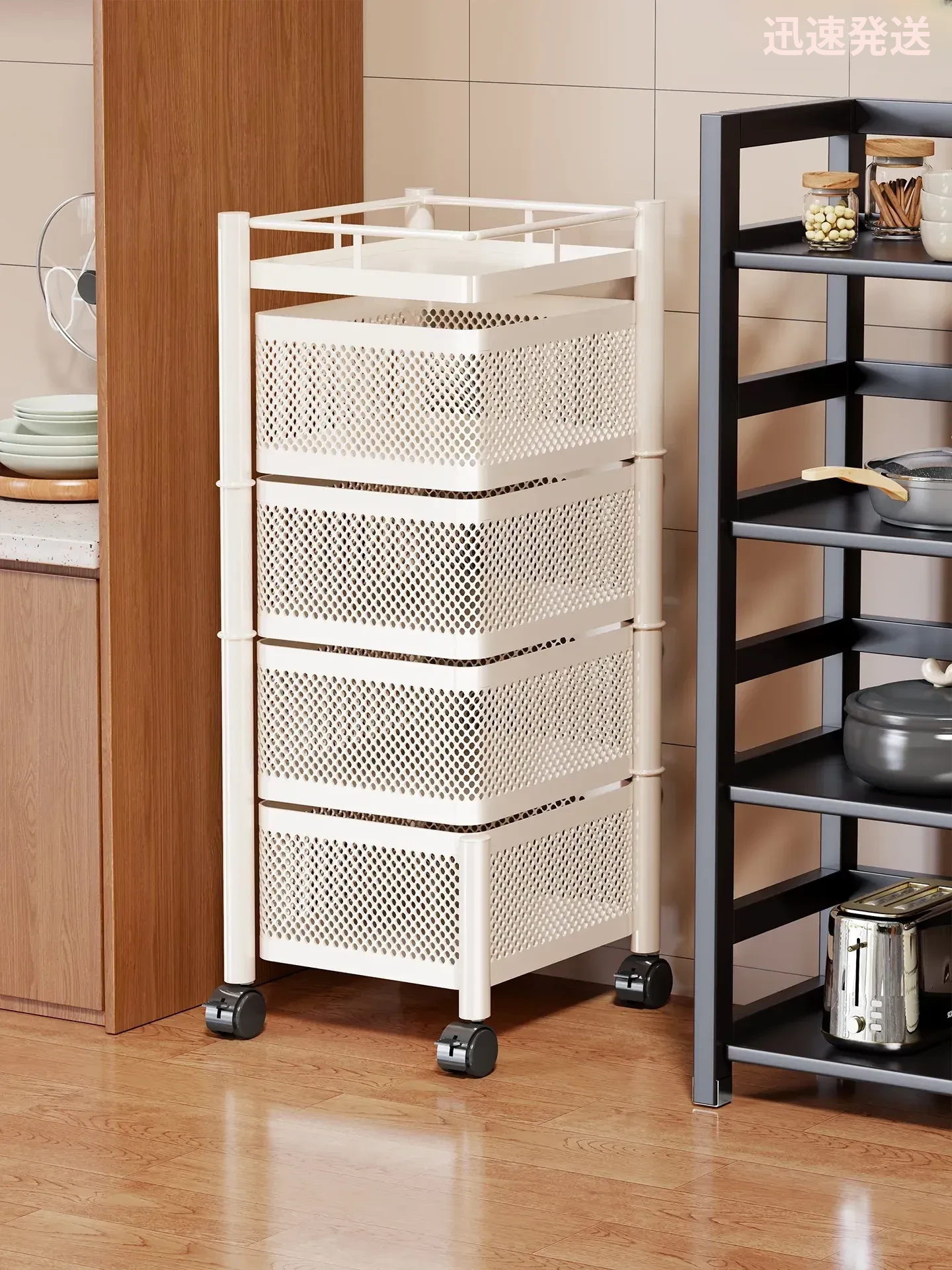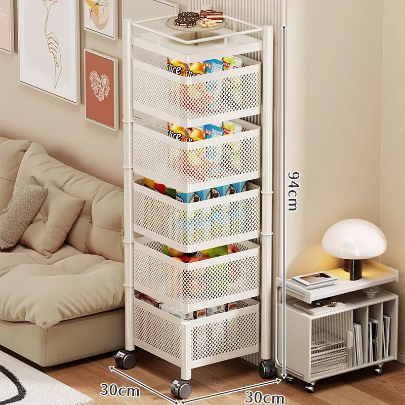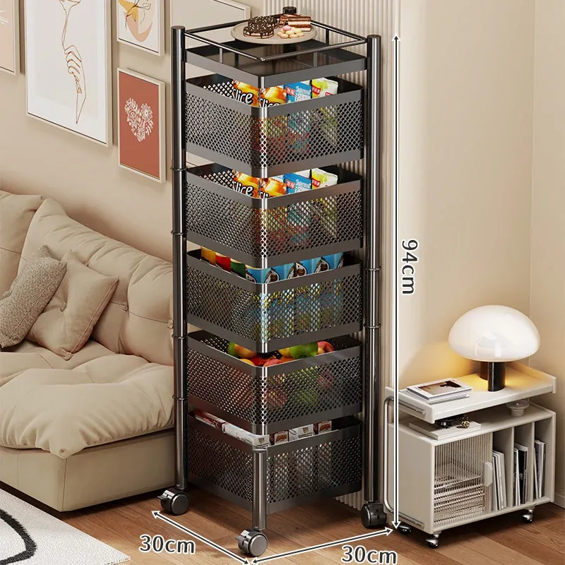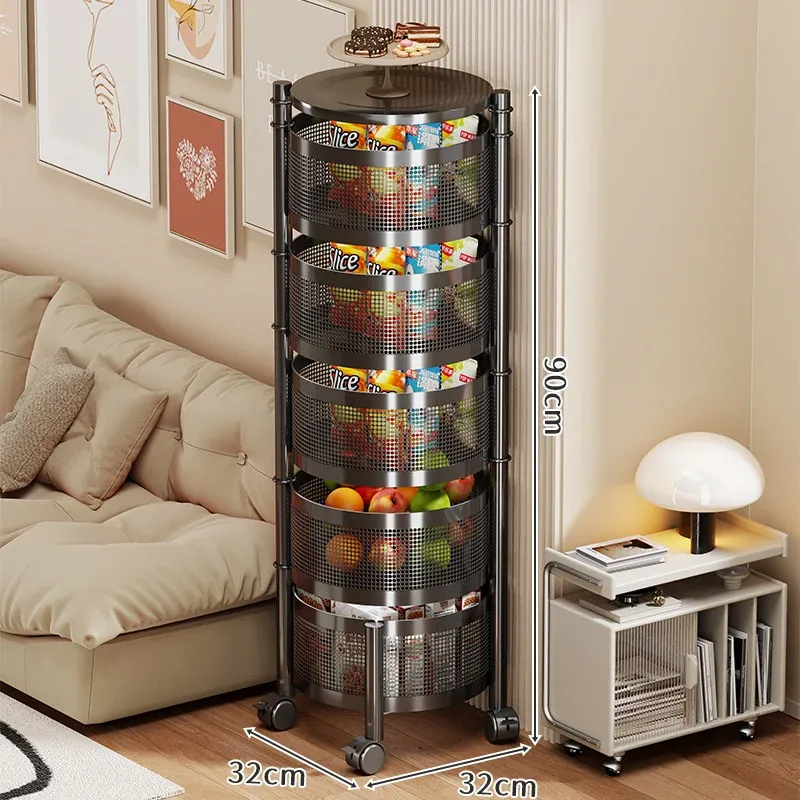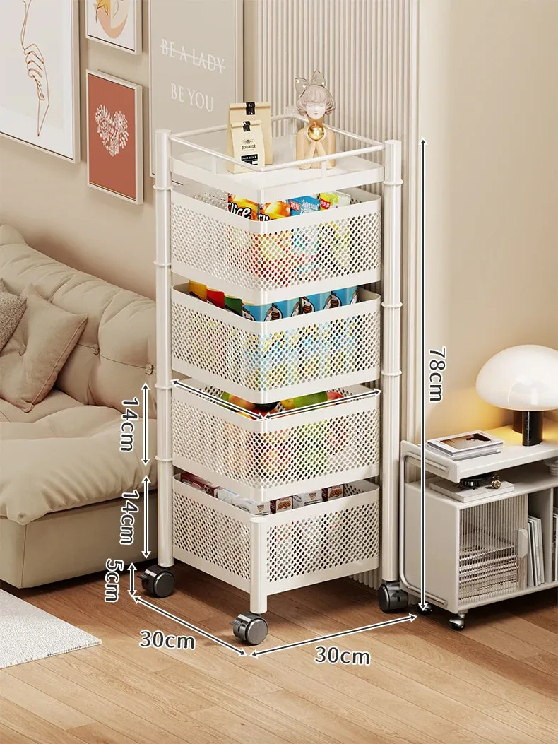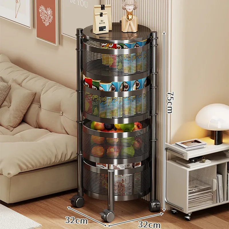 回転式マルチ収納キャリーワゴン - おしゃれで便利なスナック・フルーツ・書類整理ラック!多層デザインでスペースを有効活用!どこでも簡単に移動可能!