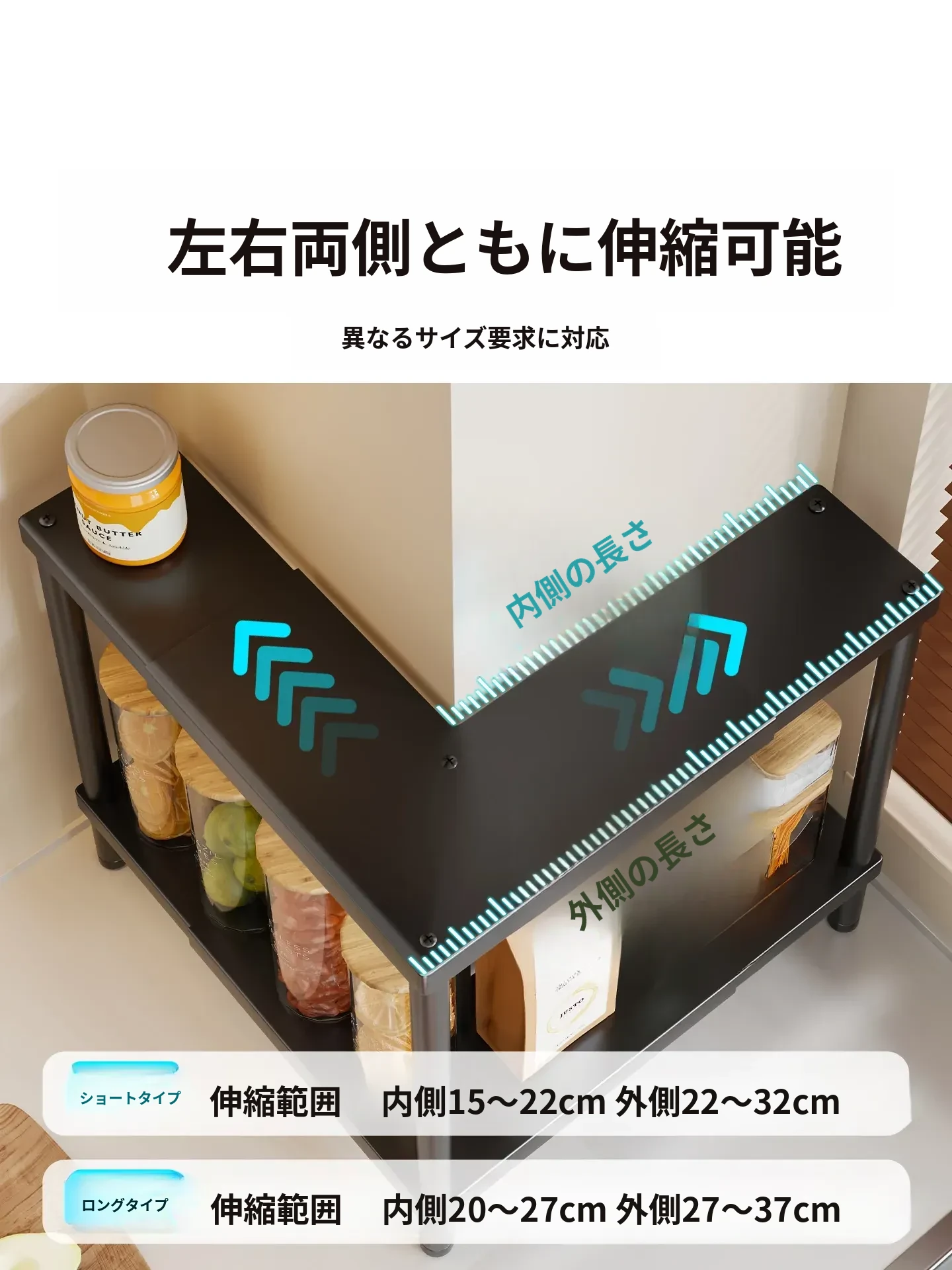 クリームホワイト二段【伸縮可能27-37cm 高さ40cm】
