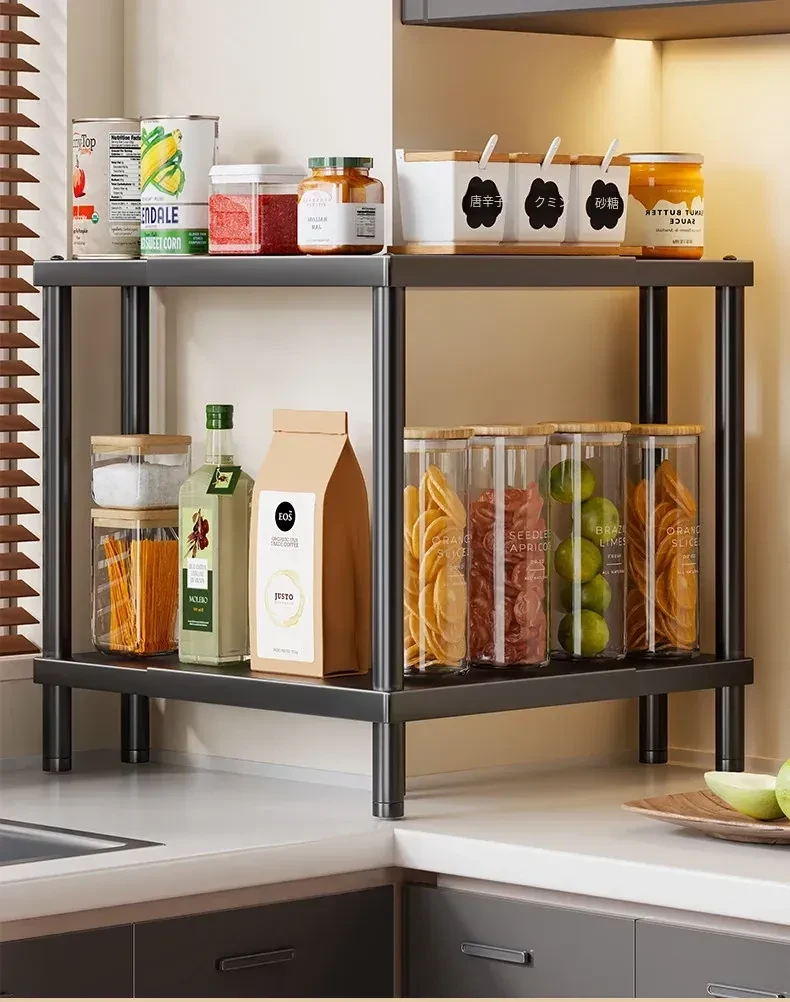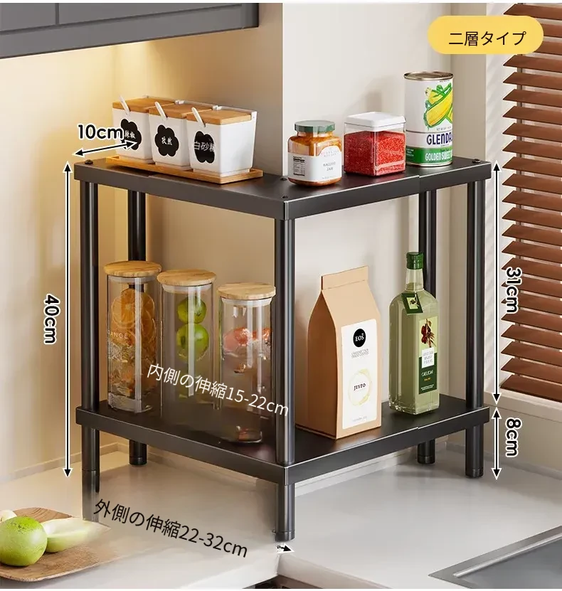 キッチン調味料ラック 多段式 台面収納 家庭用三角形調味料スタンド ソース・塩・スパイスボトルの整理に最適!コンパクトでスタイリッシュなデザインで、キッチンをスッキリと演出します。