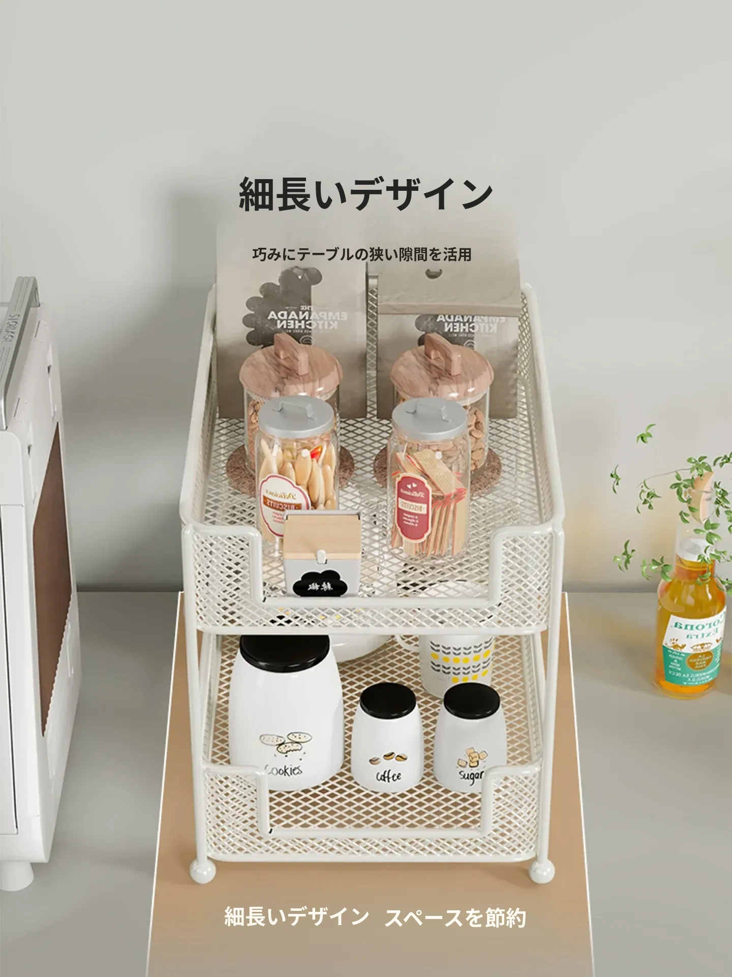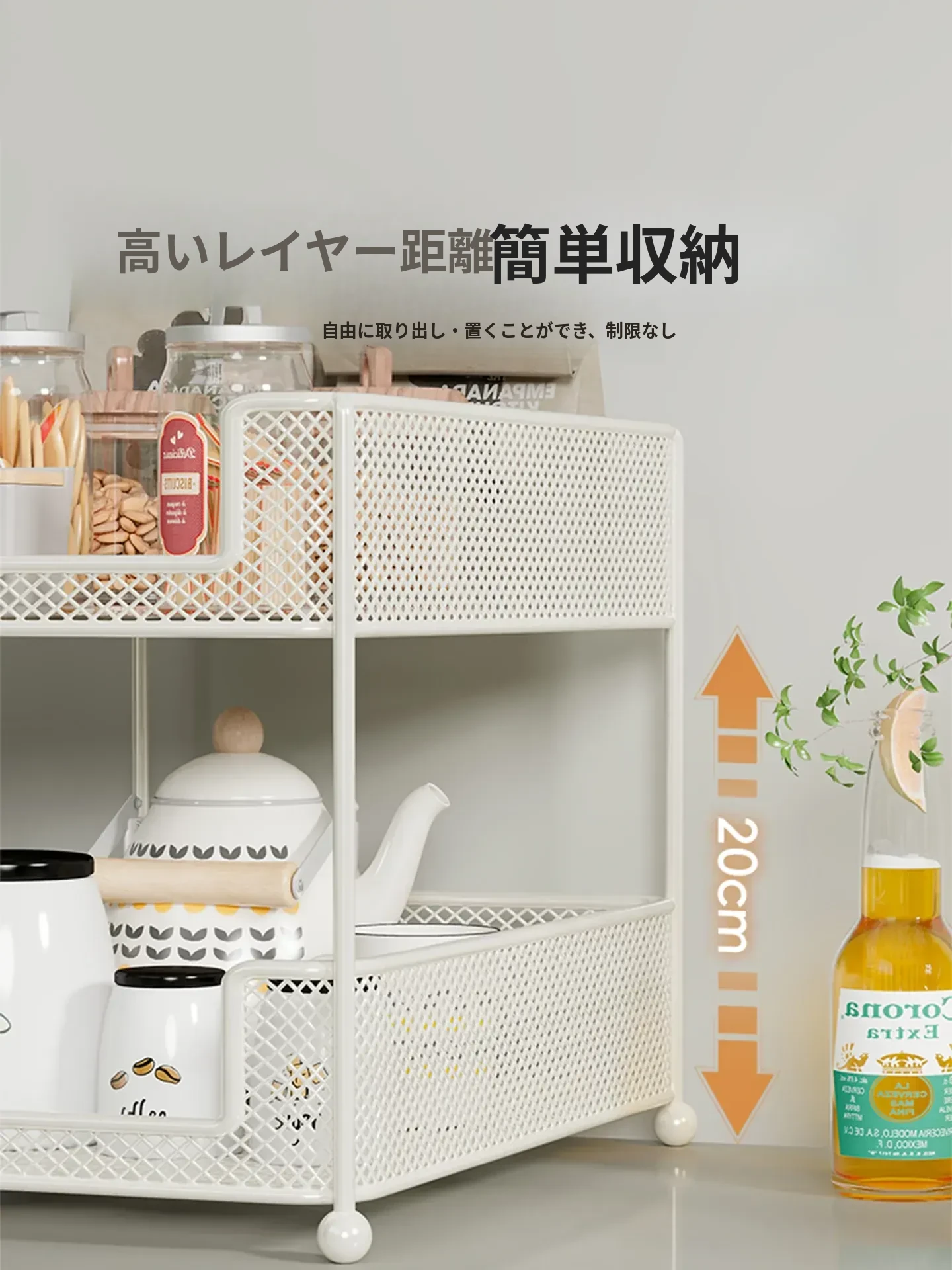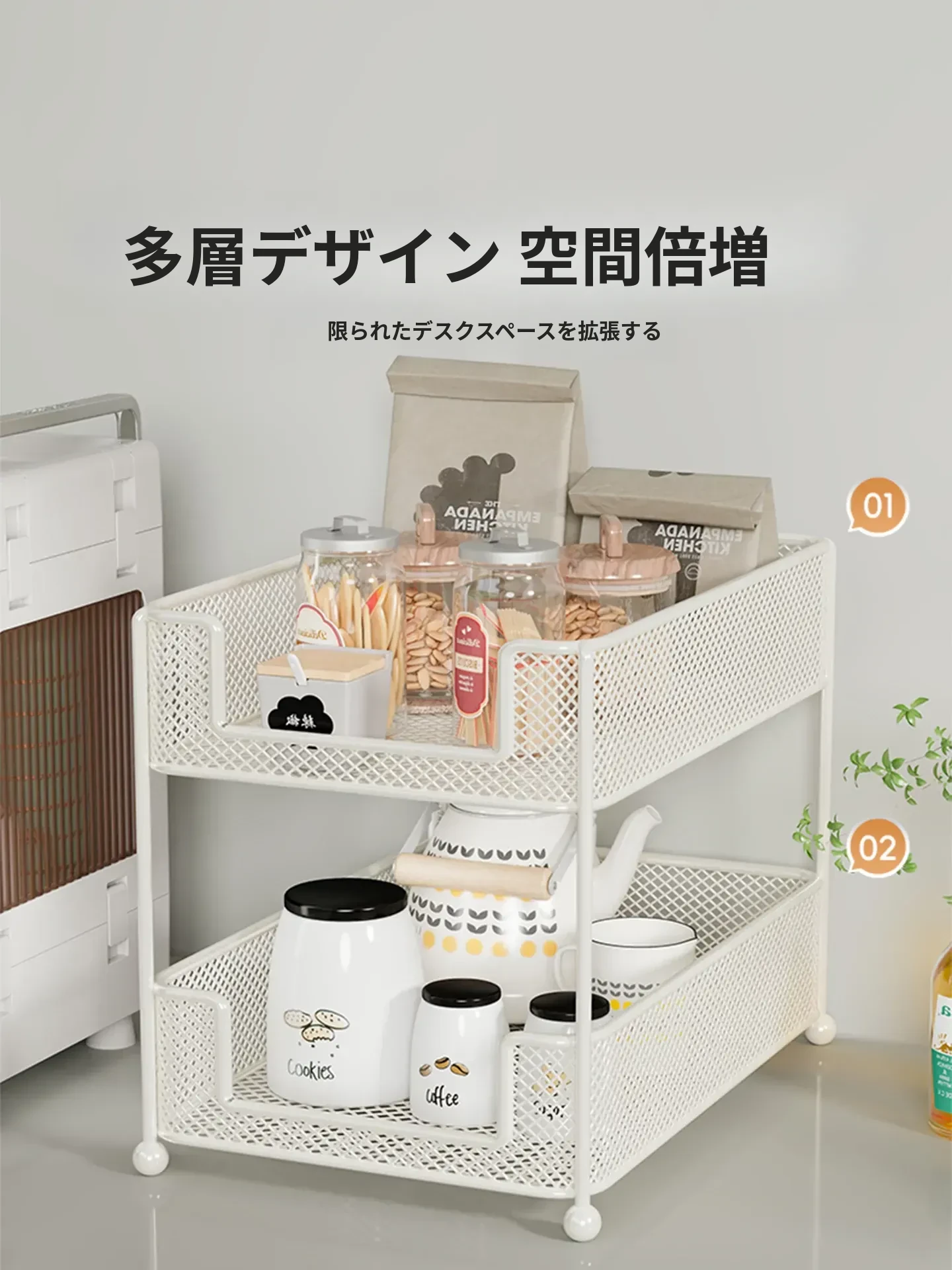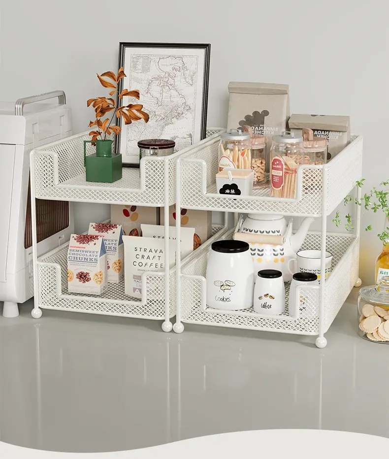 キッチンやダイニングテーブルに最適!多層収納のテーブルオーガナイザー - スナックやティーバッグをスッキリ整理できる、便利なデザインの棚。水杯や小物もおしゃれに収納!