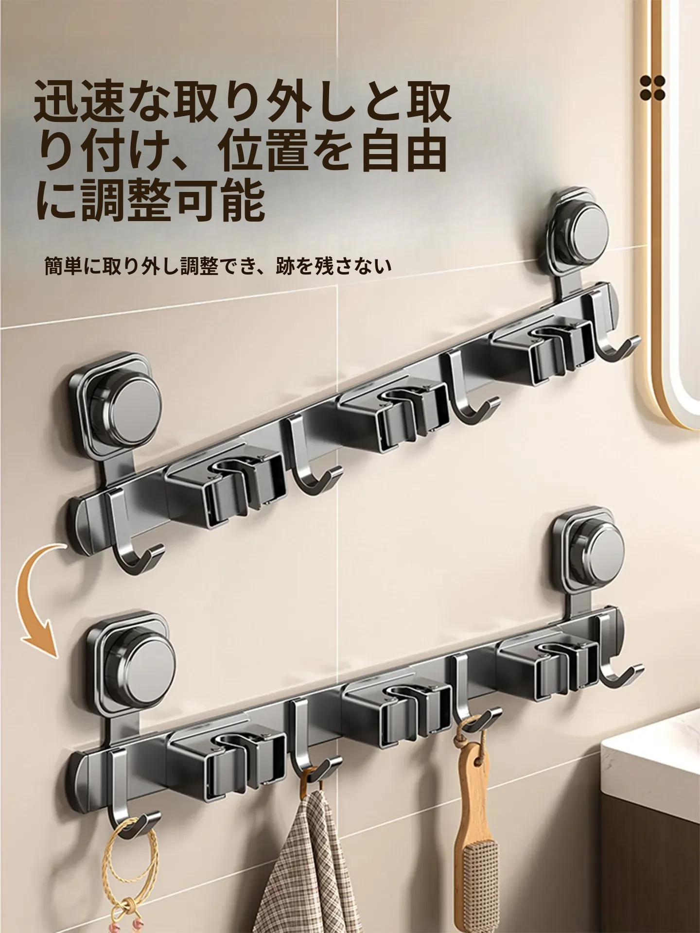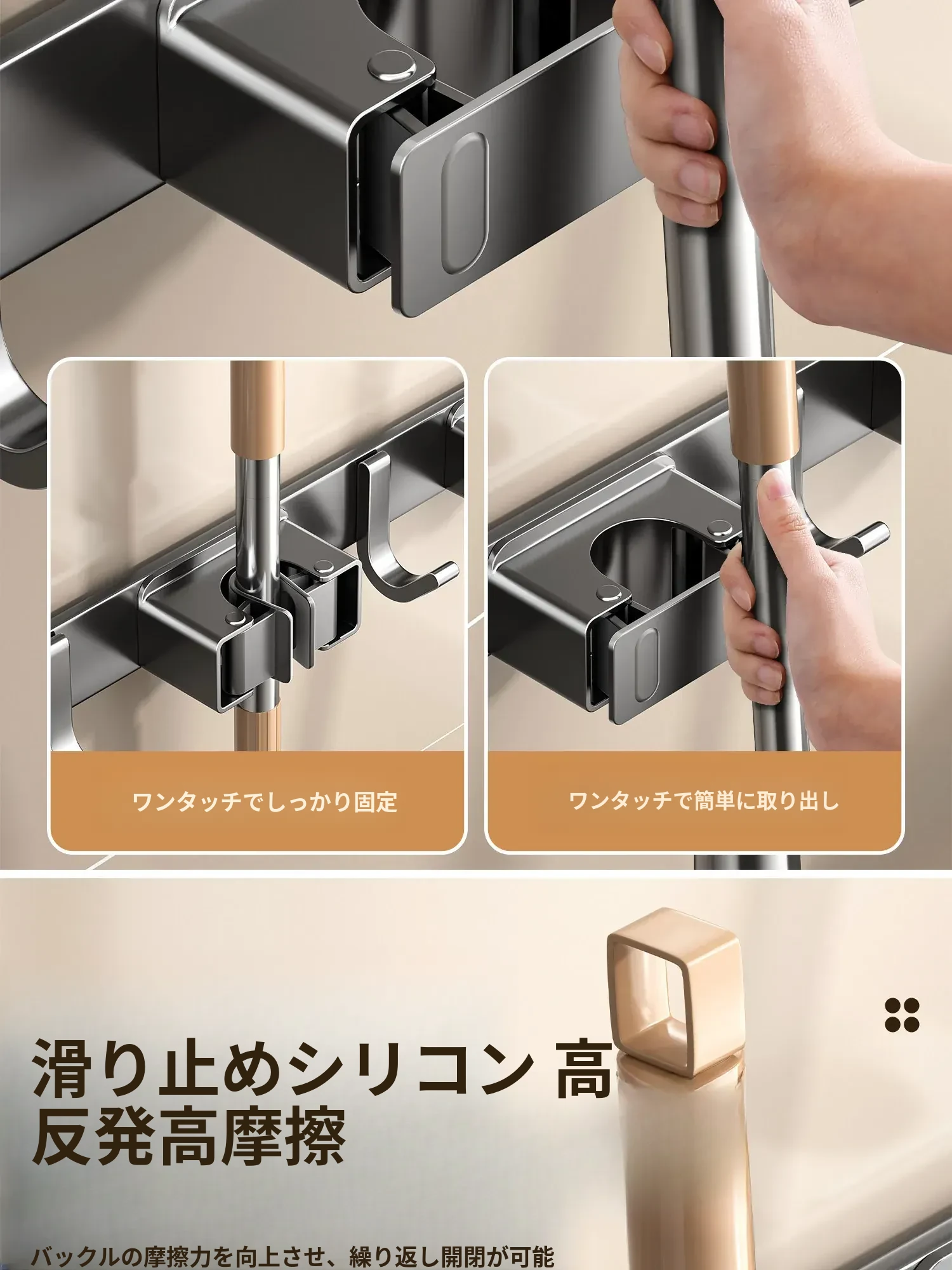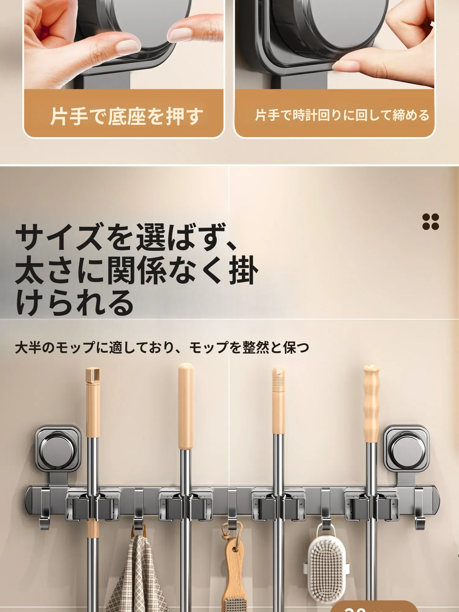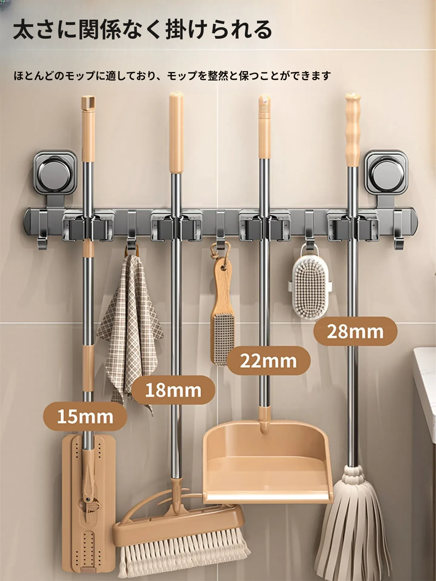 強力壁掛けモップクリップ!バスルームやトイレの掃除をもっと便利に!吸盤でしっかり固定、掃除用具をスッキリ収納。ドアの裏にも取り付け可能な便利なアイテム!