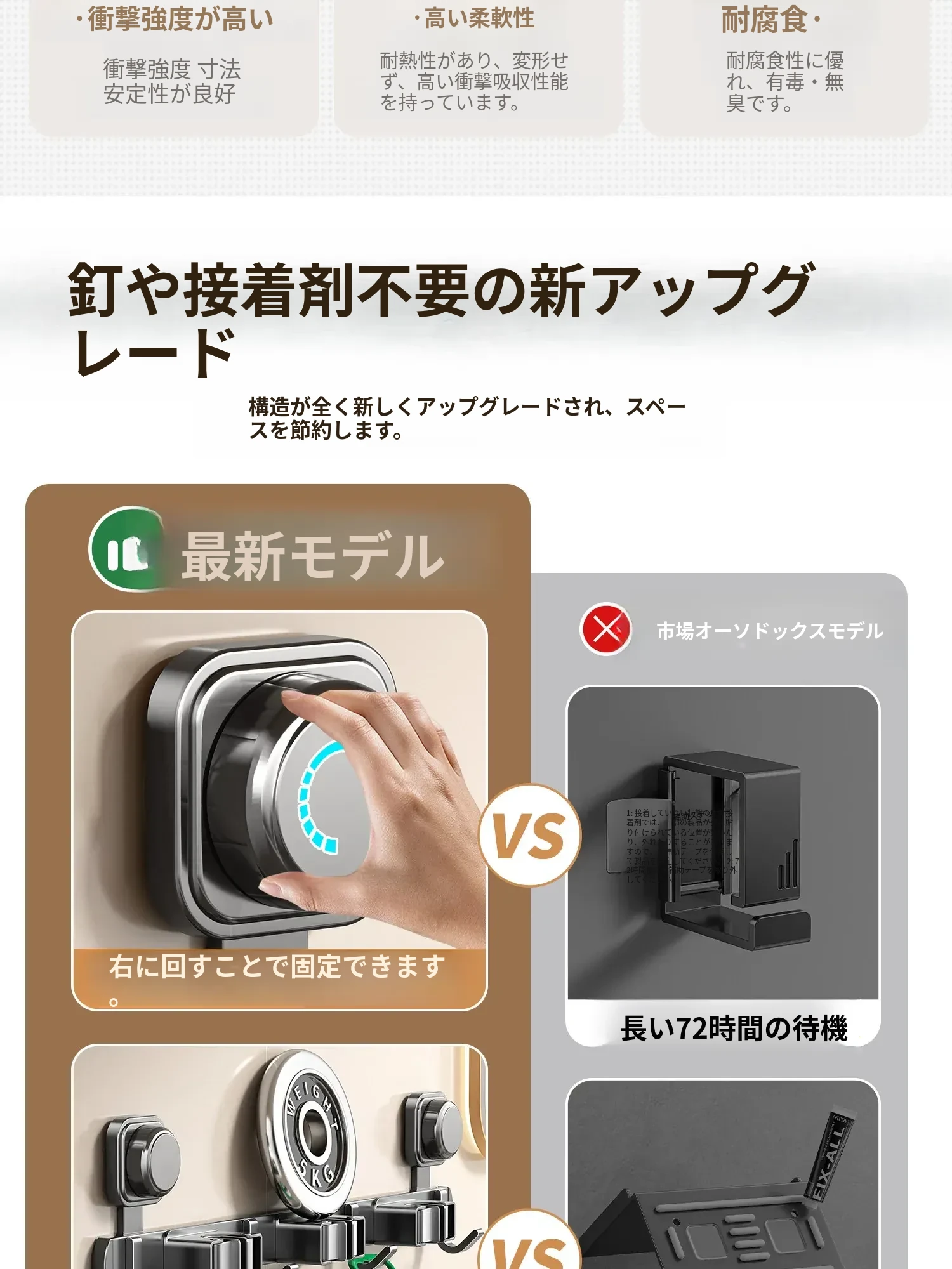 【ミルクホワイト】シングルクリップ(強力吸着・安定した耐荷重)