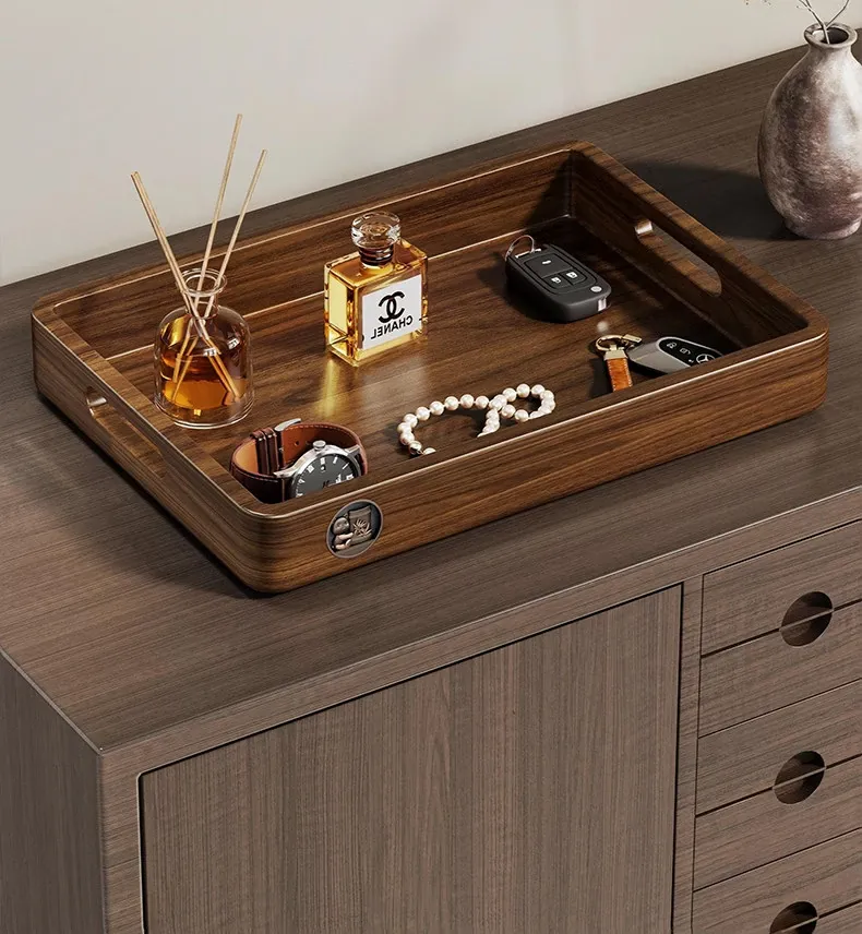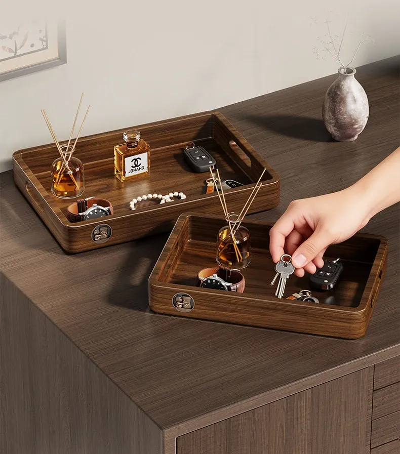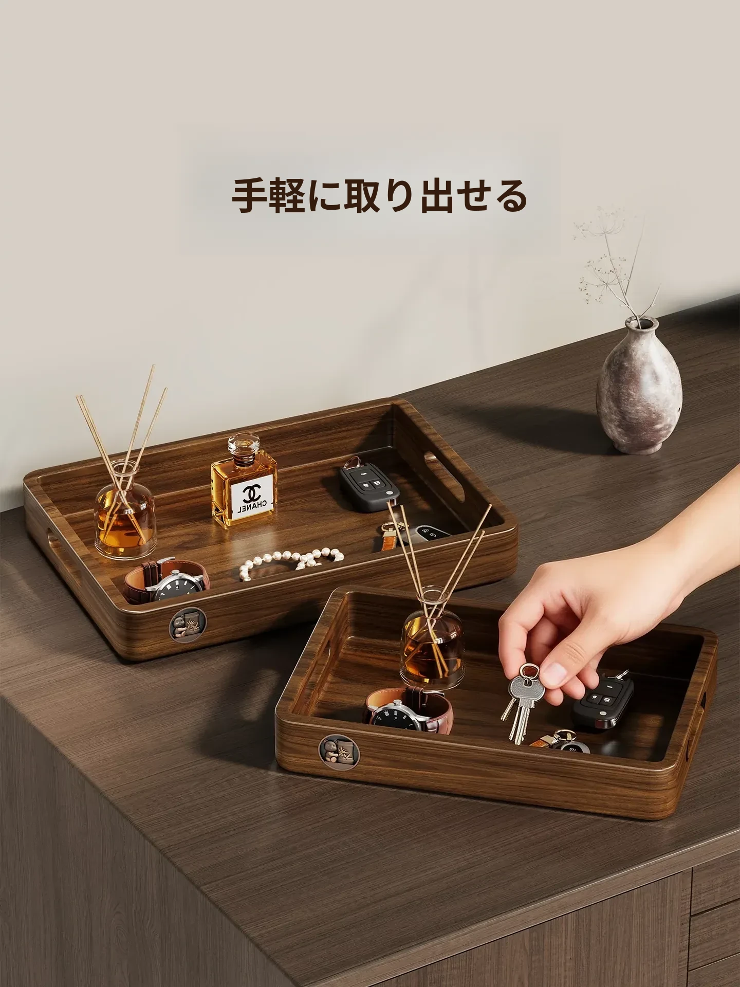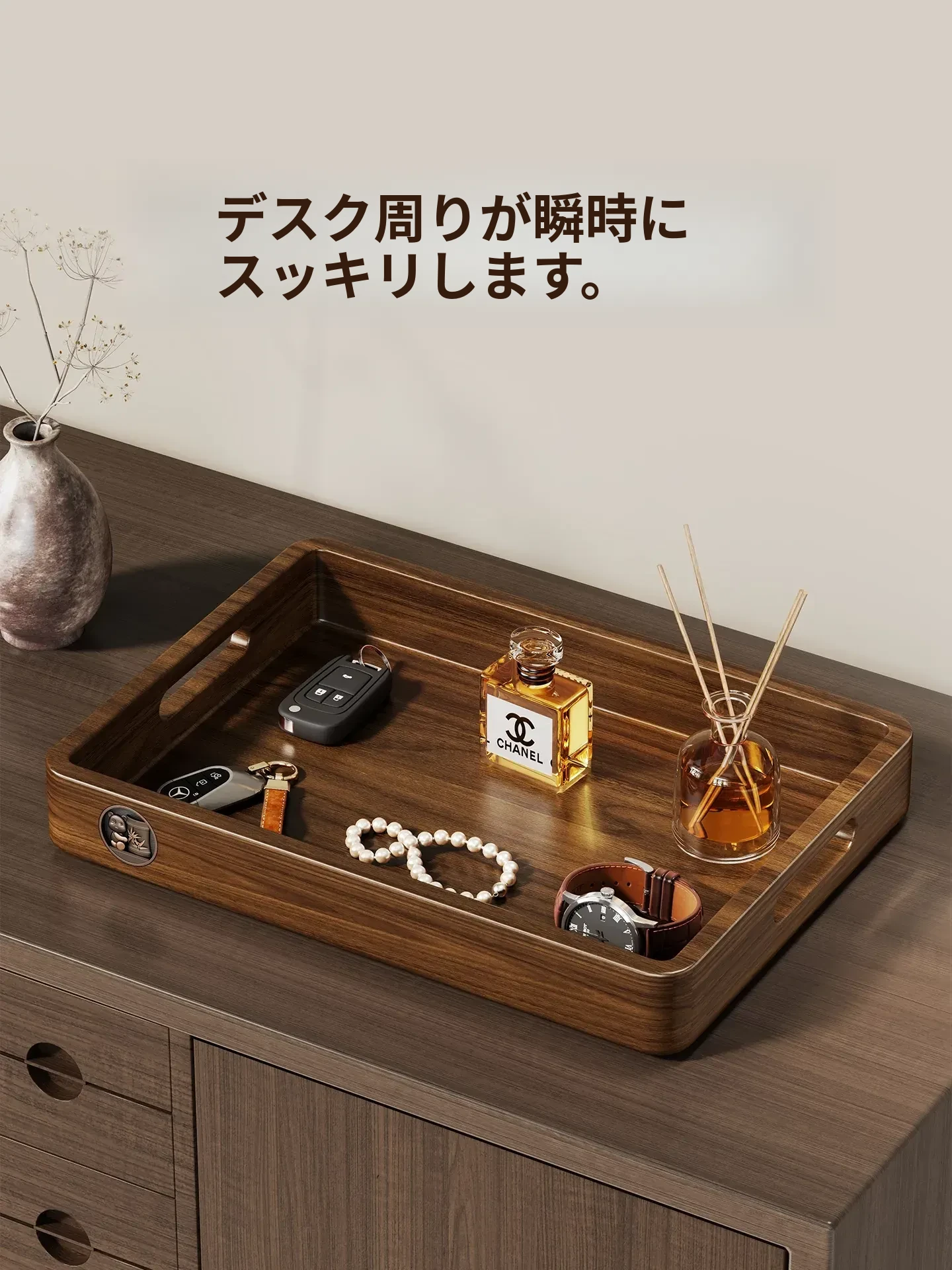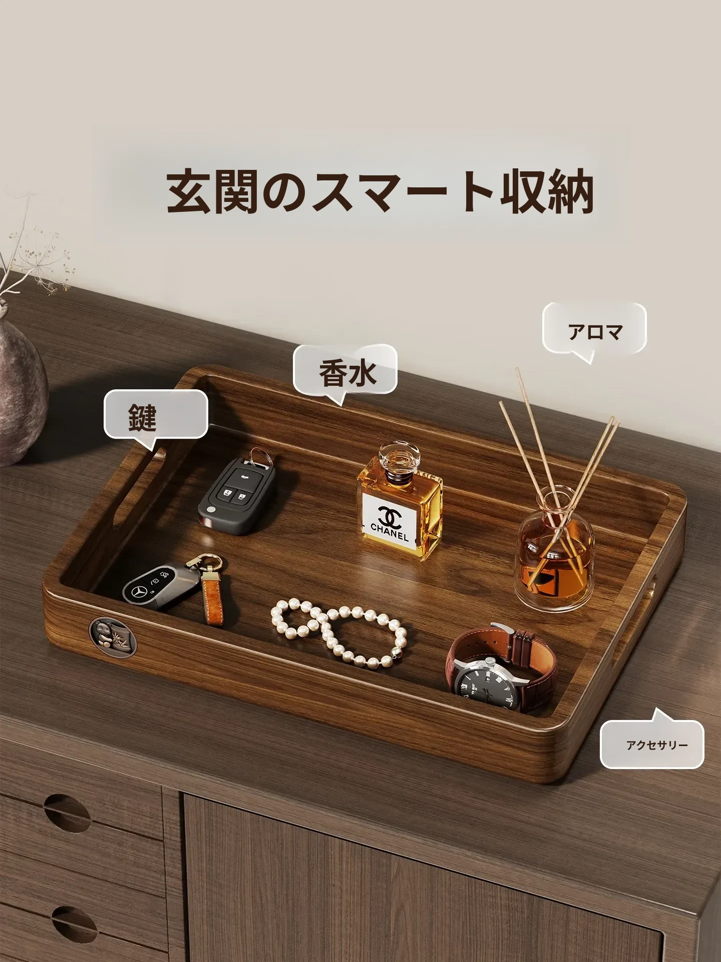 高級感溢れる無垢材の玄関収納トレイ!鍵や眼鏡、時計、ジュエリー、ネックレスなどを美しく整理。おしゃれなデスク周りを演出する必携アイテム!