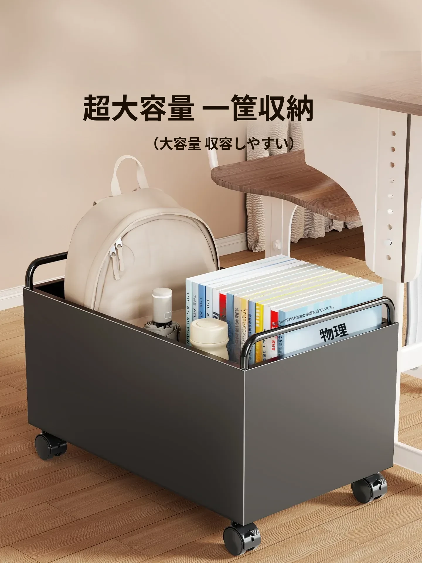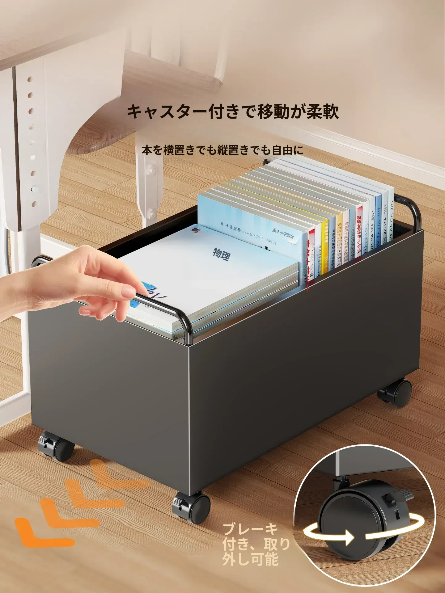 キャスター付き書籍収納カート - デスク下にぴったりの本棚!移動可能な収納ボックスで、スペースを有効活用。整理整頓が簡単にできる便利アイテム、あなたの読書ライフをサポートします!