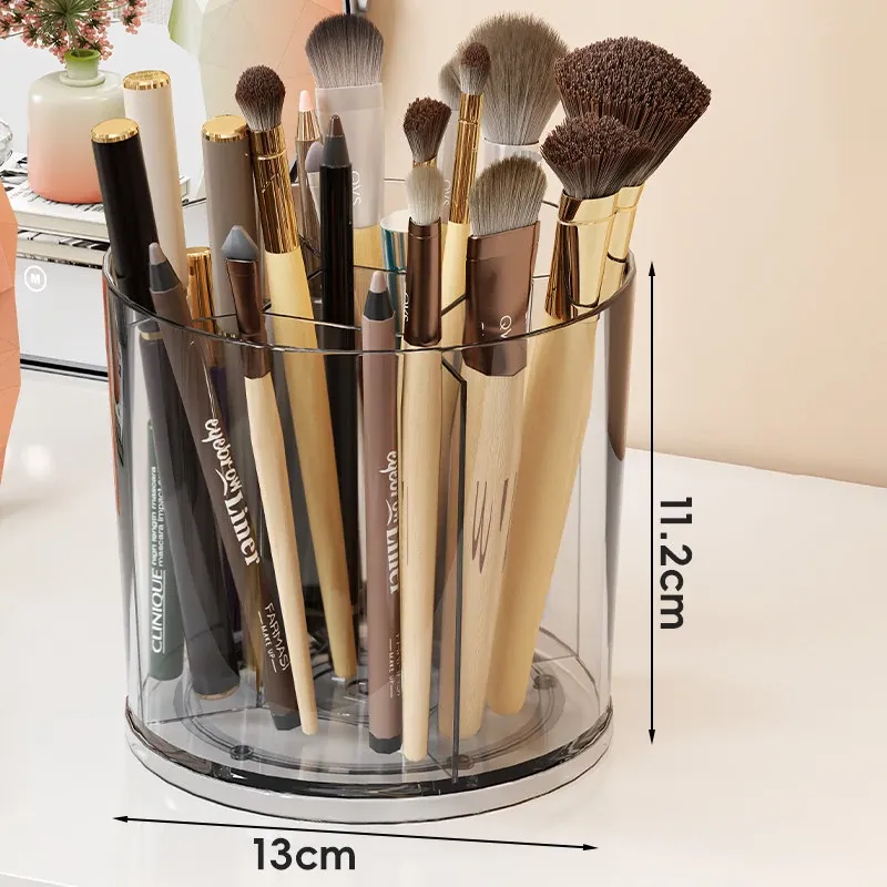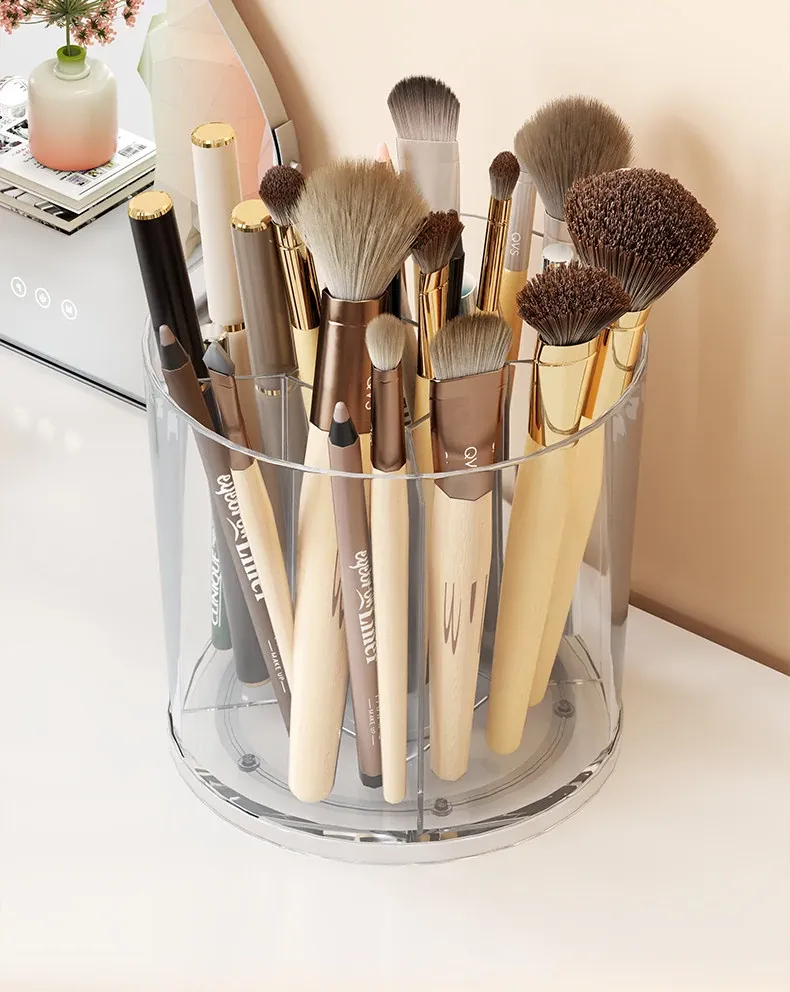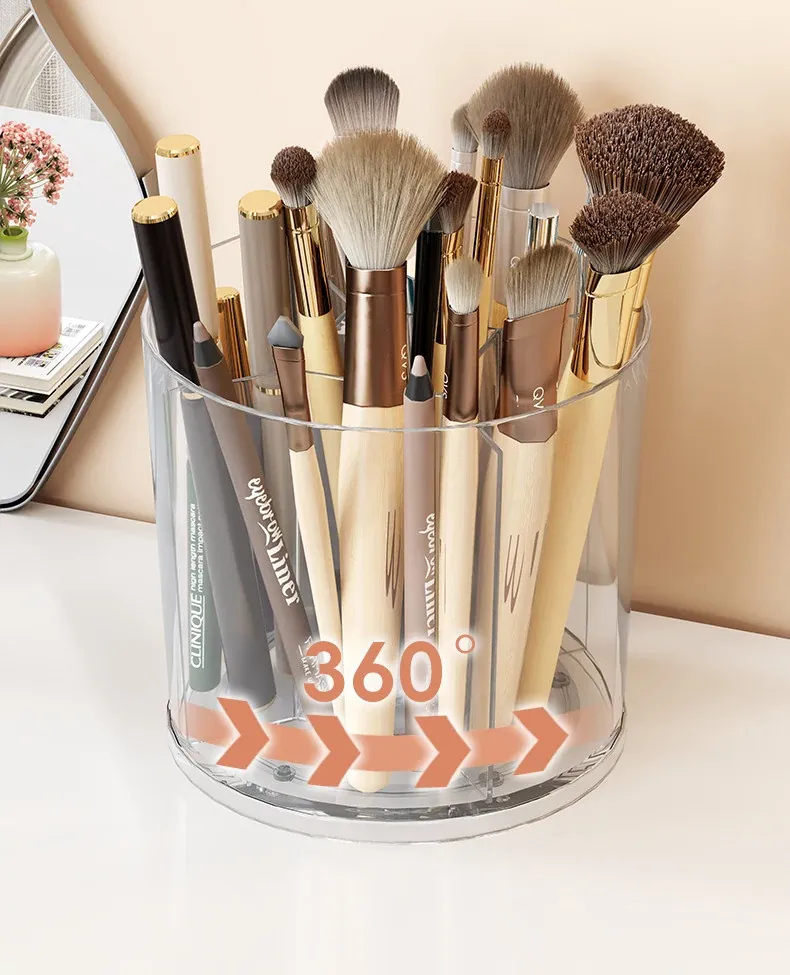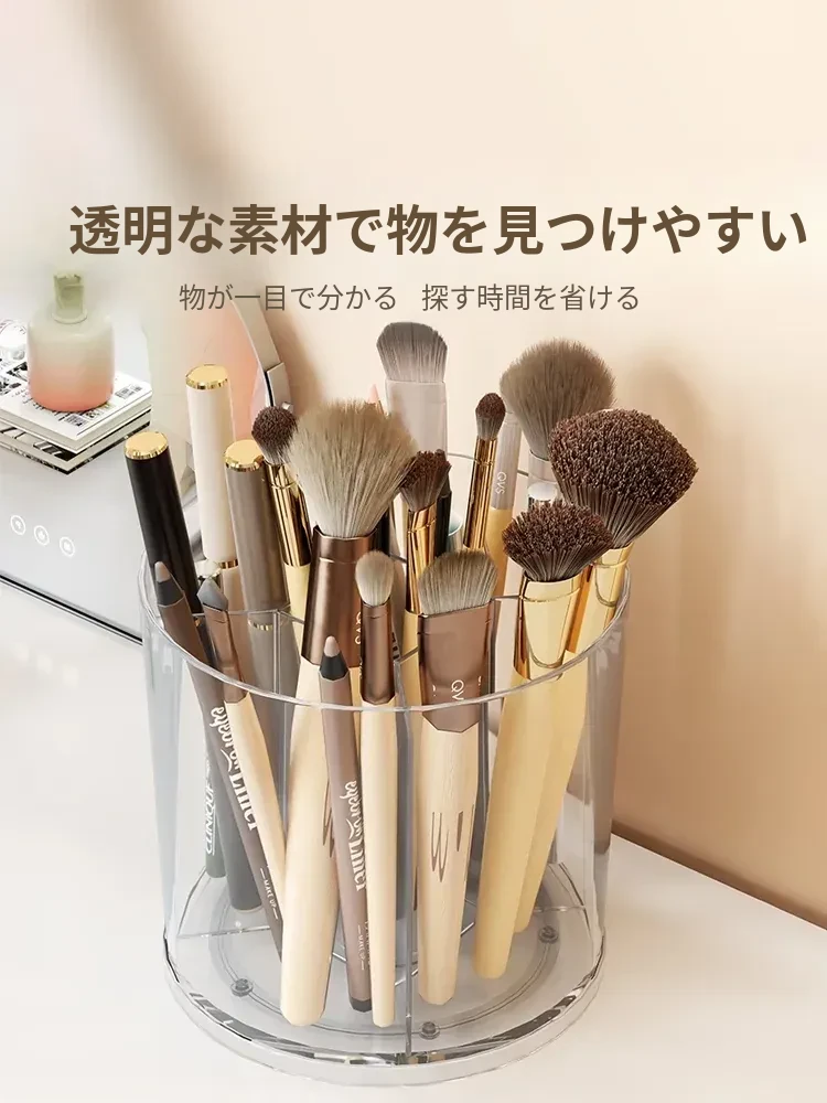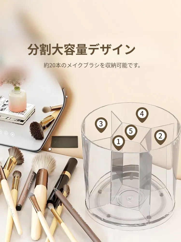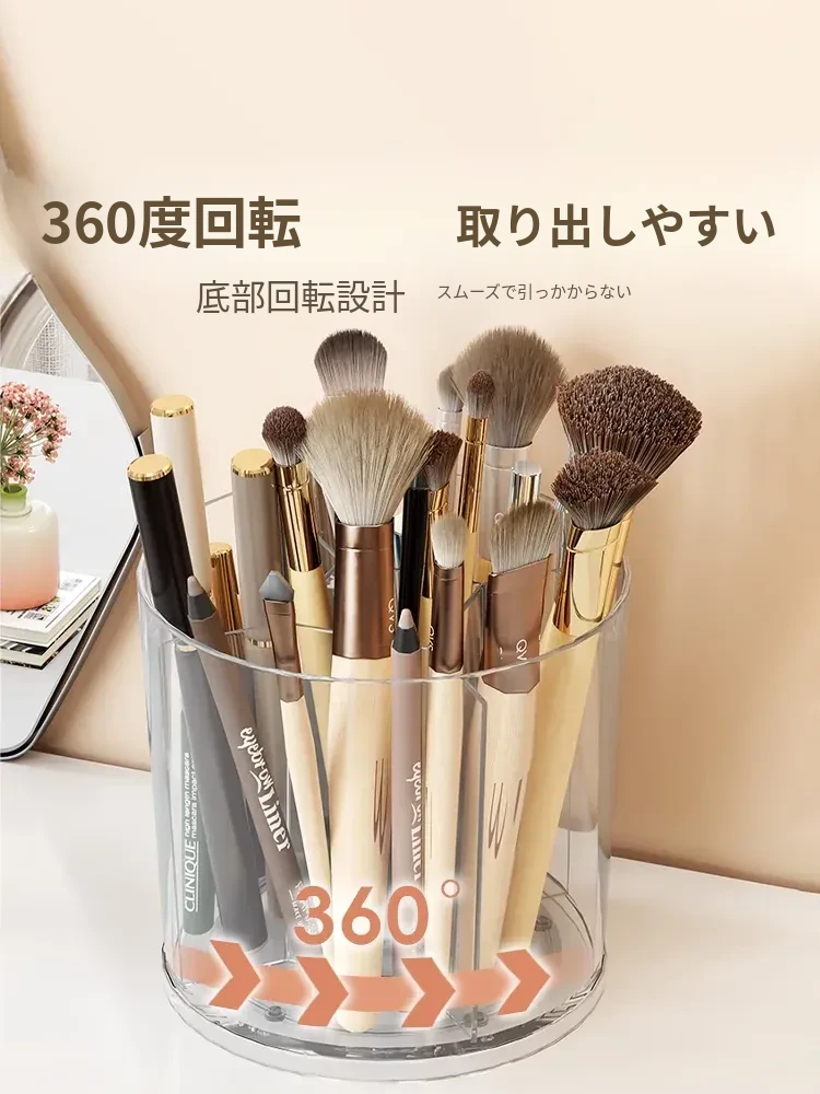 回転式メイクブラシ収納筒!デスク上をすっきり整理できる分格デザインで、アイブロウペンシルやリップスティックもスムーズに収納。おしゃれな化粧台を演出する必需品!