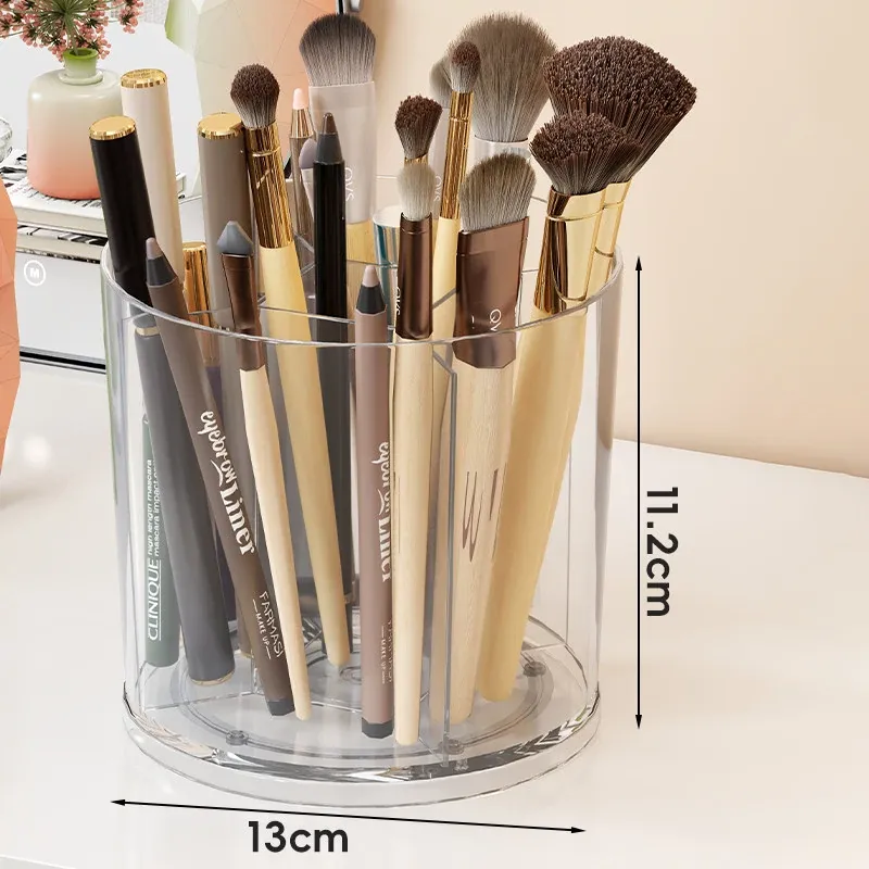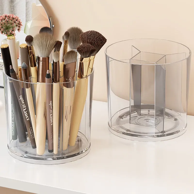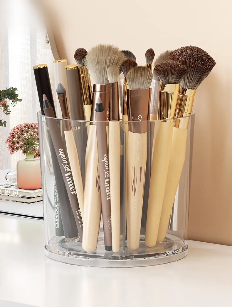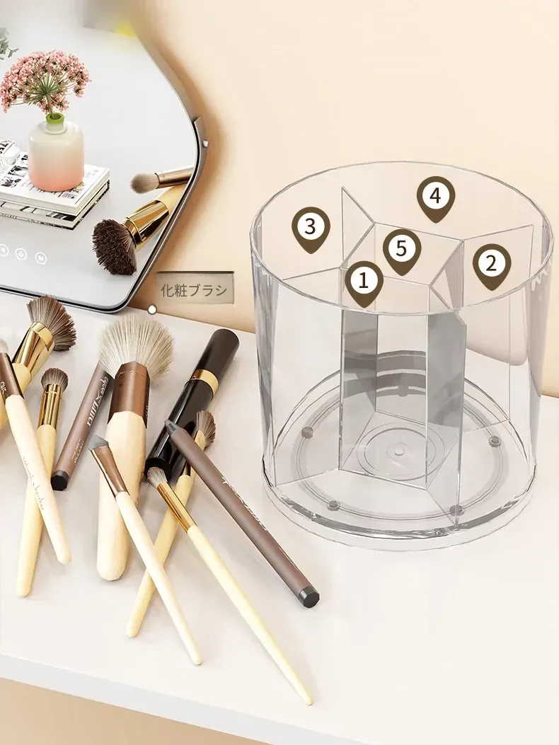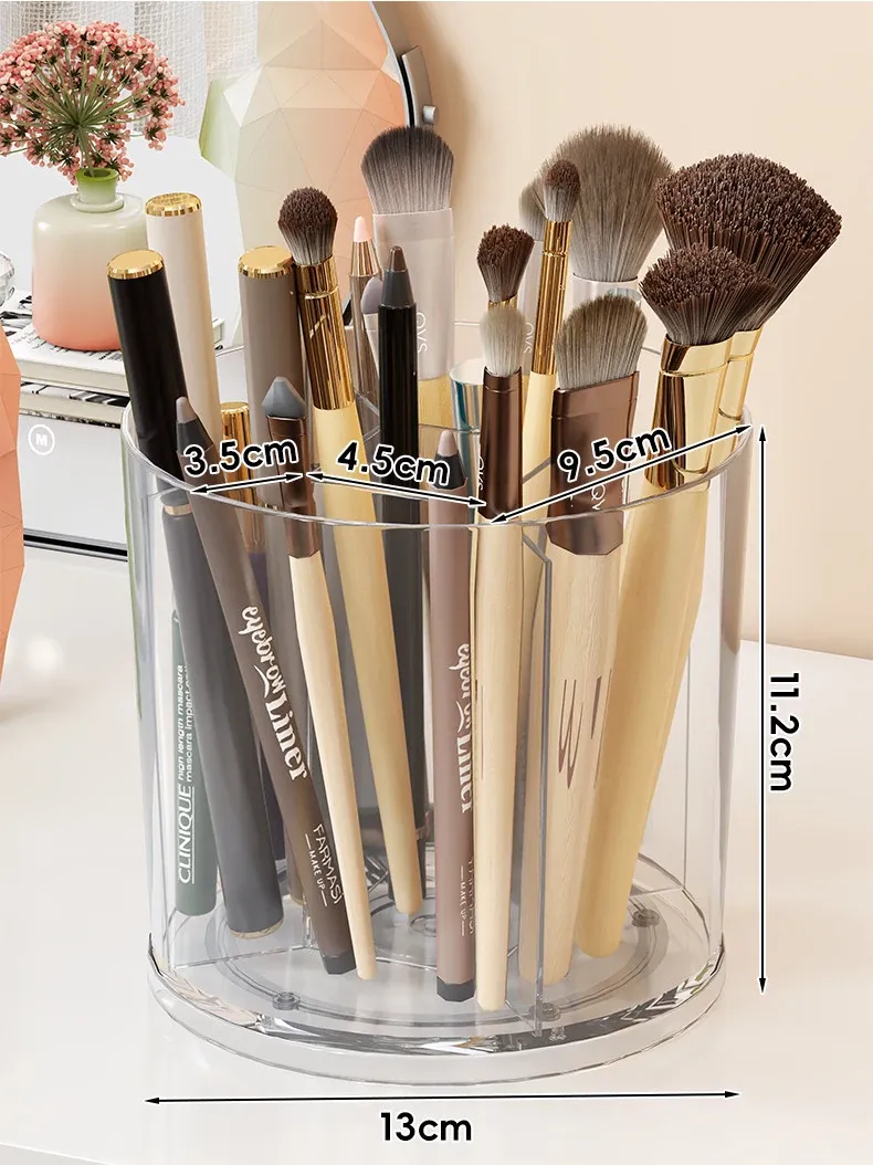 回転式メイクブラシ収納筒!デスク上をすっきり整理できる分格デザインで、アイブロウペンシルやリップスティックもスムーズに収納。おしゃれな化粧台を演出する必需品!