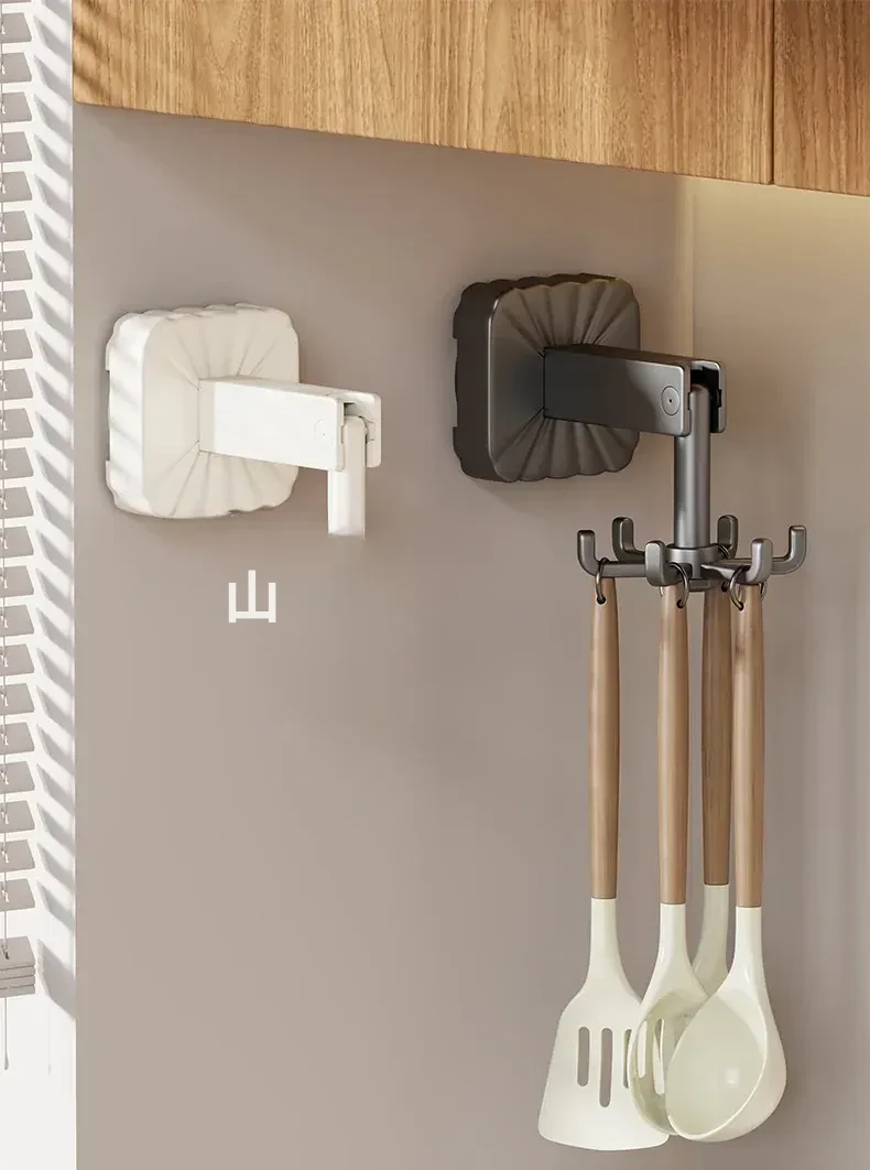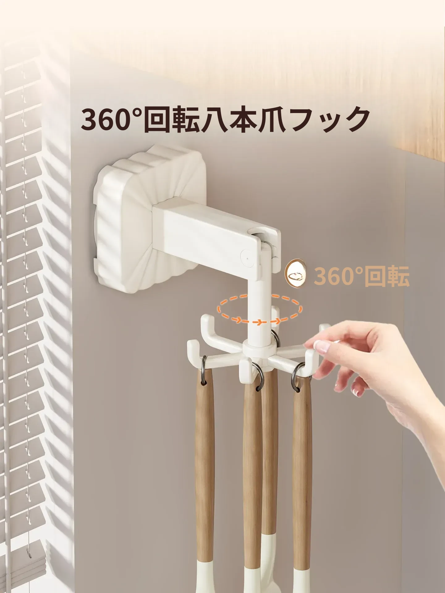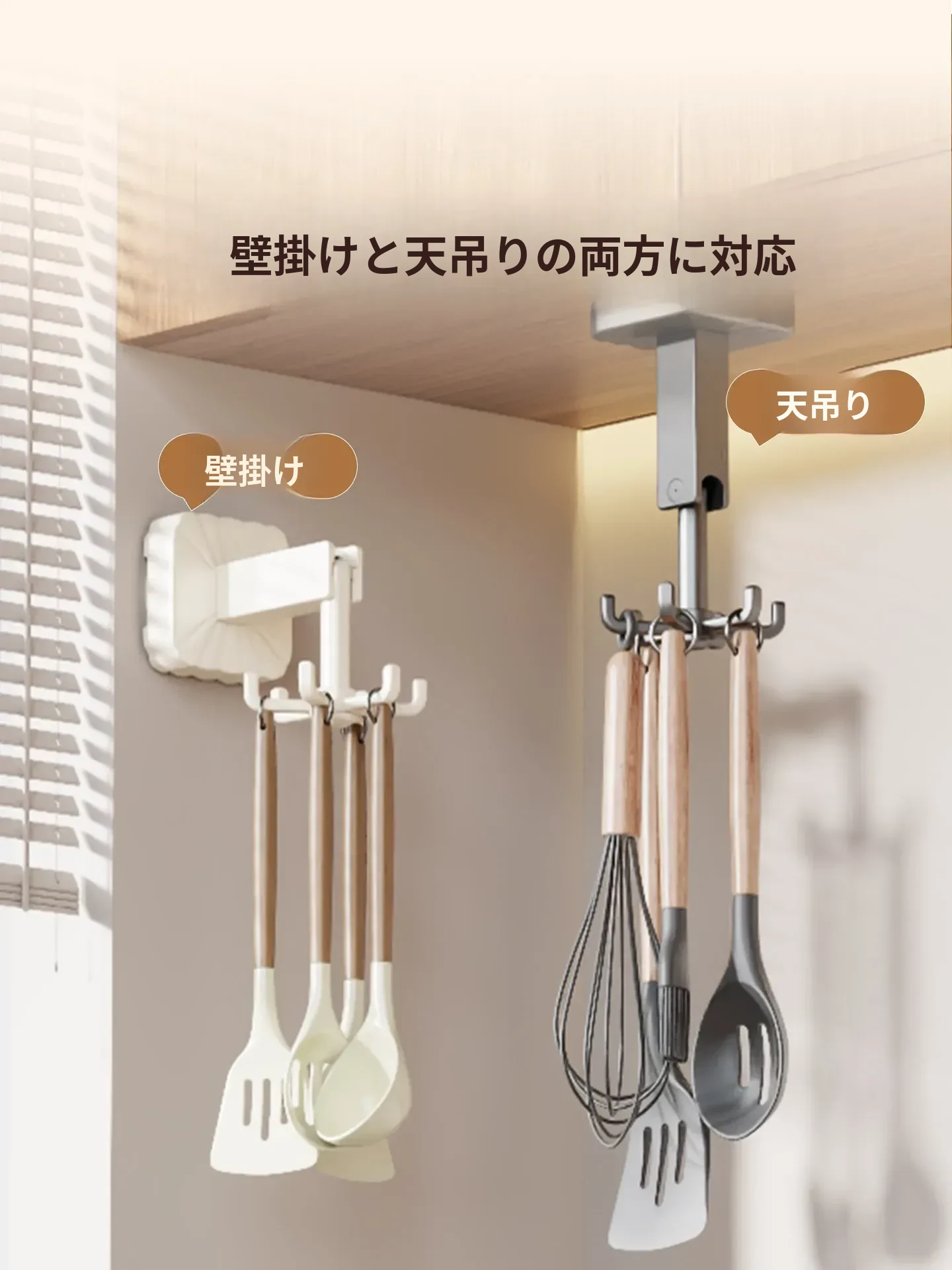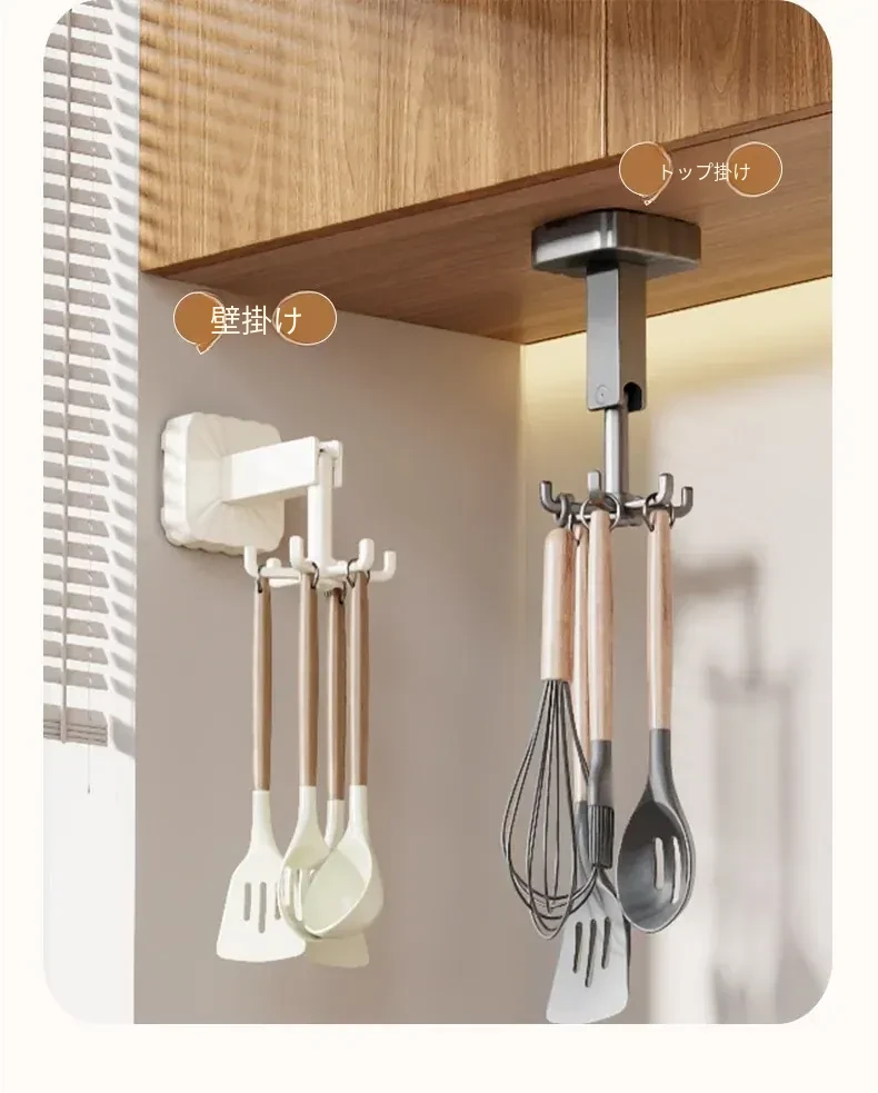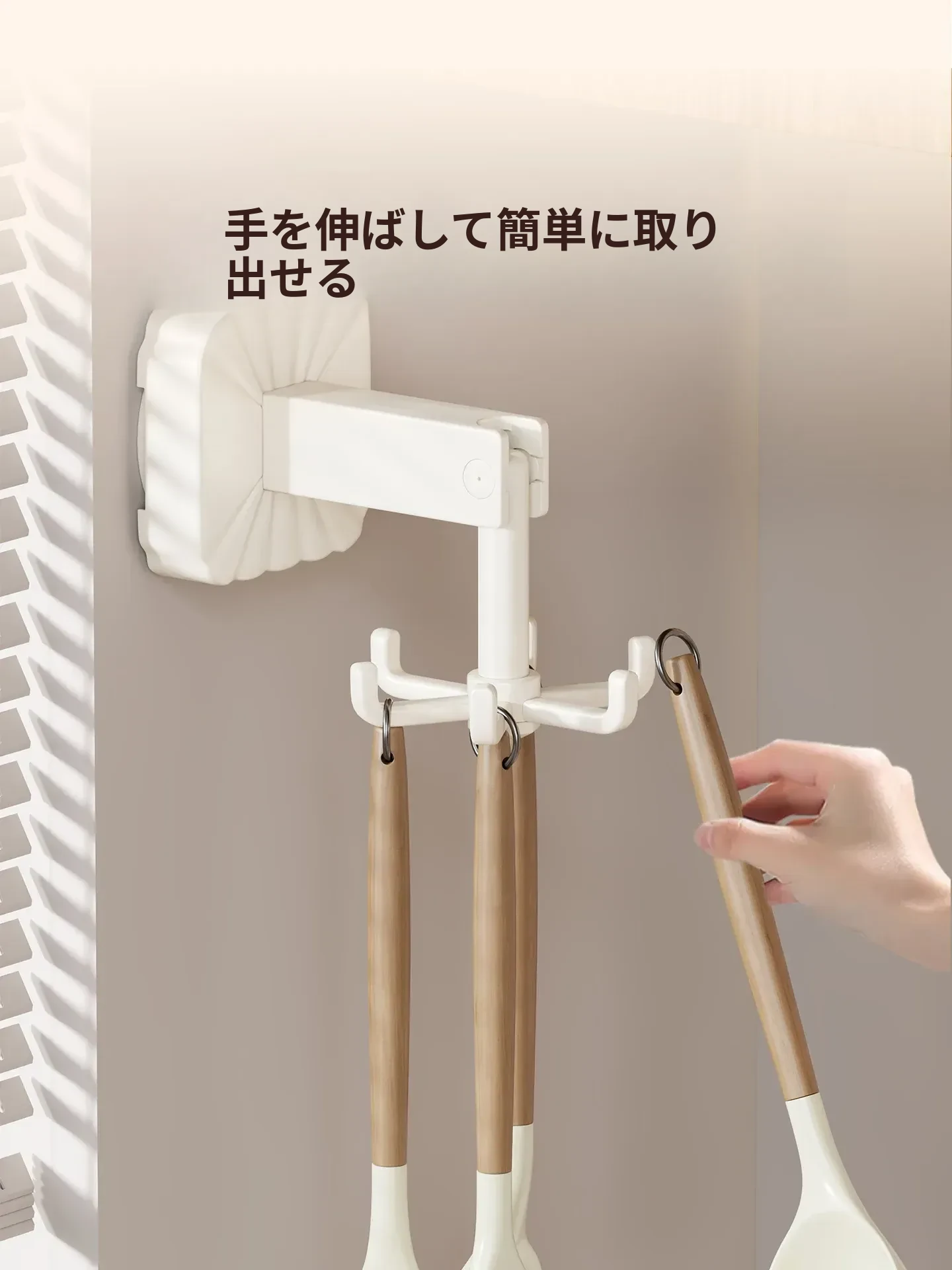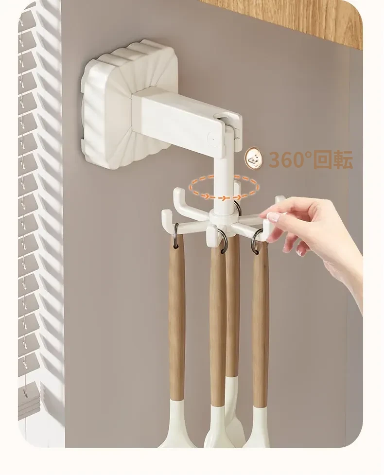 吸盤回転フック キッチン収納ラック 壁掛け式 取り付け不要 おしゃれな調理器具収納 スプーンやヘラもスッキリ整理!煩わしさを解消し、キッチンをスッキリと整えましょう!
