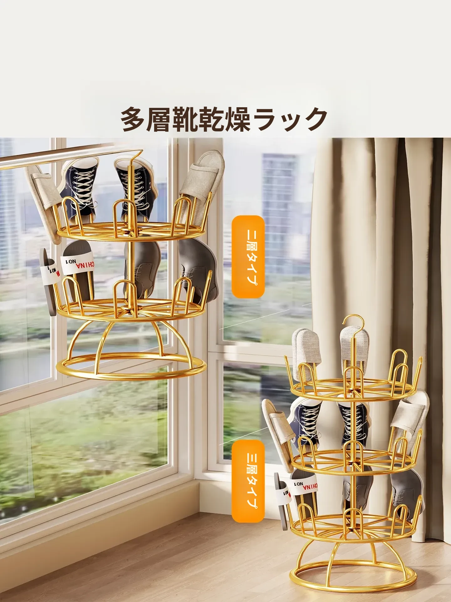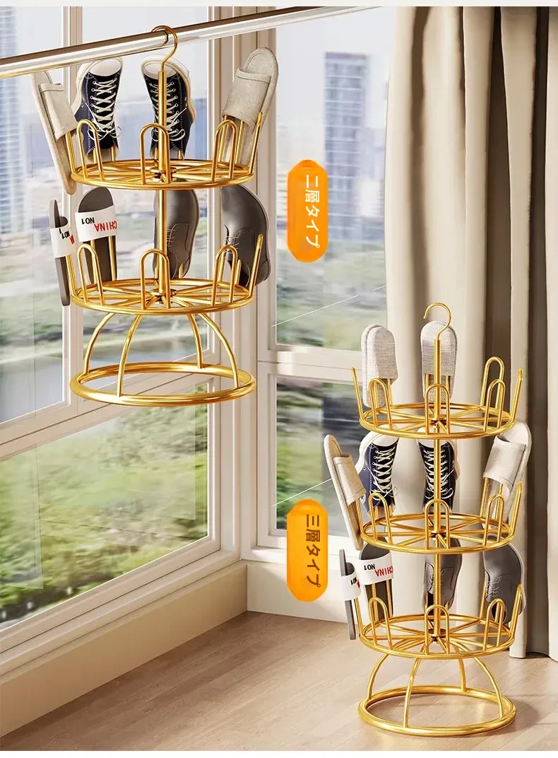 靴を干すための必需品!家庭用バルコニー向け多層式スタンド、簡単設置の水切り機能付きマルチハンガー。おしゃれで便利な靴ラックで、靴をすっきり収納しよう!