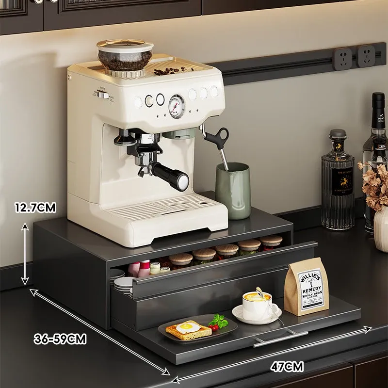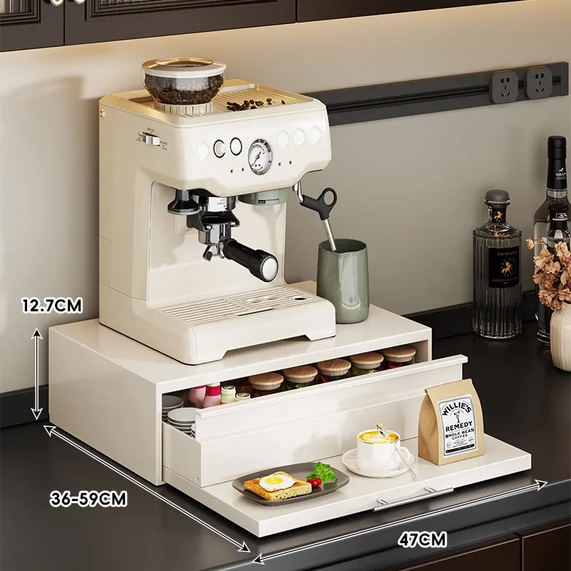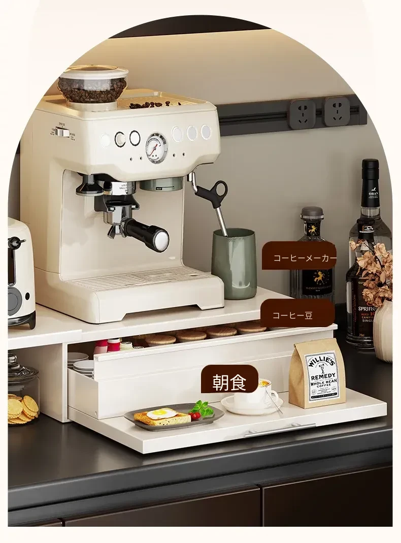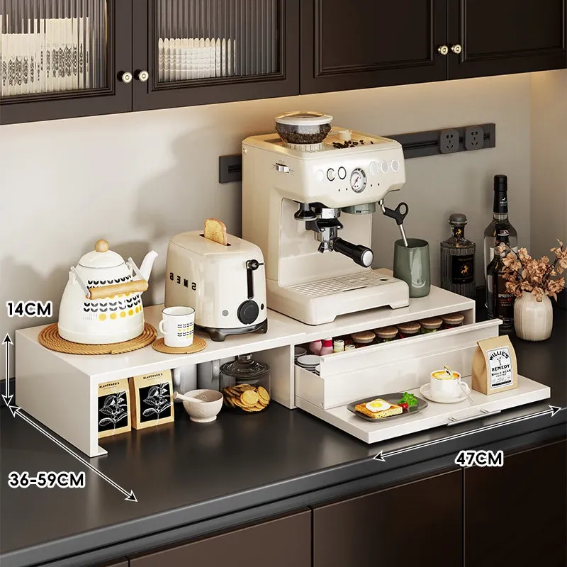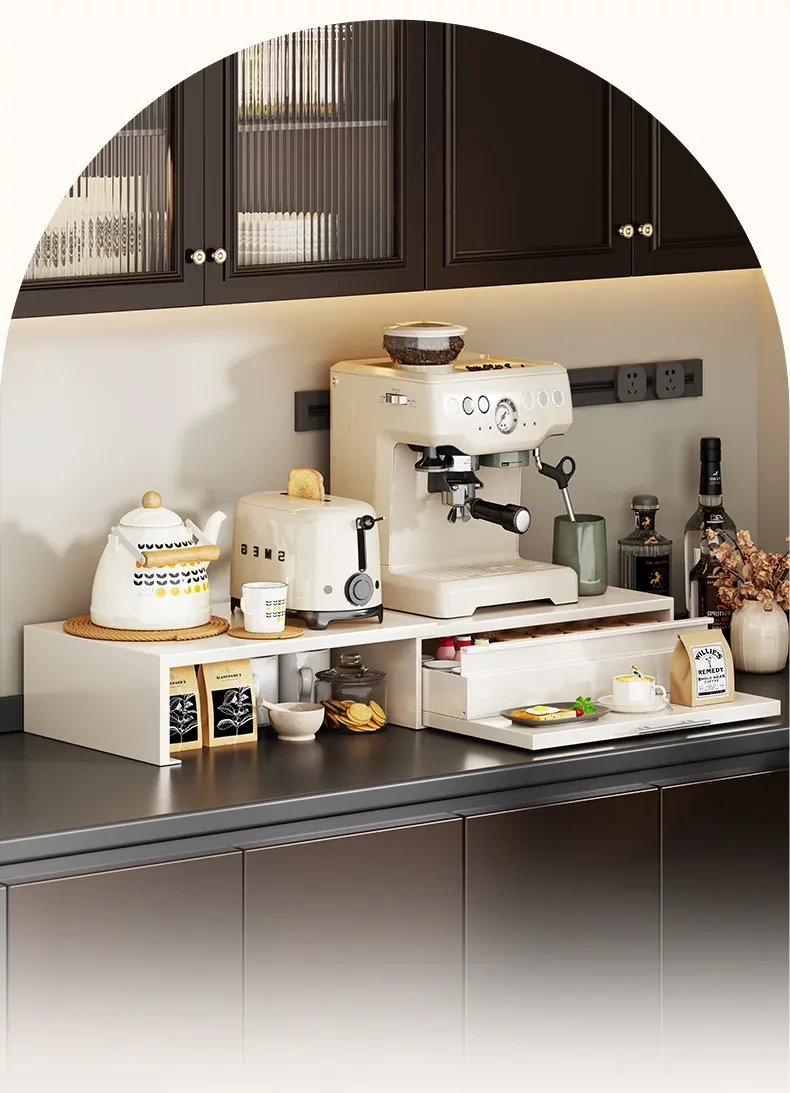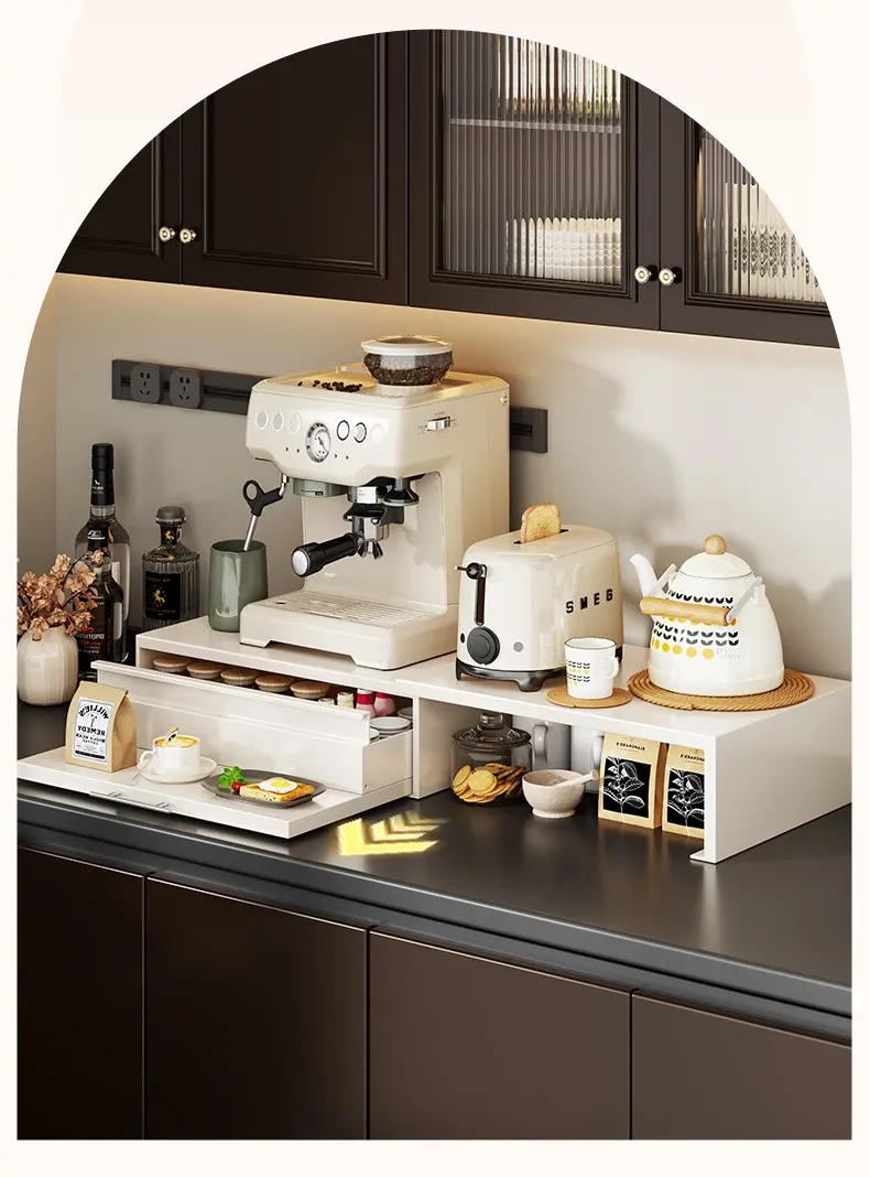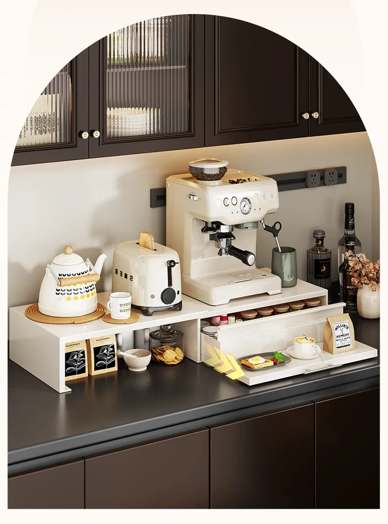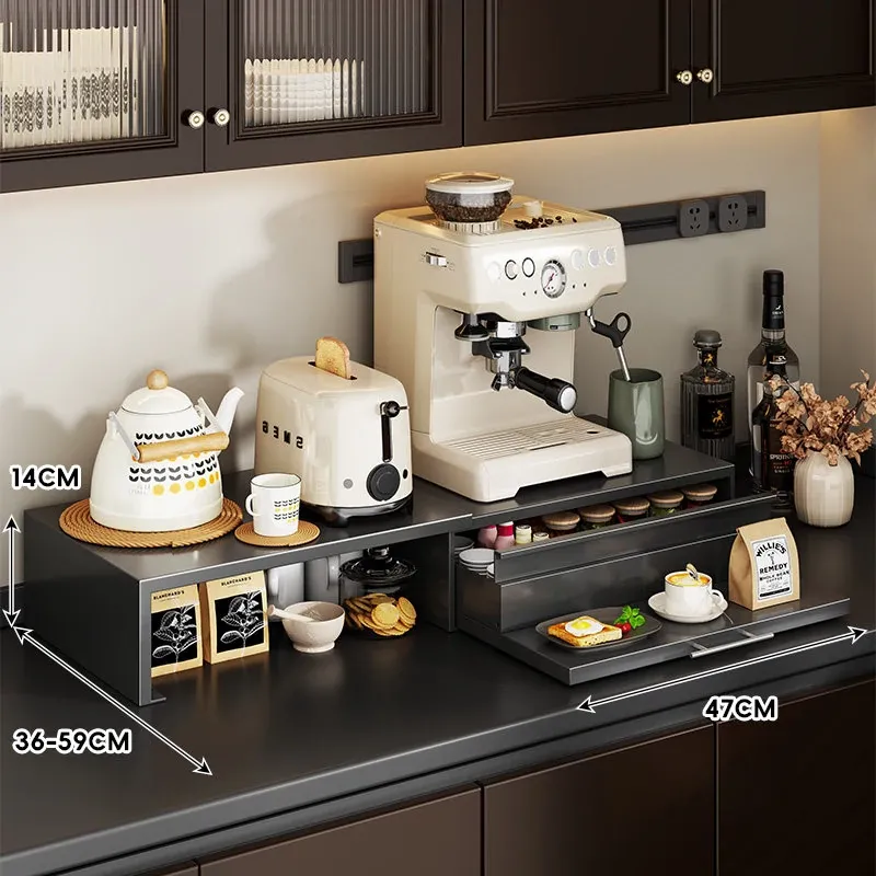 コーヒーメーカー置き台&スナック収納ラック - 厨房の整理整頓に最適!電気炊飯器も置ける頑丈な引き出し付き台面スタンドで、スペースを有効活用し、美しいキッチンを実現!