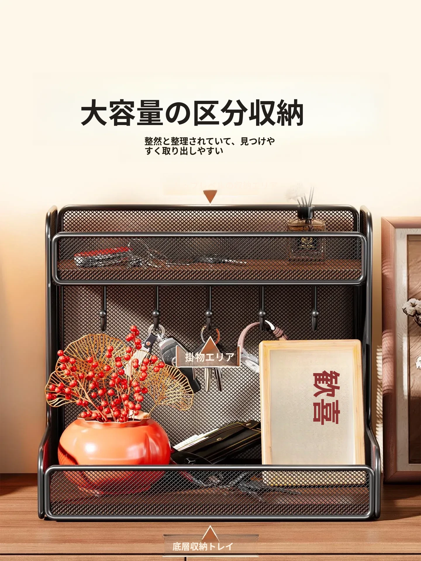 玄関収納ラック キーケース付き 家庭用シューズキャビネット上に置けるマスク整理ラック 玄関の必需品!おしゃれで機能的な収納アイテムで、スッキリとした玄関を実現!