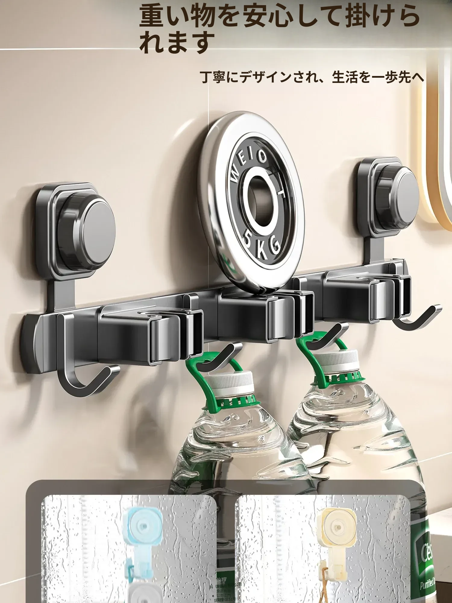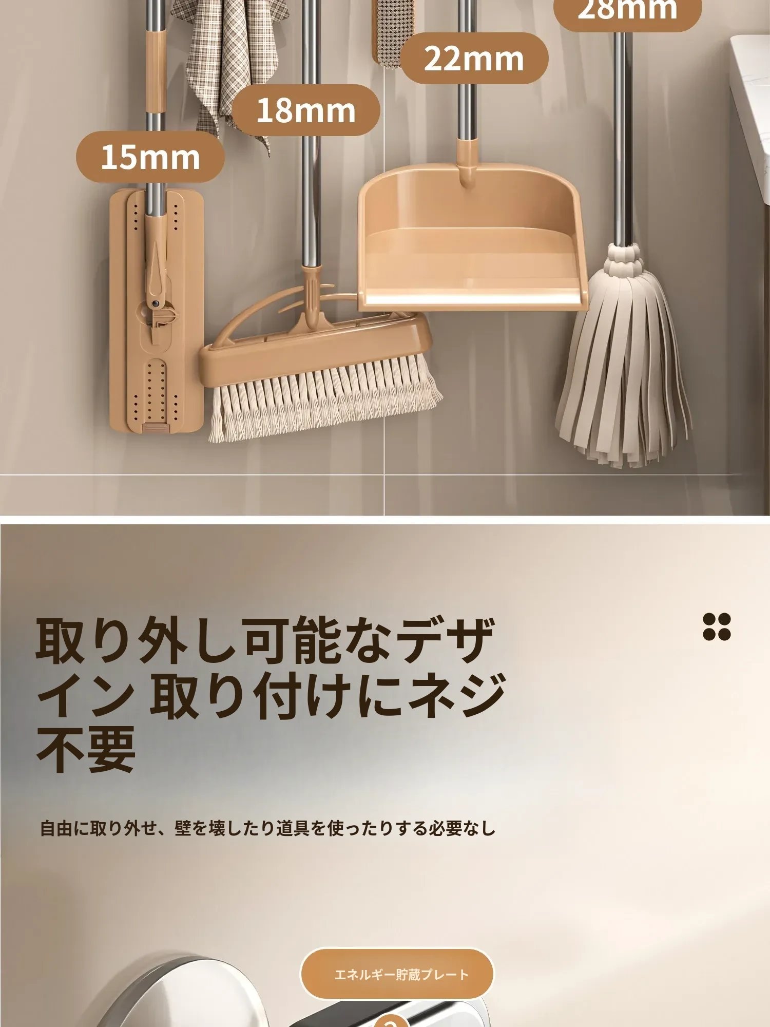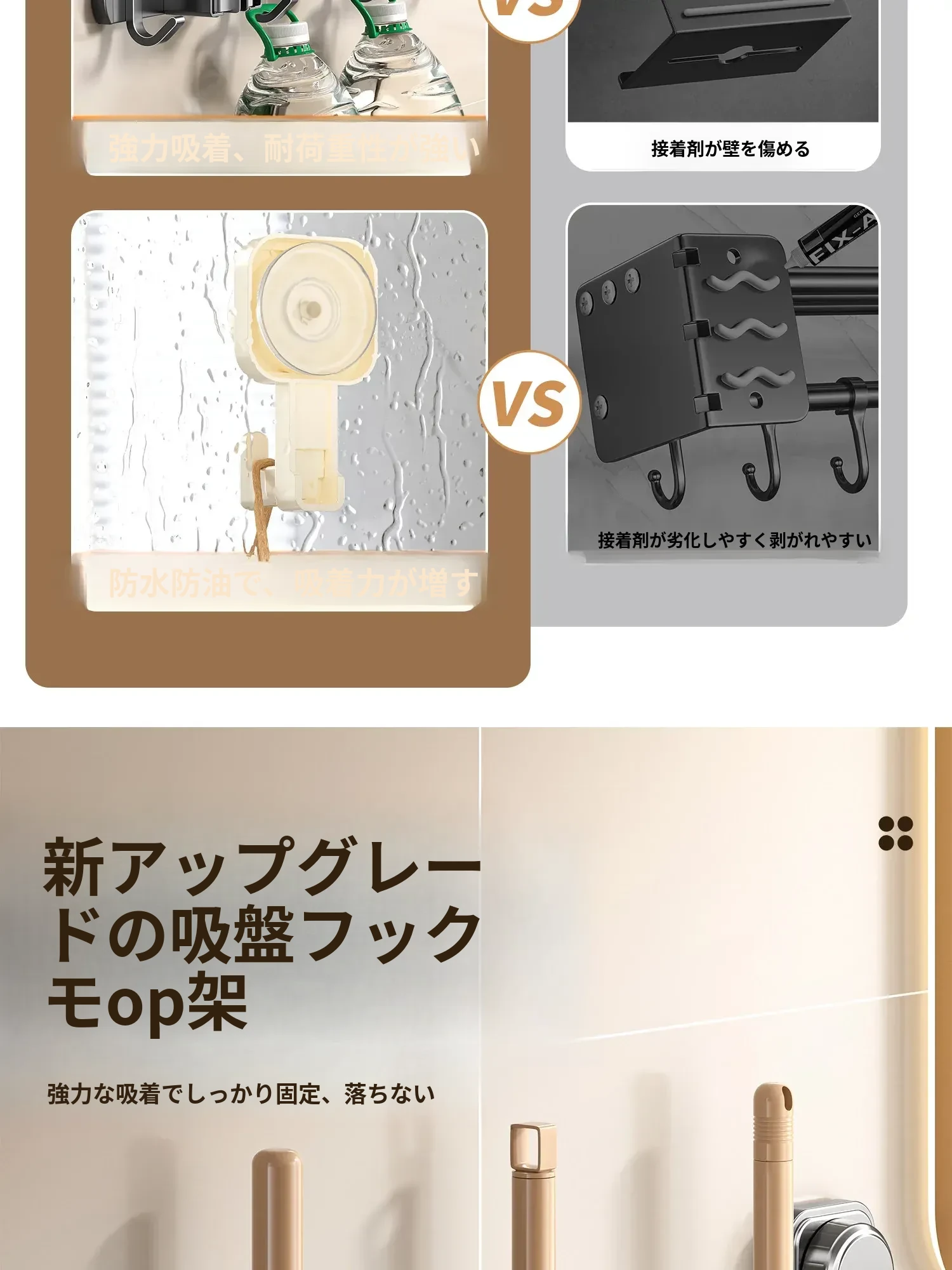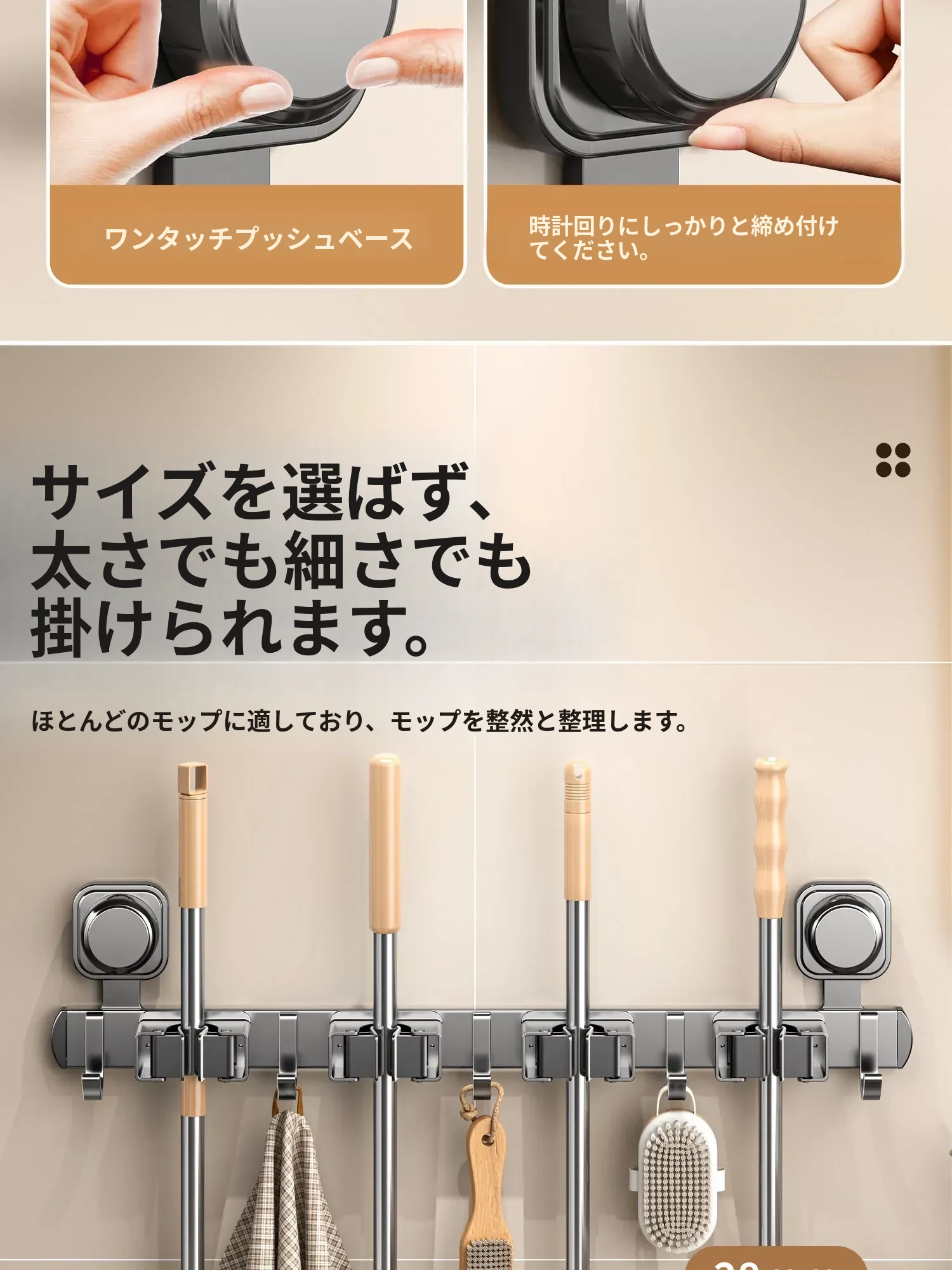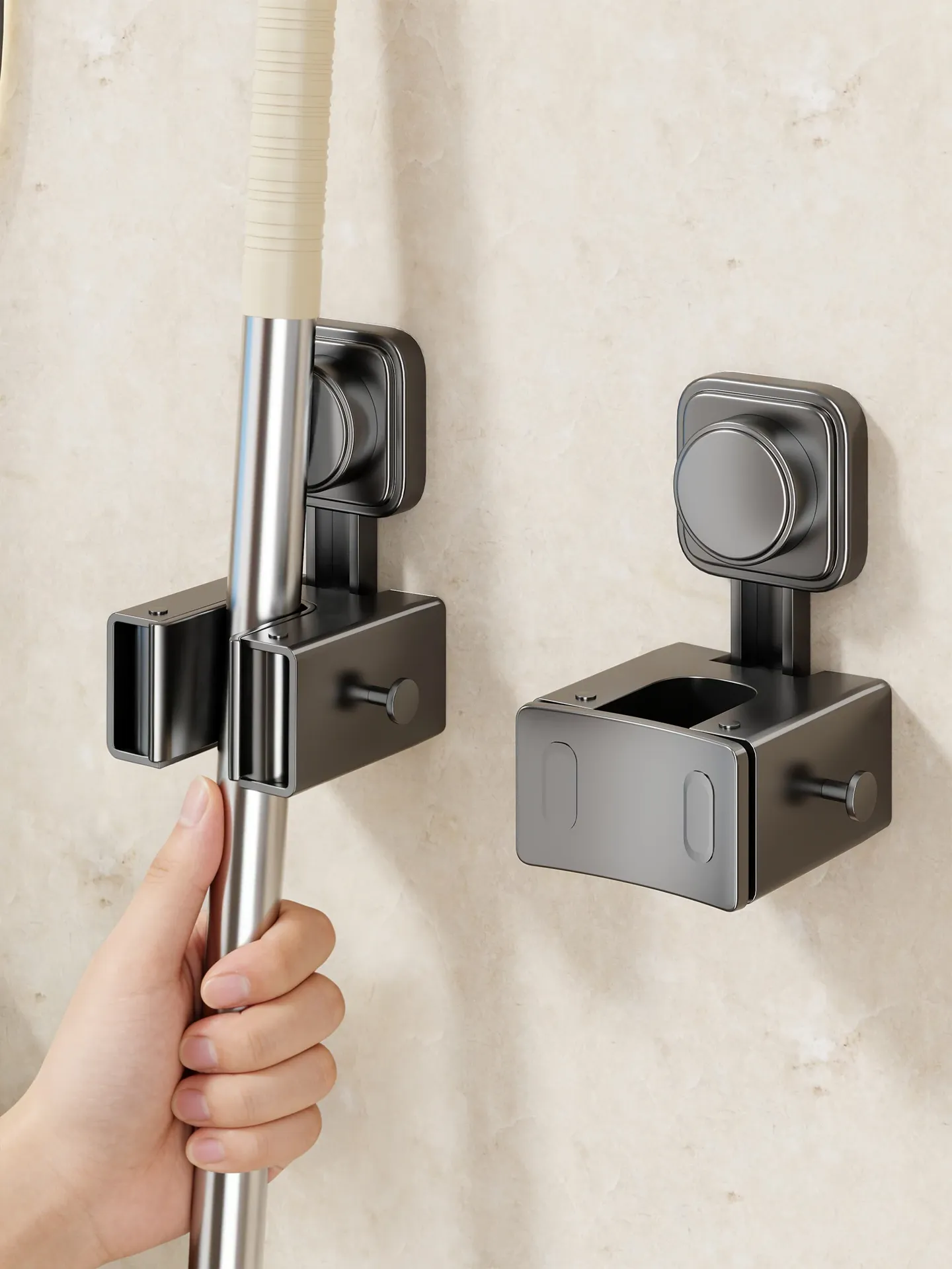 吸盤式モップホルダー 簡単取り付け!壁掛け掃除道具整理フック トイレやバスルームの必需品!スペースを有効活用する収納アイテム!
