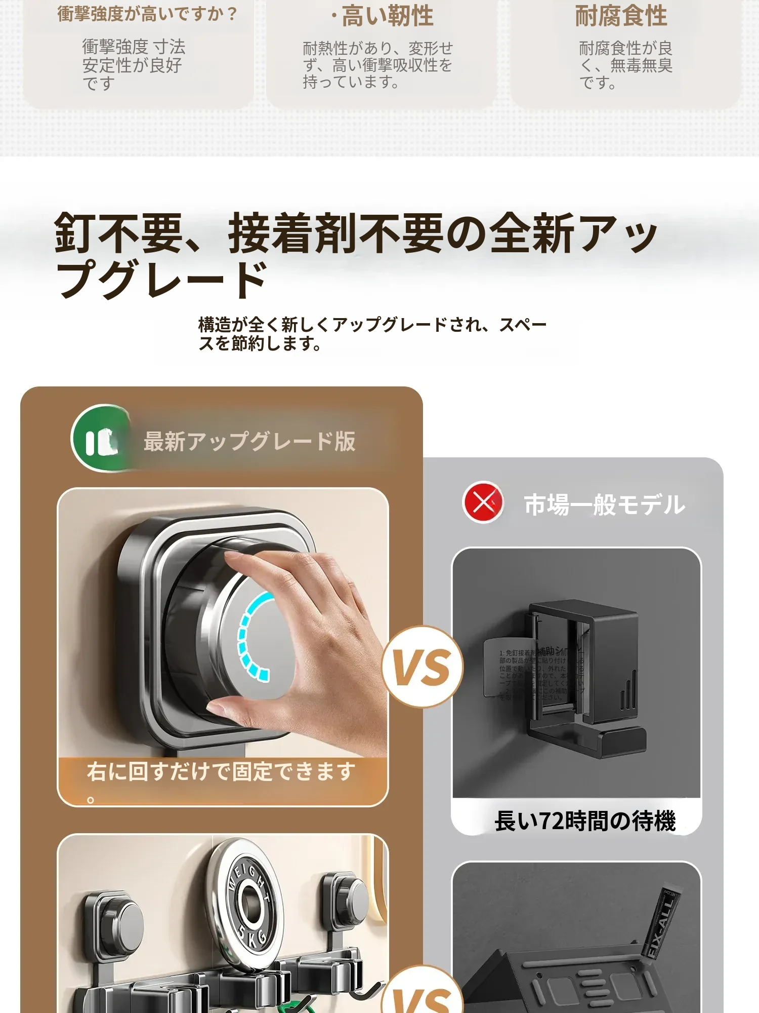 【ミルクホワイト】シングルクリップ(強力吸着・安定した耐荷重)