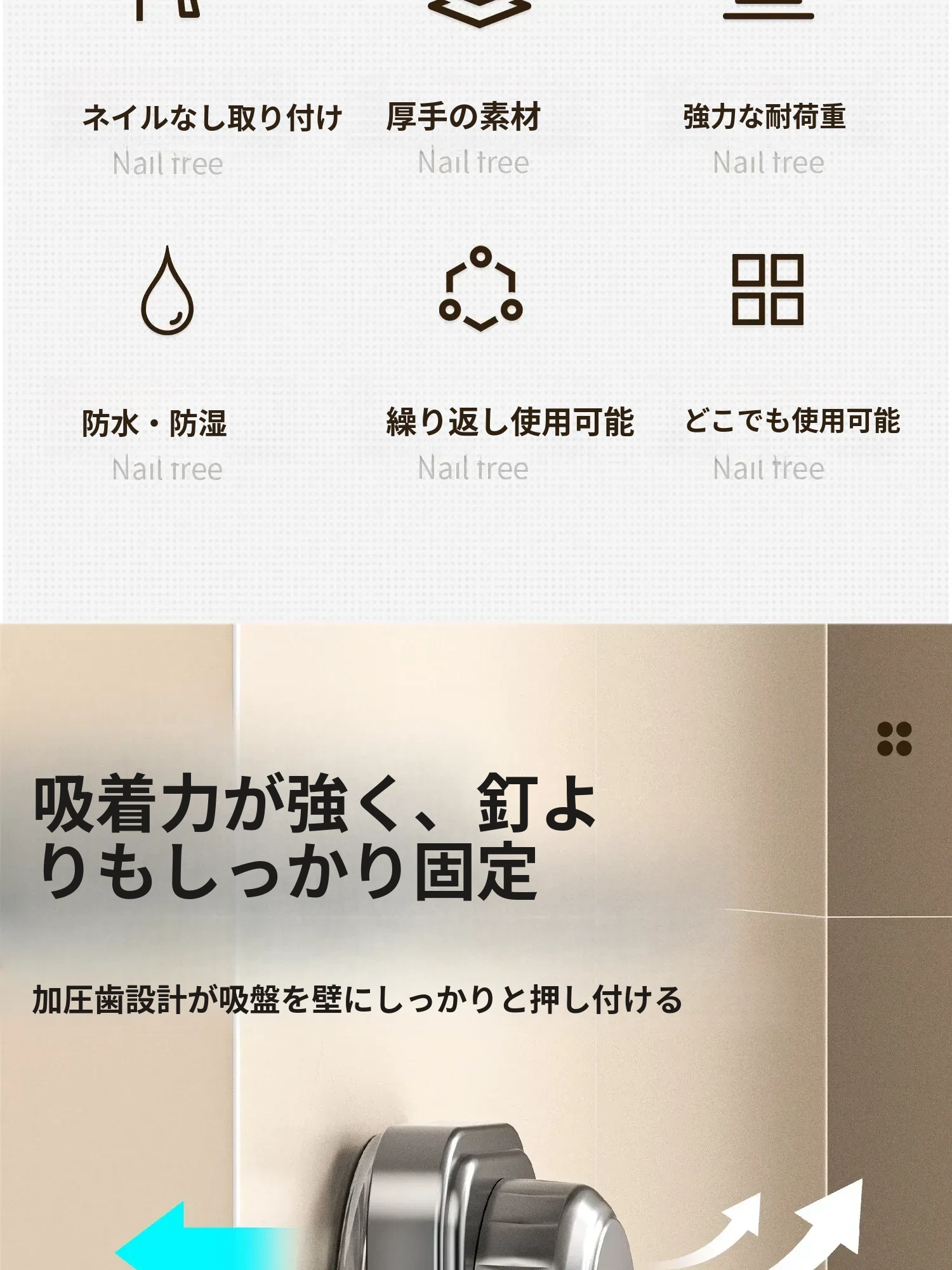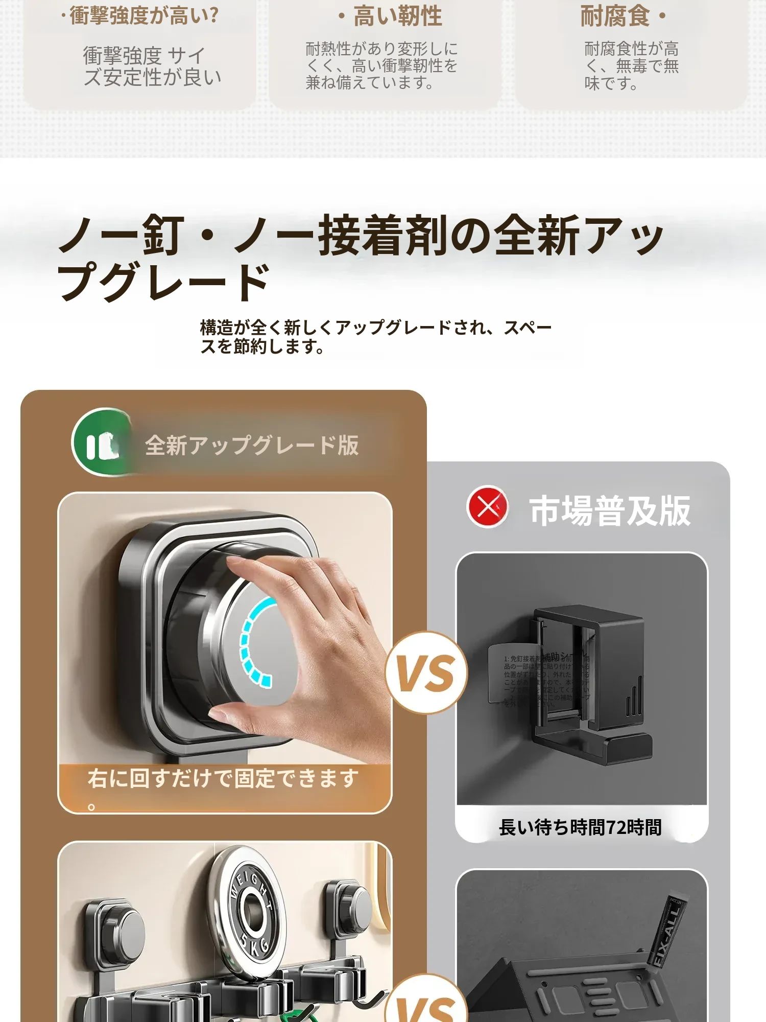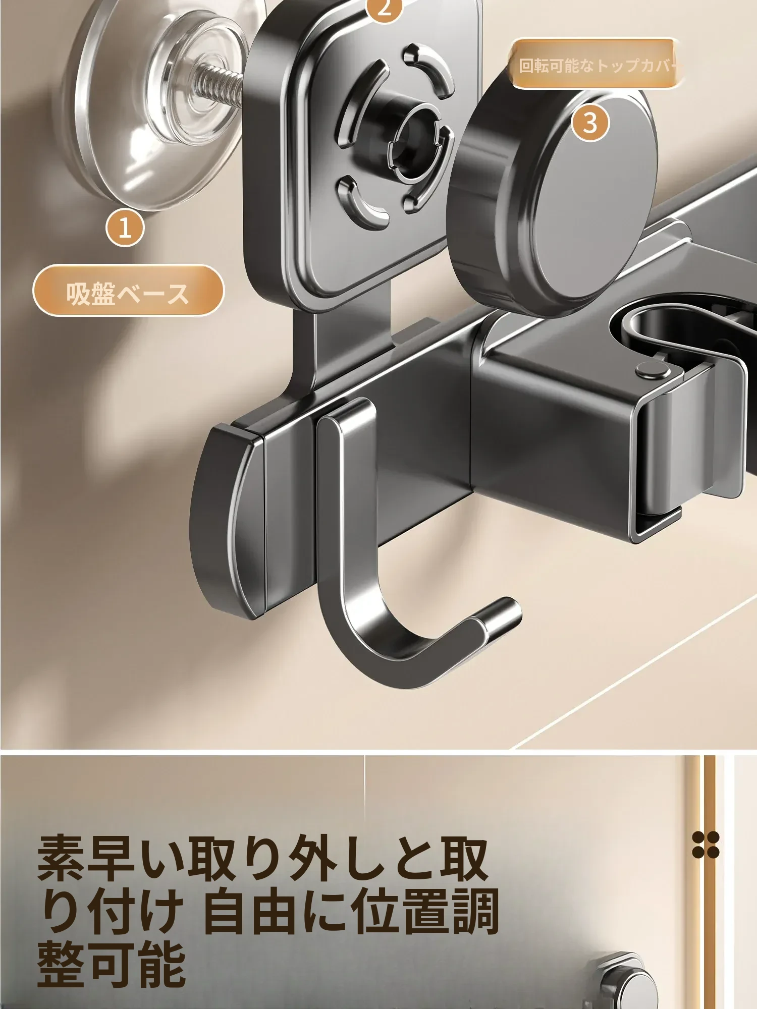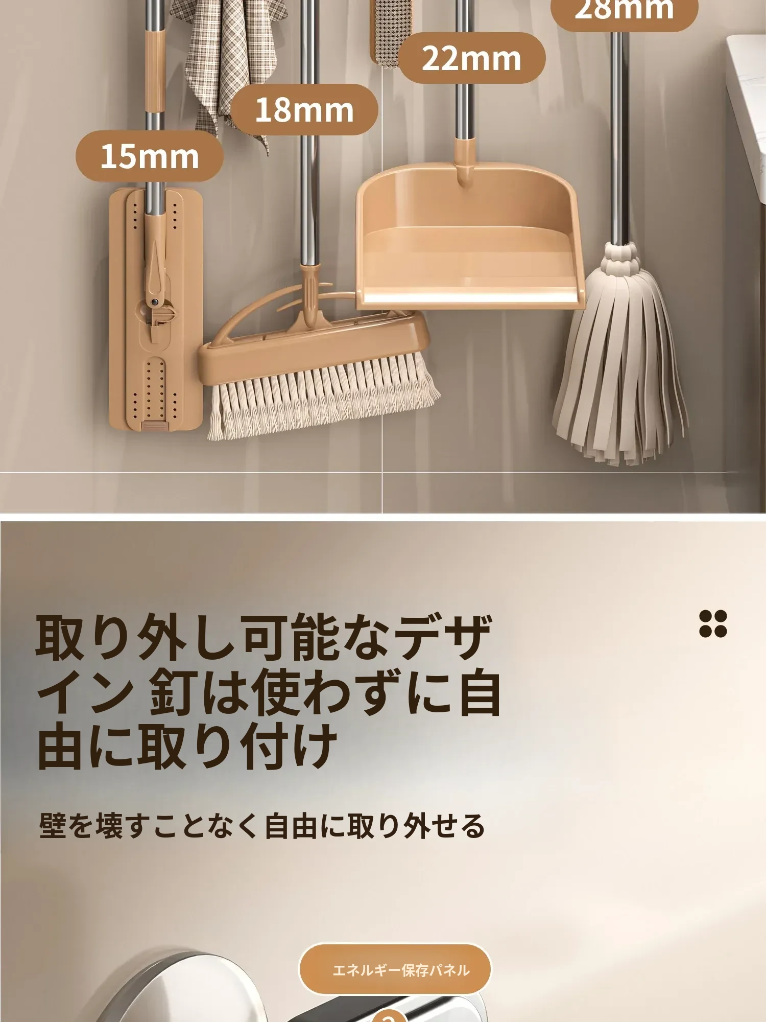 吸盤モップ壁掛けクリップ - 取り付け不要のフックで、トイレの壁に固定!掃除道具をスッキリ収納できる便利なスタンド。ブラシやほうきも一緒に整理整頓!