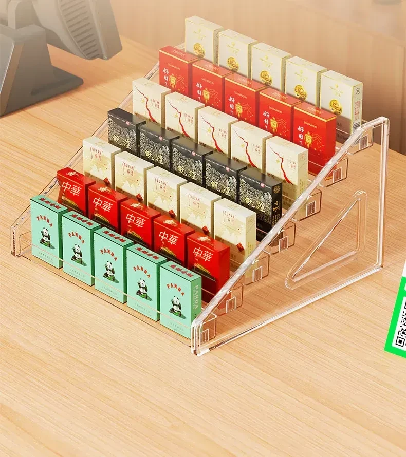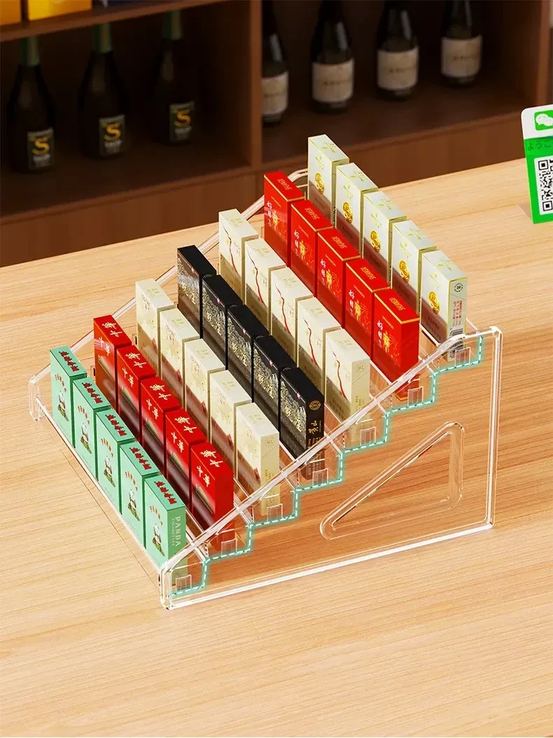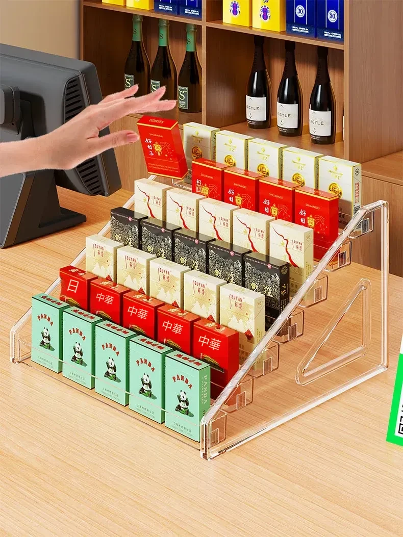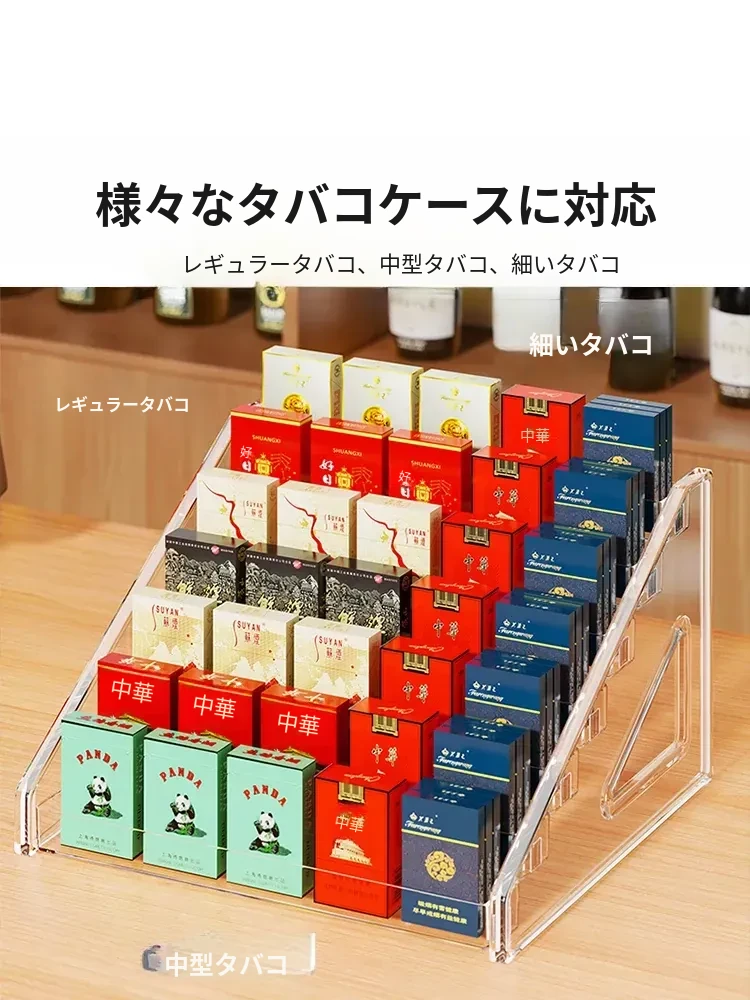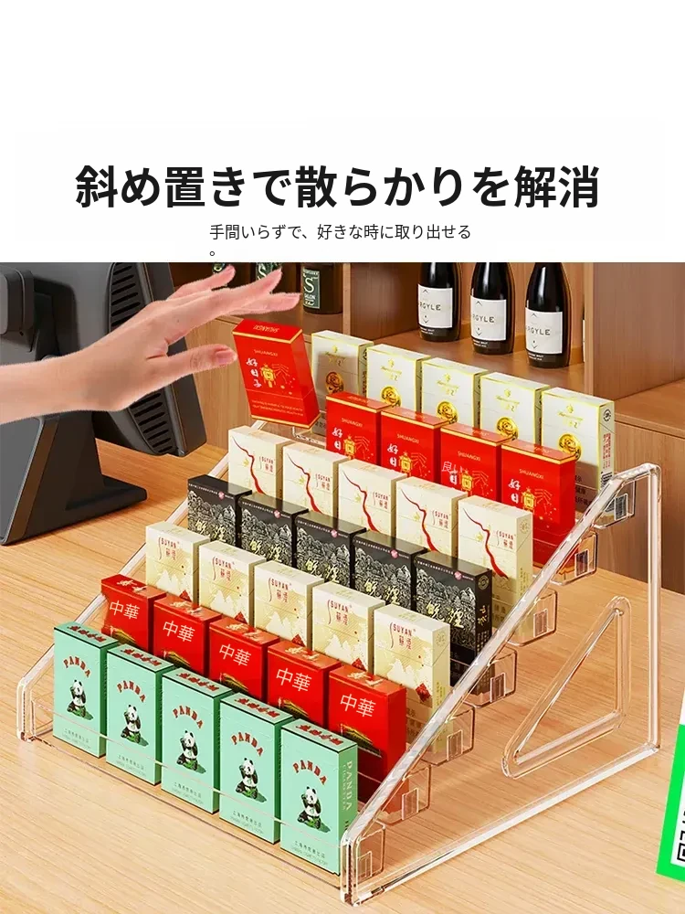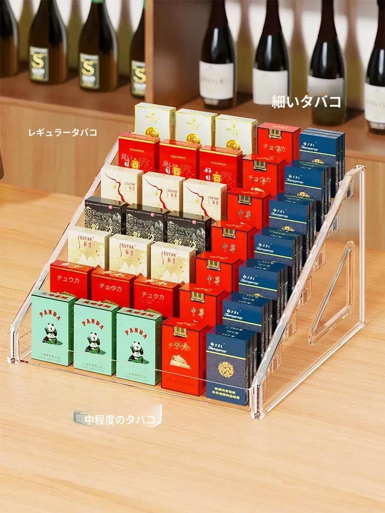 デスクトップ用煙草・酒収納ボックス|スーパー用階段型香煙・ガム陳列棚|便利店向け透明アクリルディスプレイラックでおしゃれに整理整頓!