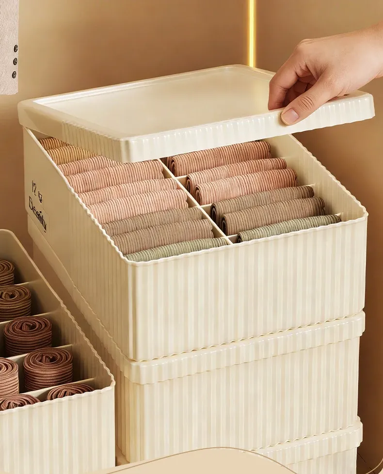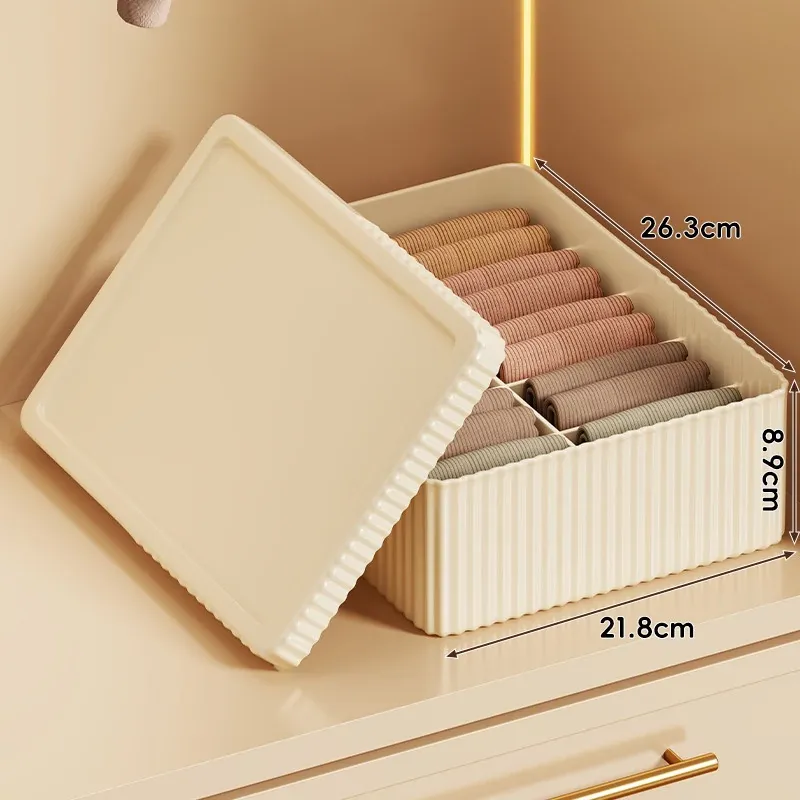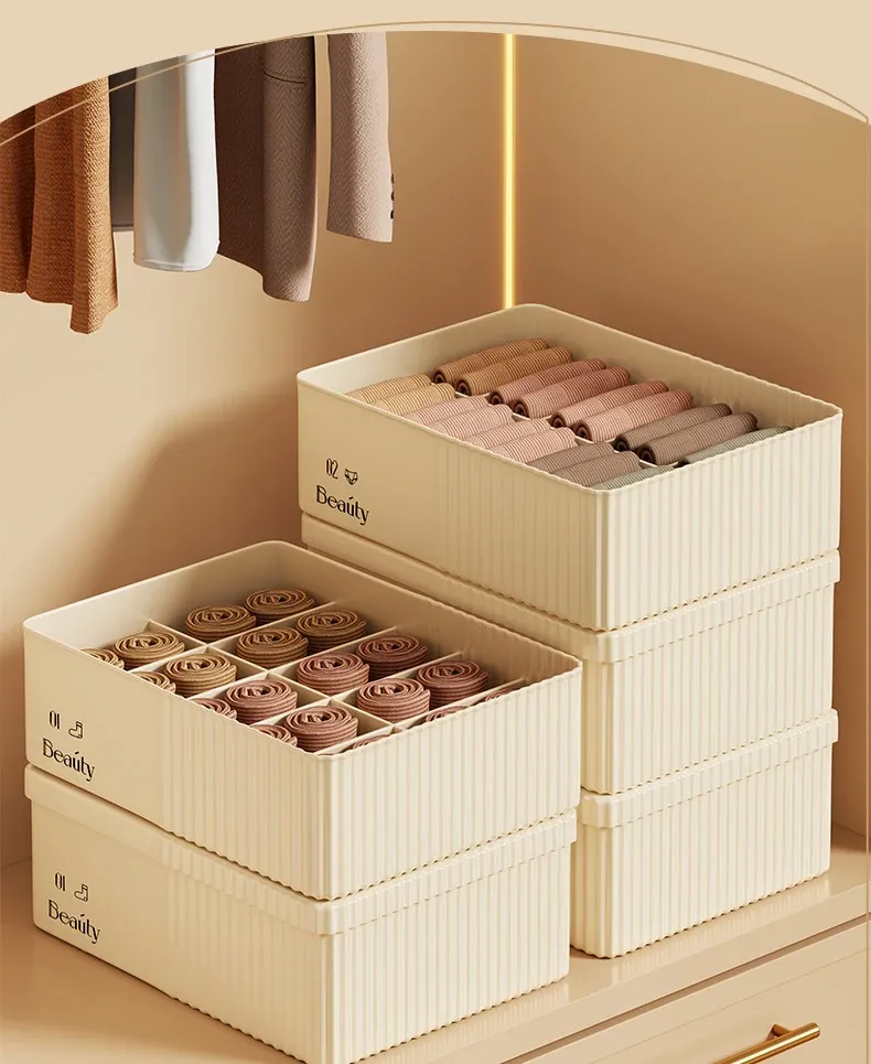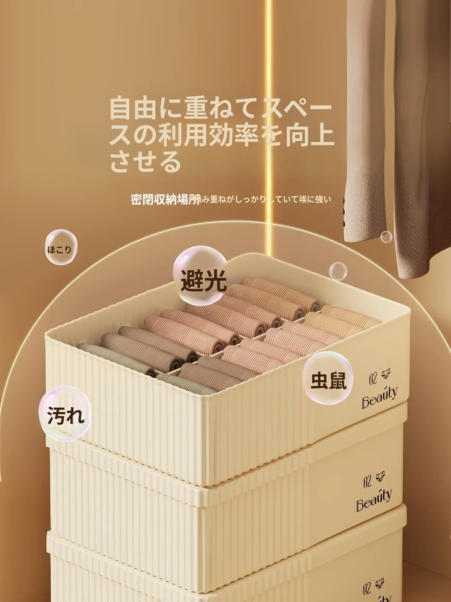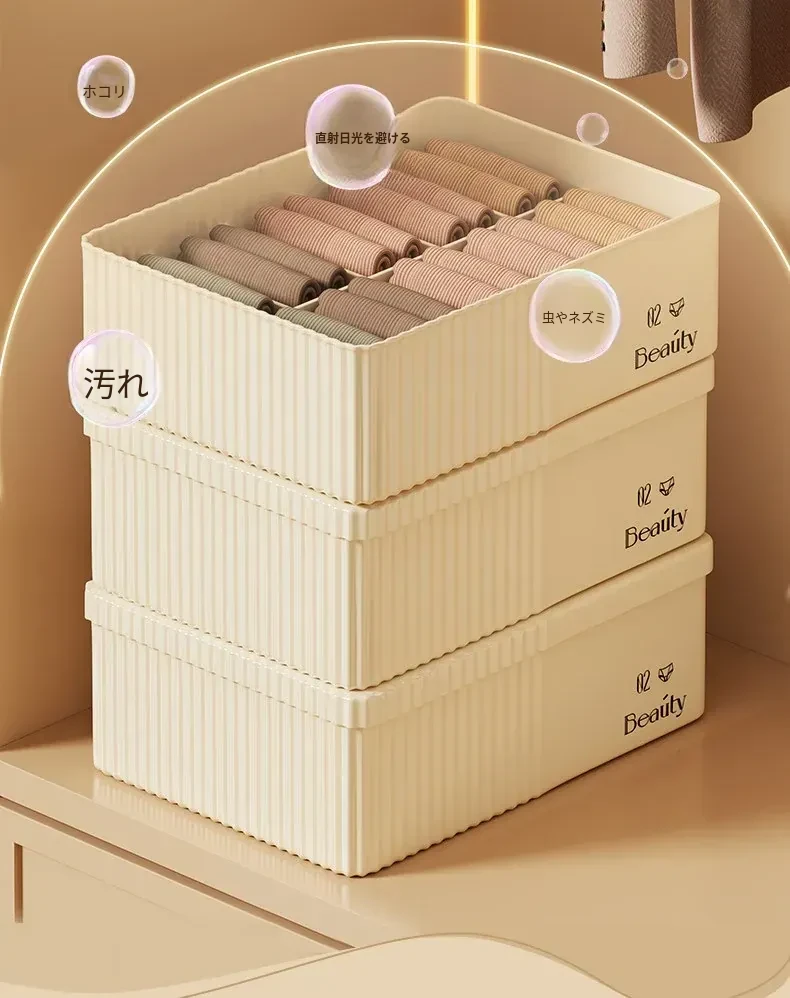 大容量内衣収納ボックス!衣類を整理整頓するための仕切り付き、ソックスやパンティー、ブラジャーをすっきり収納。クローゼットを美しく保ち、探しやすくする整理整頓アイテム!
