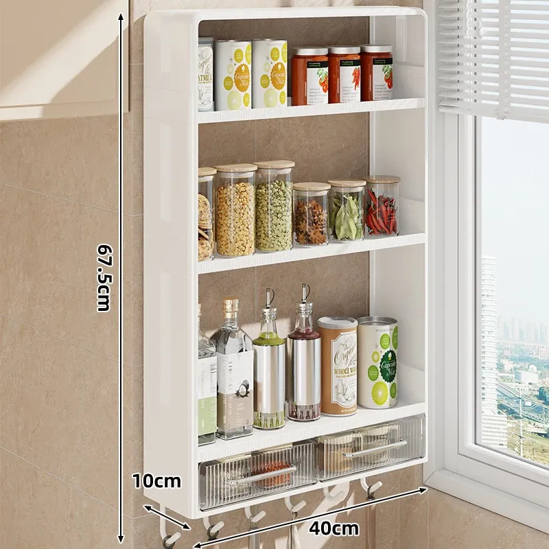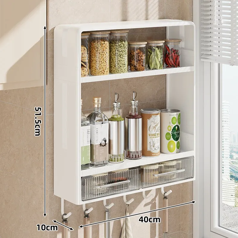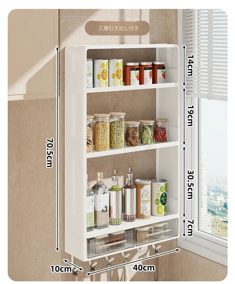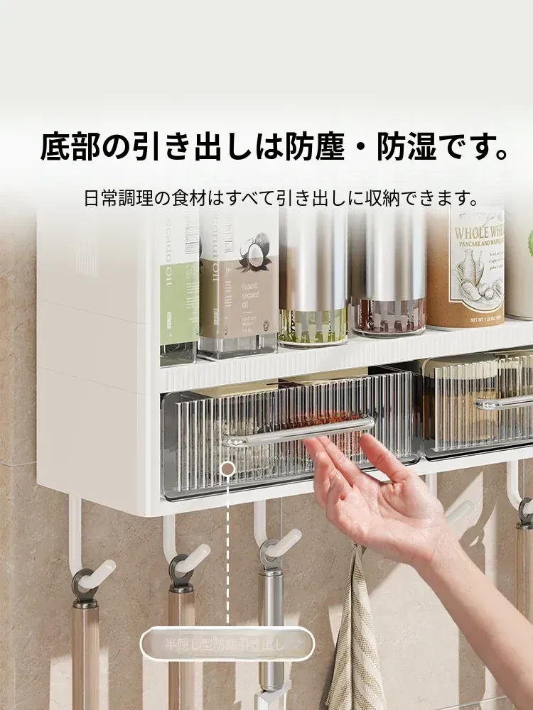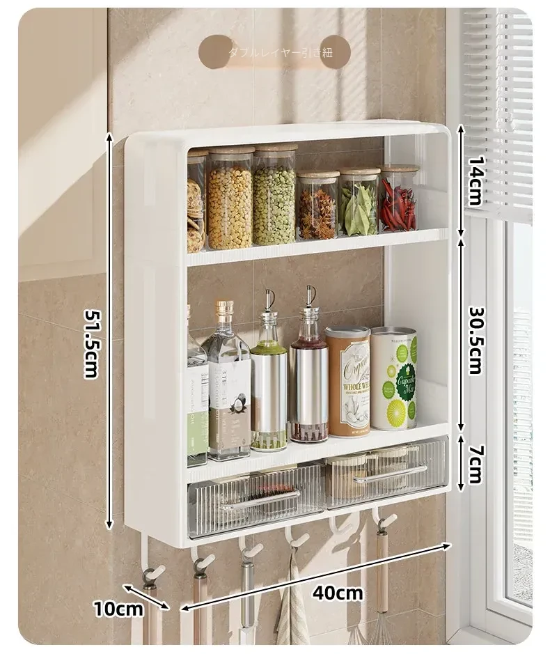 壁掛け多機能キッチン収納ラック - 調味料、油、塩、醤油、酢をスマートに整理!穴あけ不要で簡単取り付け、スッキリとしたキッチン空間を実現します。