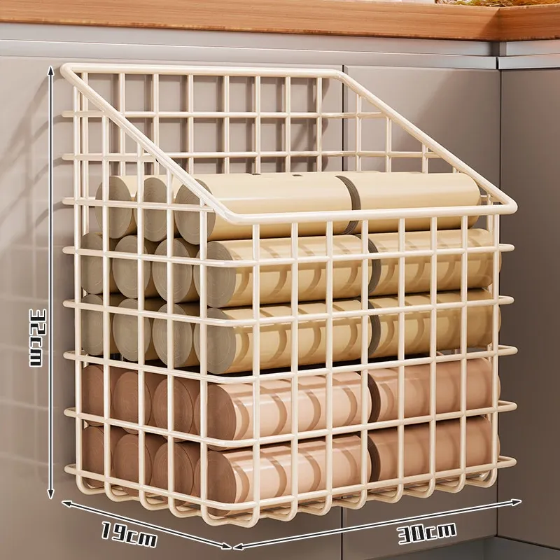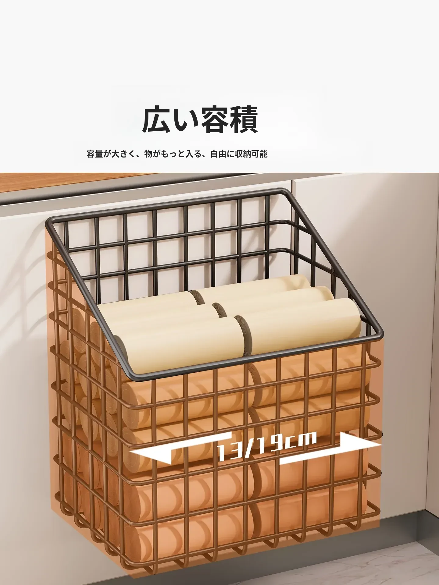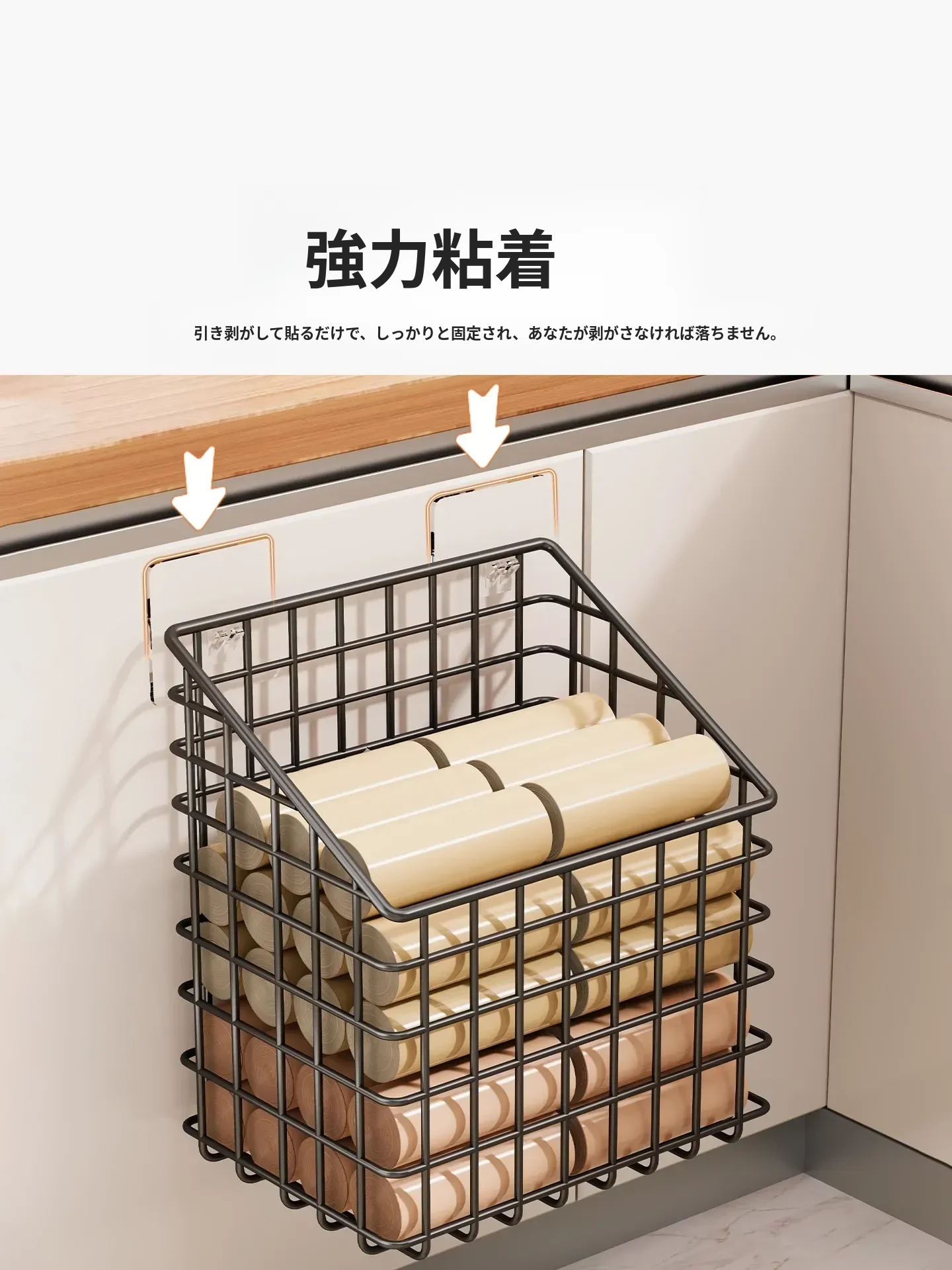 キッチンゴミ袋収納マジック!壁掛け式大容量収納ラック、キャビネットドアにぴったり!プラスチック袋やショッピングバッグもすっきり整理。使いやすさとスタイリッシュさを兼ね備えた便利アイテム!