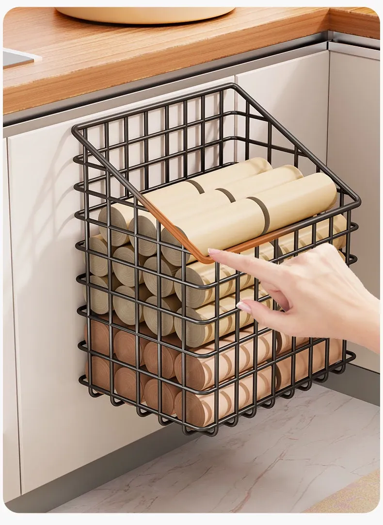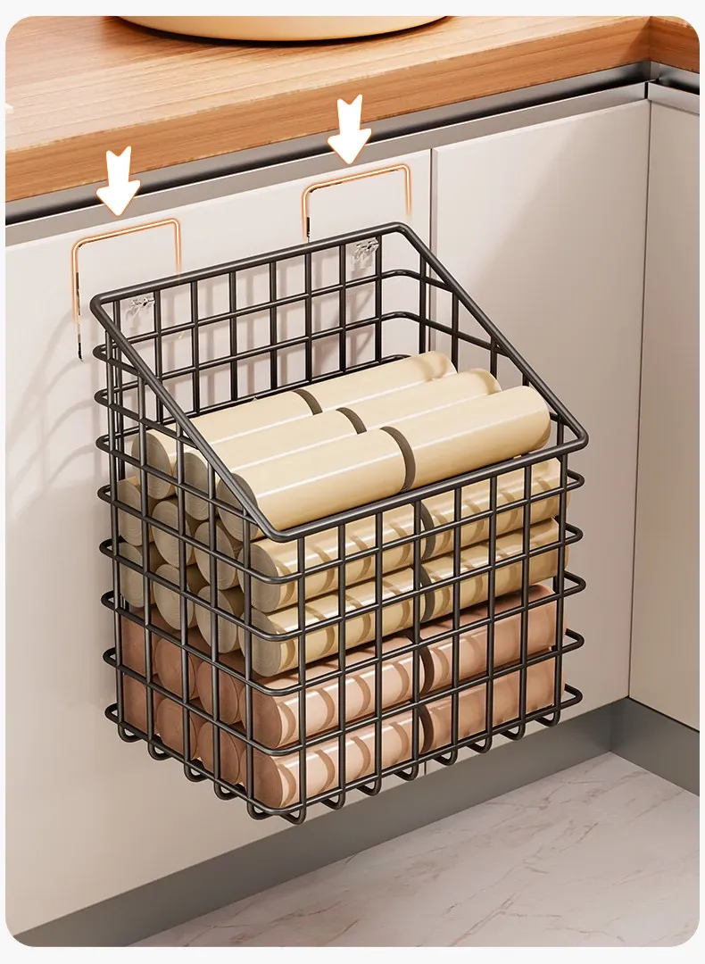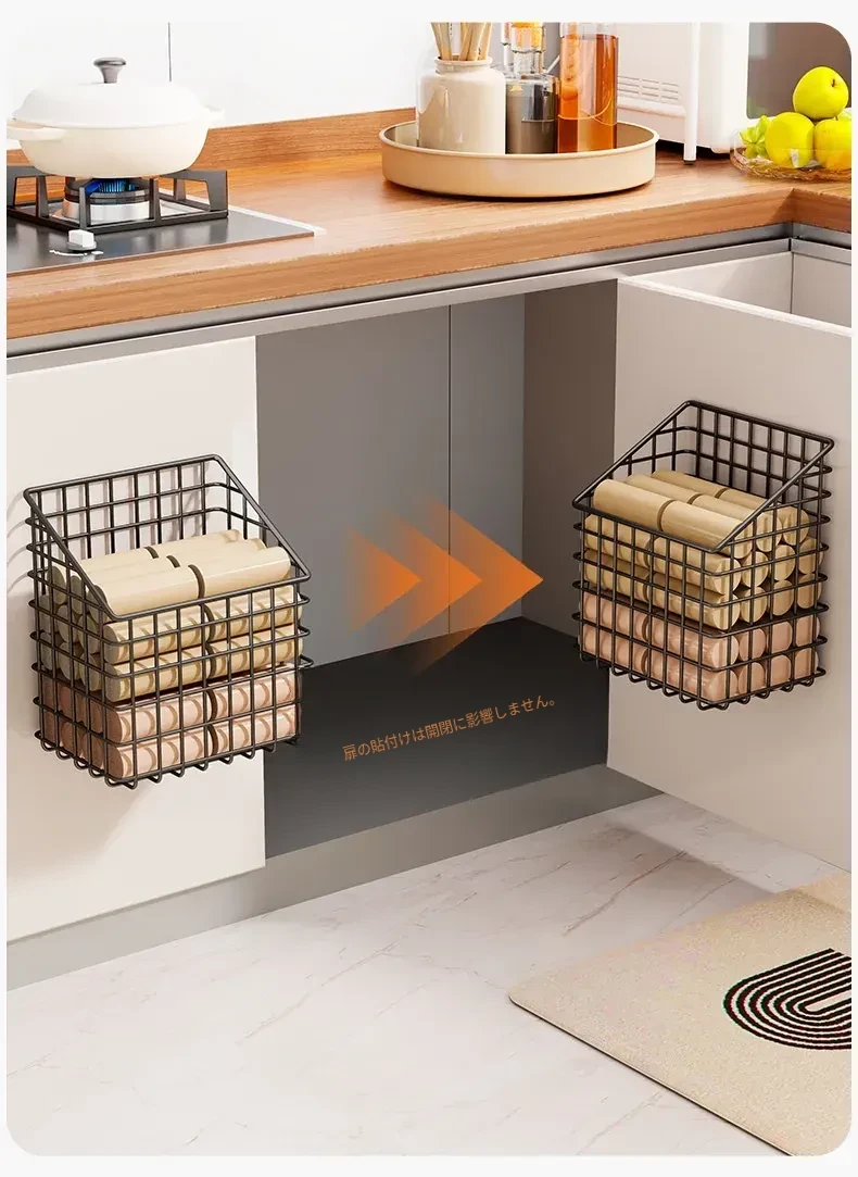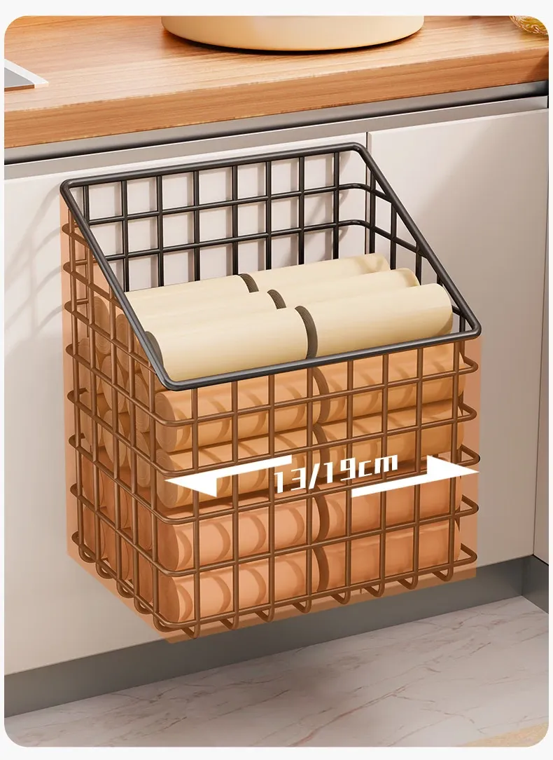 キッチンゴミ袋収納マジック!壁掛け式大容量収納ラック、キャビネットドアにぴったり!プラスチック袋やショッピングバッグもすっきり整理。使いやすさとスタイリッシュさを兼ね備えた便利アイテム!