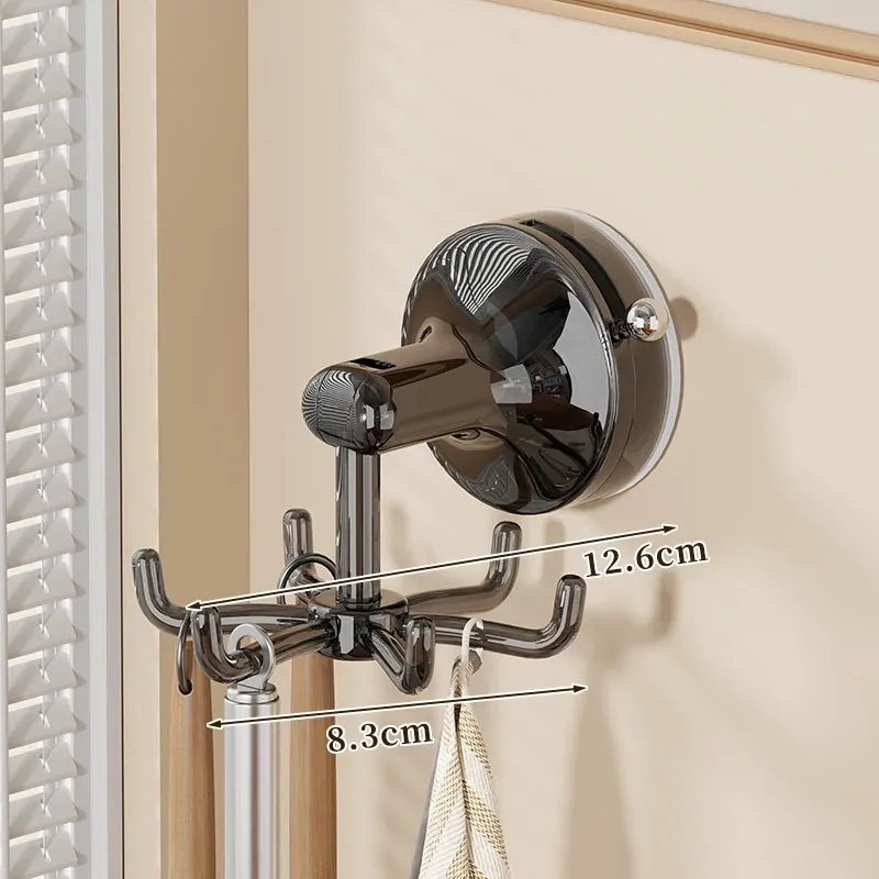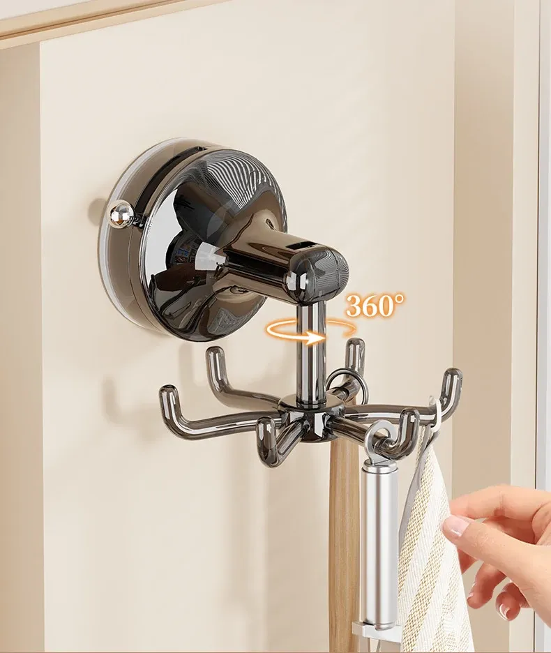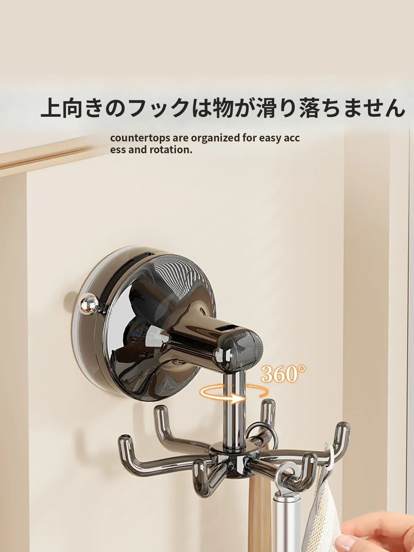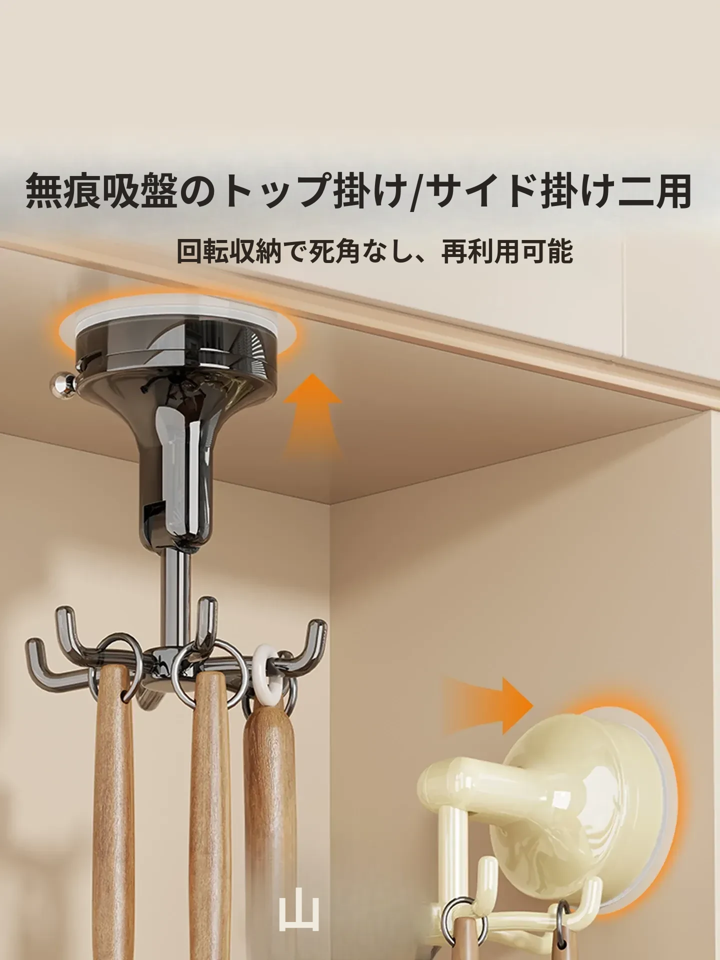 キッチン吸盤フック 壁掛け式 回転おたま・スプーン収納ラック 無痕・穴あけ不要の便利な調理器具収納棚!あなたのキッチンをスッキリ整理し、使いやすさをアップ!