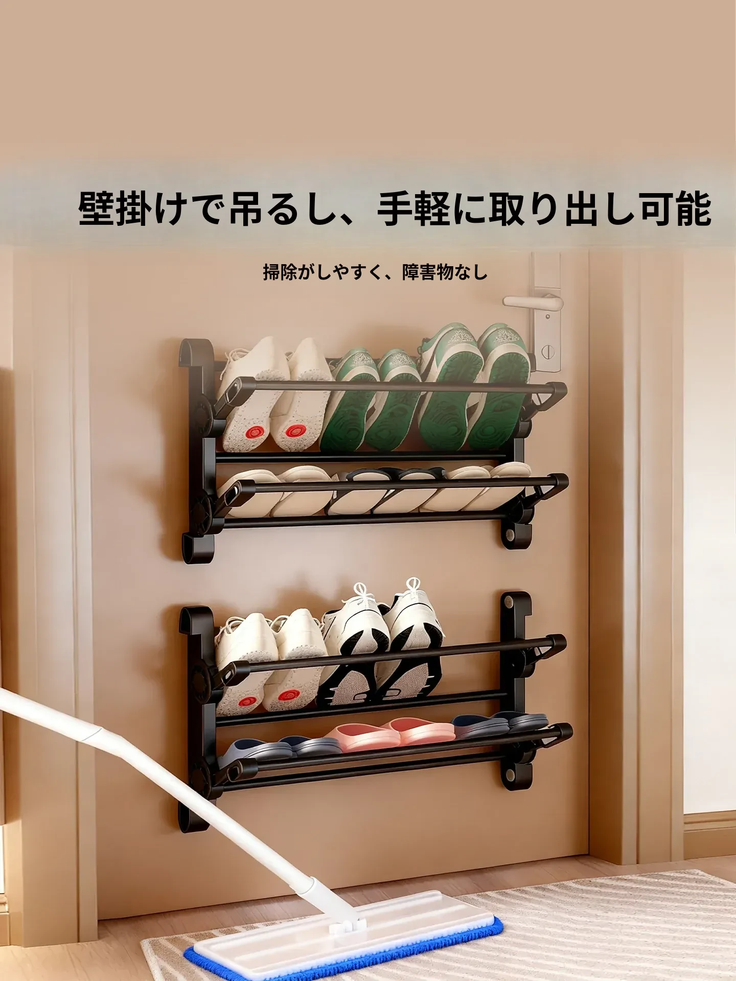 65CM長-折りたたみ可能【6足の靴を収納可】