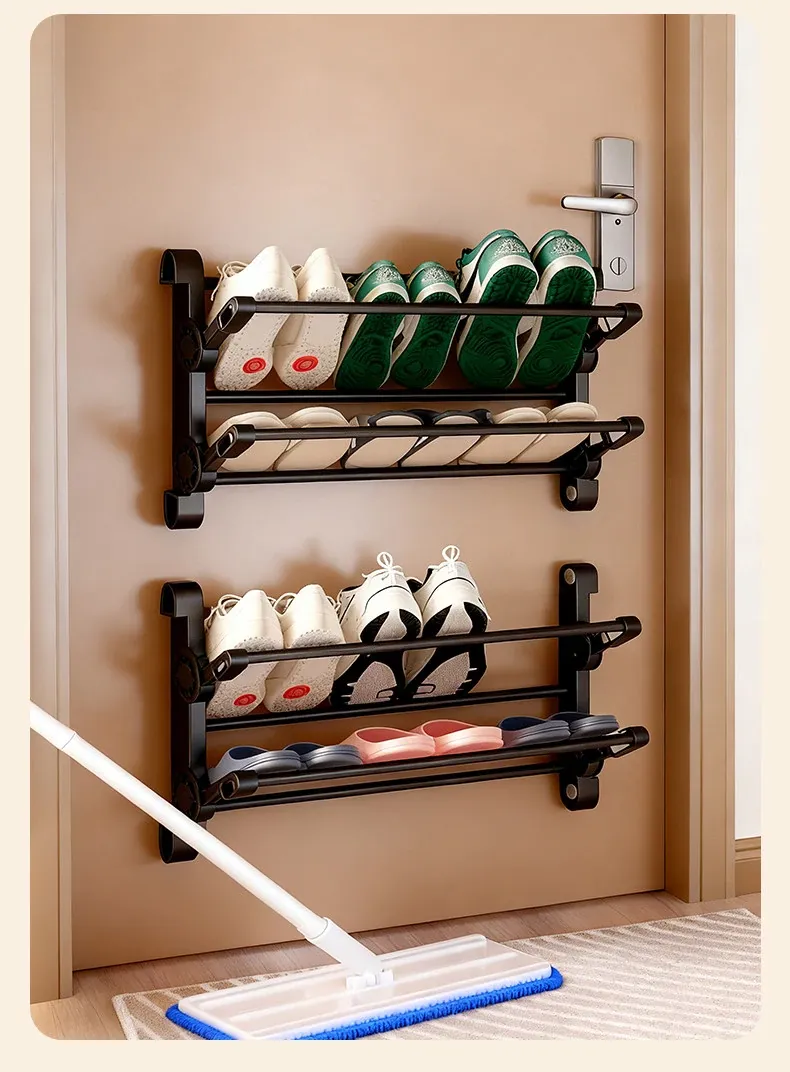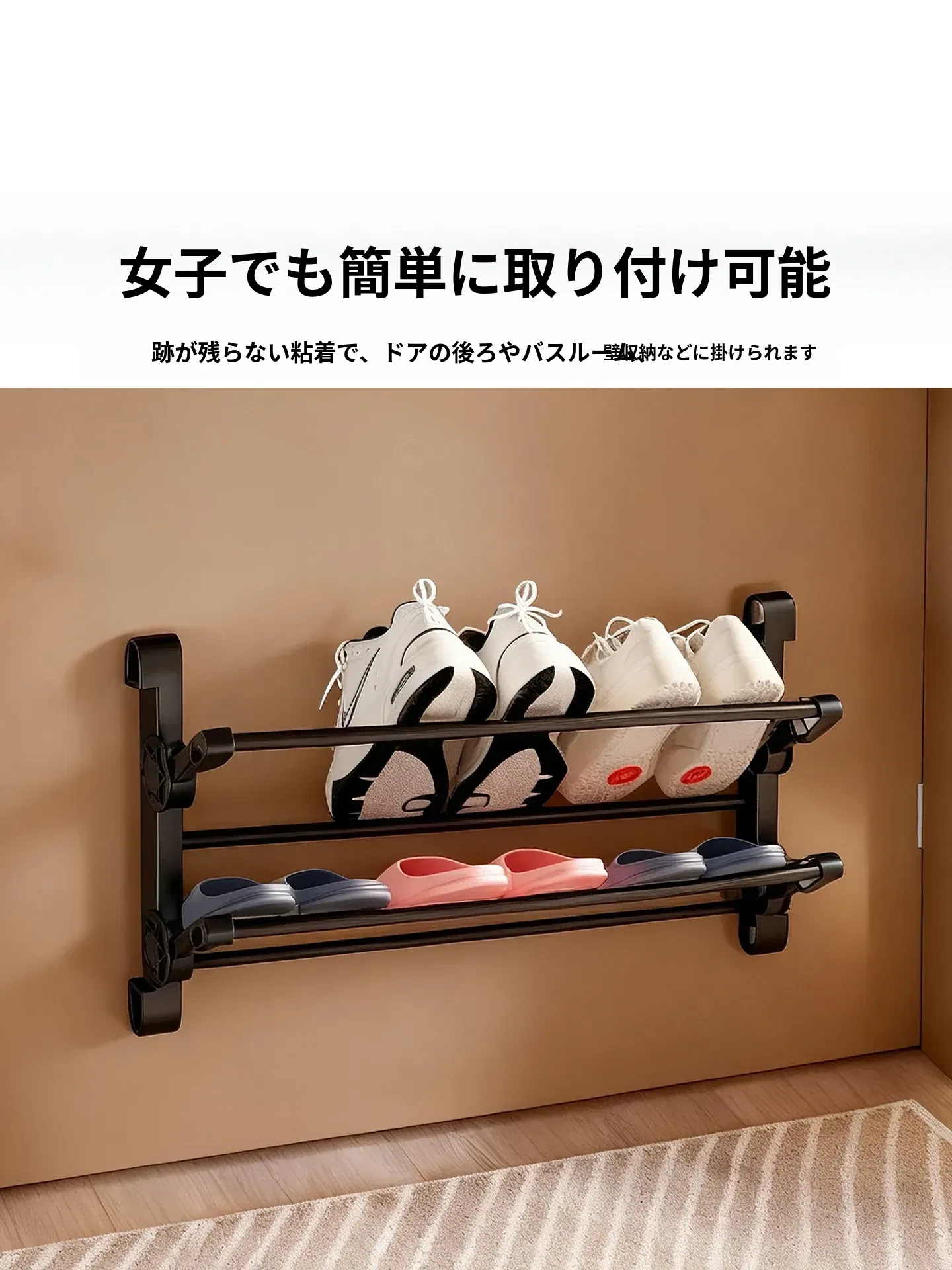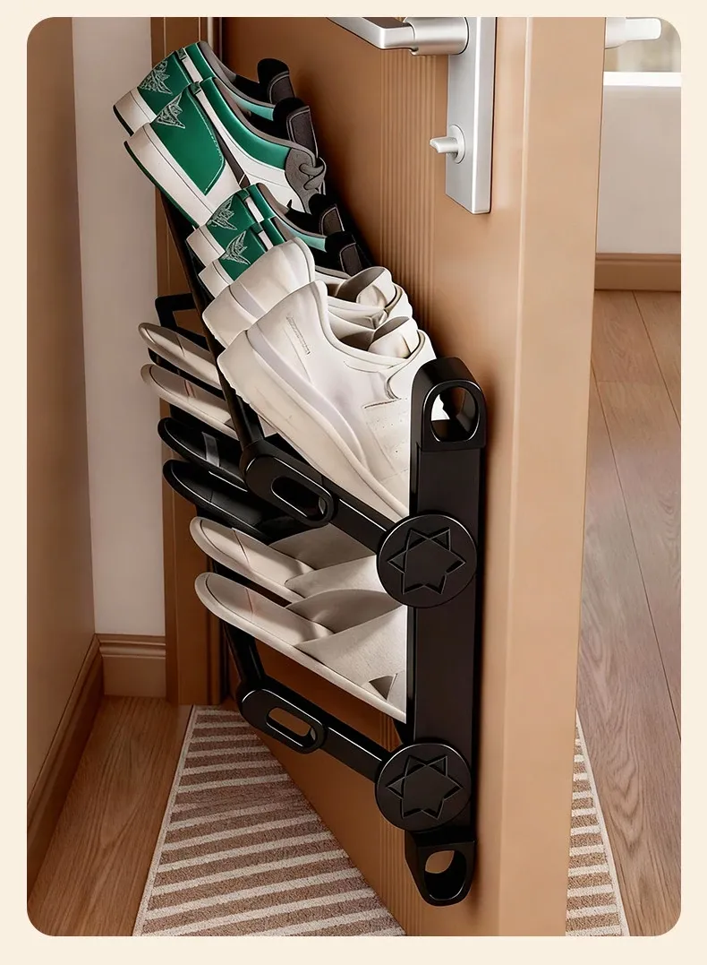 おしゃれで便利!水切り付きスリッパラック - バスルーム用壁掛け収納、穴あけ不要の折りたたみ式整理棚。ドア裏にぴったり収納、清潔でスマートな空間を実現!
