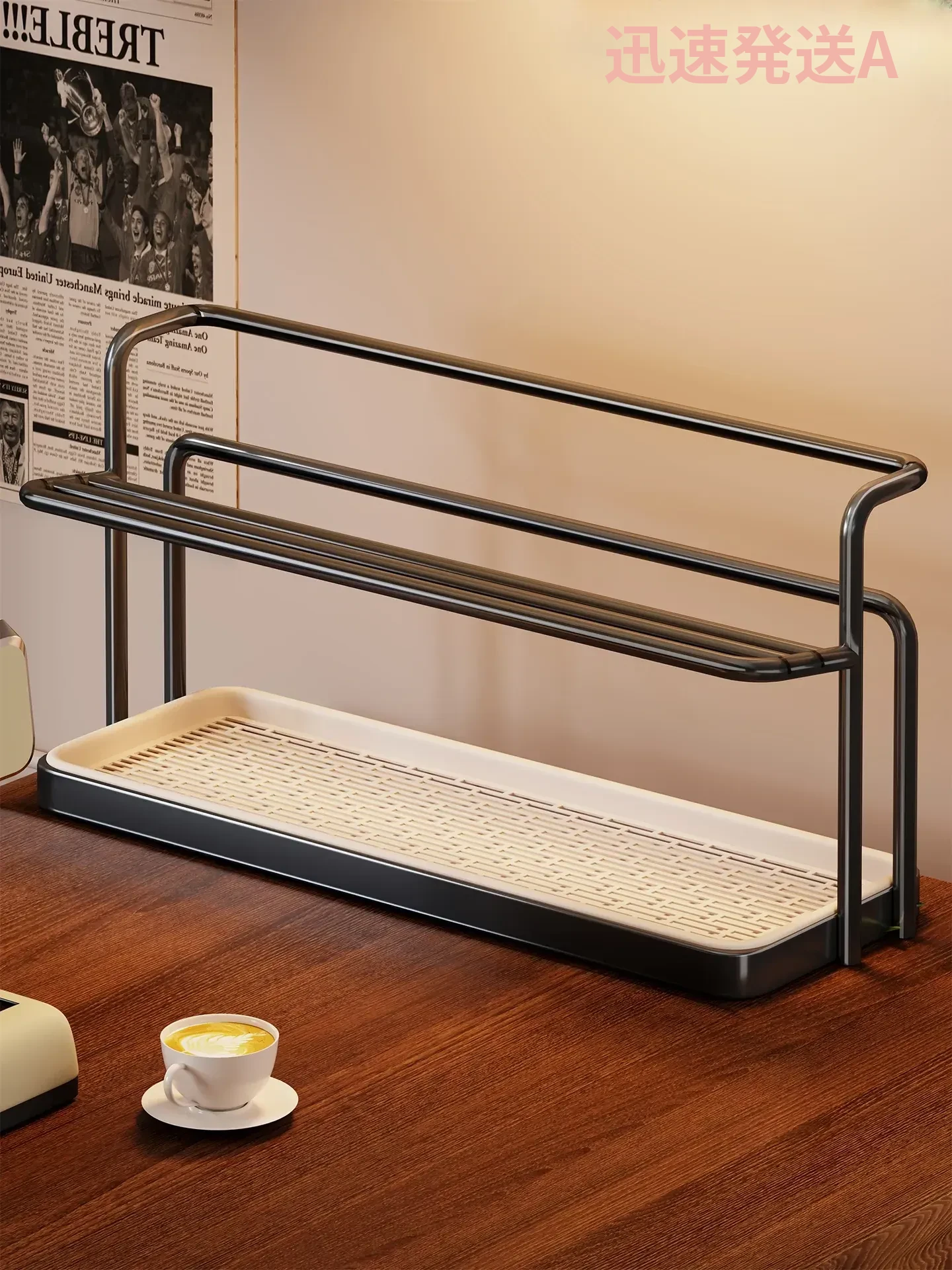 水切りカップスタンド - ダブルレイヤー収納でカフェスタイルのキッチンを演出!コーヒーカップやティーカップをスッキリ整理、家庭用に最適なテーブル用アイテム!