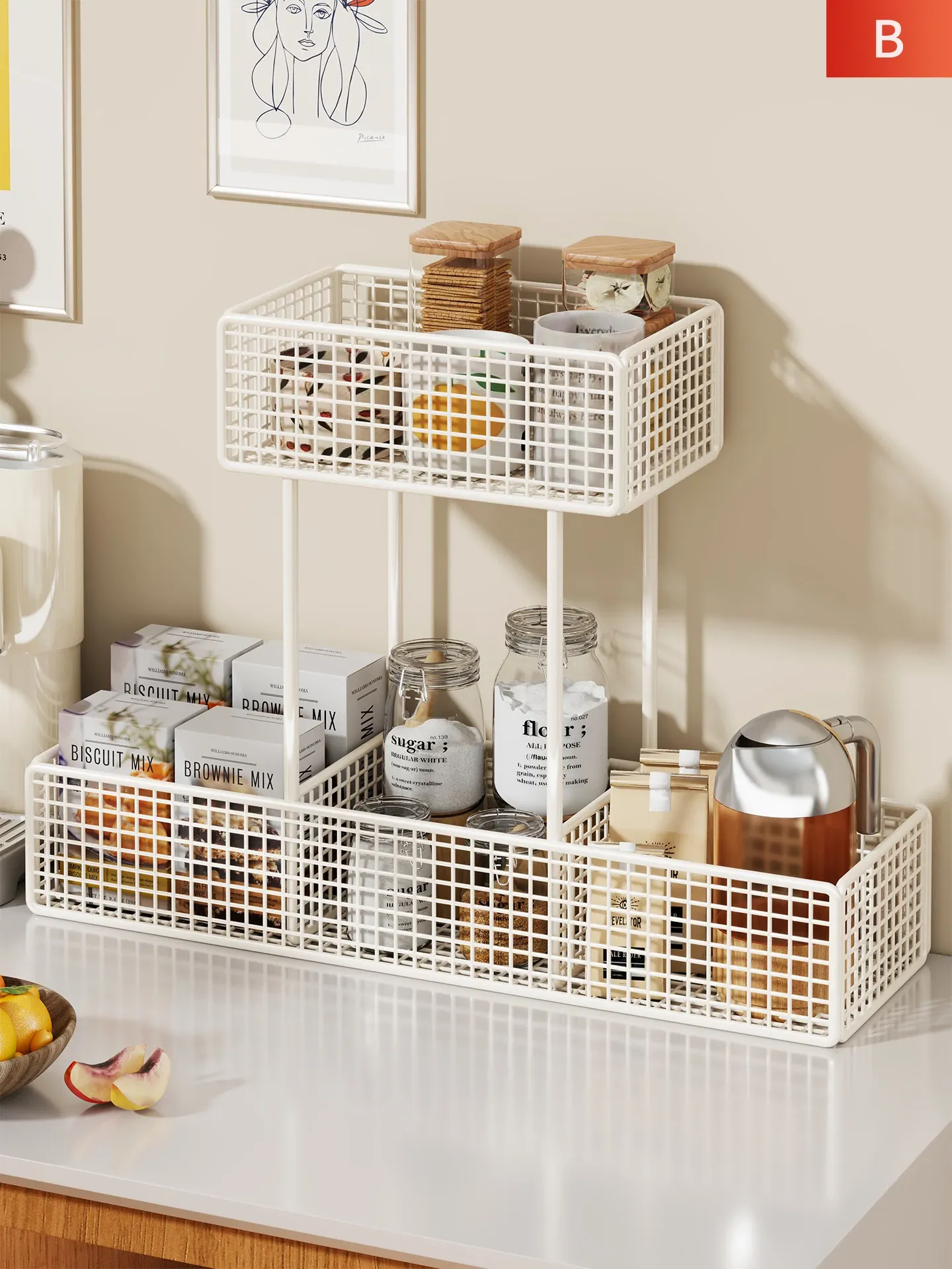 デスク上の整理整頓に最適!多層ティーバッグ&スナック収納ラック - キッチンやダイニングテーブルをスッキリ整頓。調味料も一目でわかる便利なアイテム!