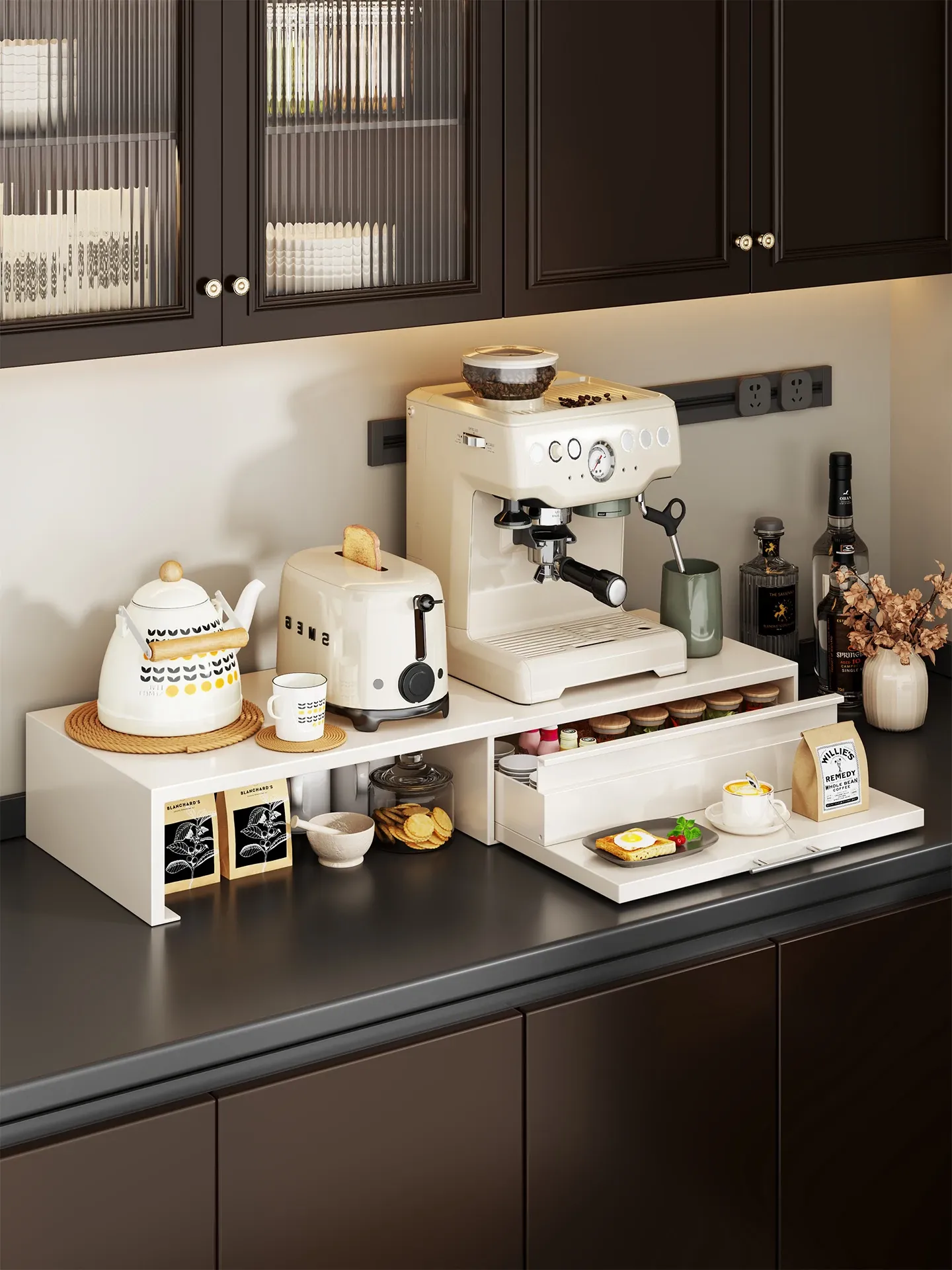 コーヒーメーカー置き台&スナック収納ラック - 厨房の整理整頓に最適!電気炊飯器も置ける頑丈な引き出し付き台面スタンドで、スペースを有効活用し、美しいキッチンを実現!