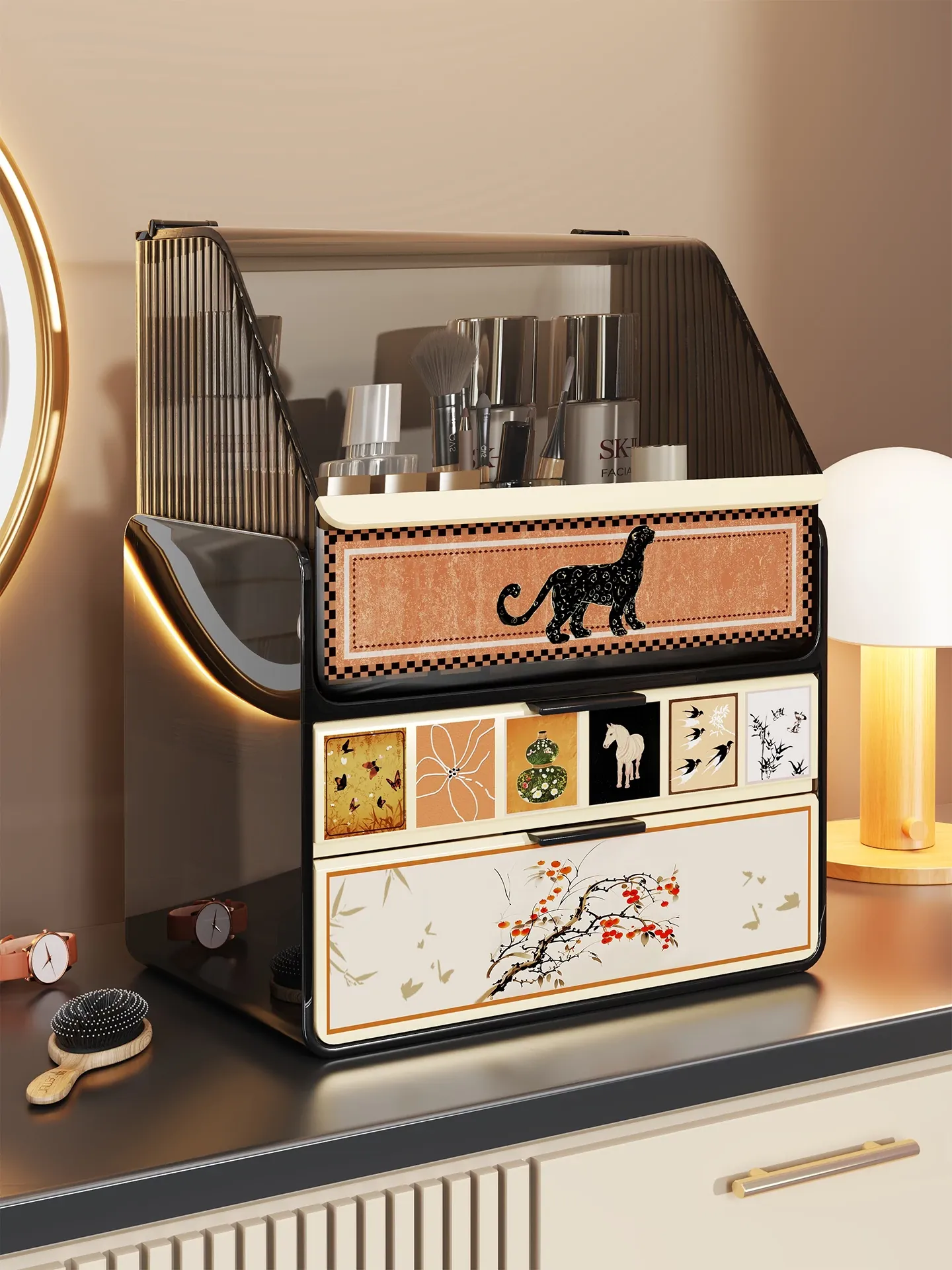 高級感漂うドレッサー収納ボックス!デスク上の化粧品をすっきり整理、ほこりから守る引き出し式のリップ整理ケース&スキンケアアイテム置き場。あなたのビューティースペースをスタイリッシュに演出!