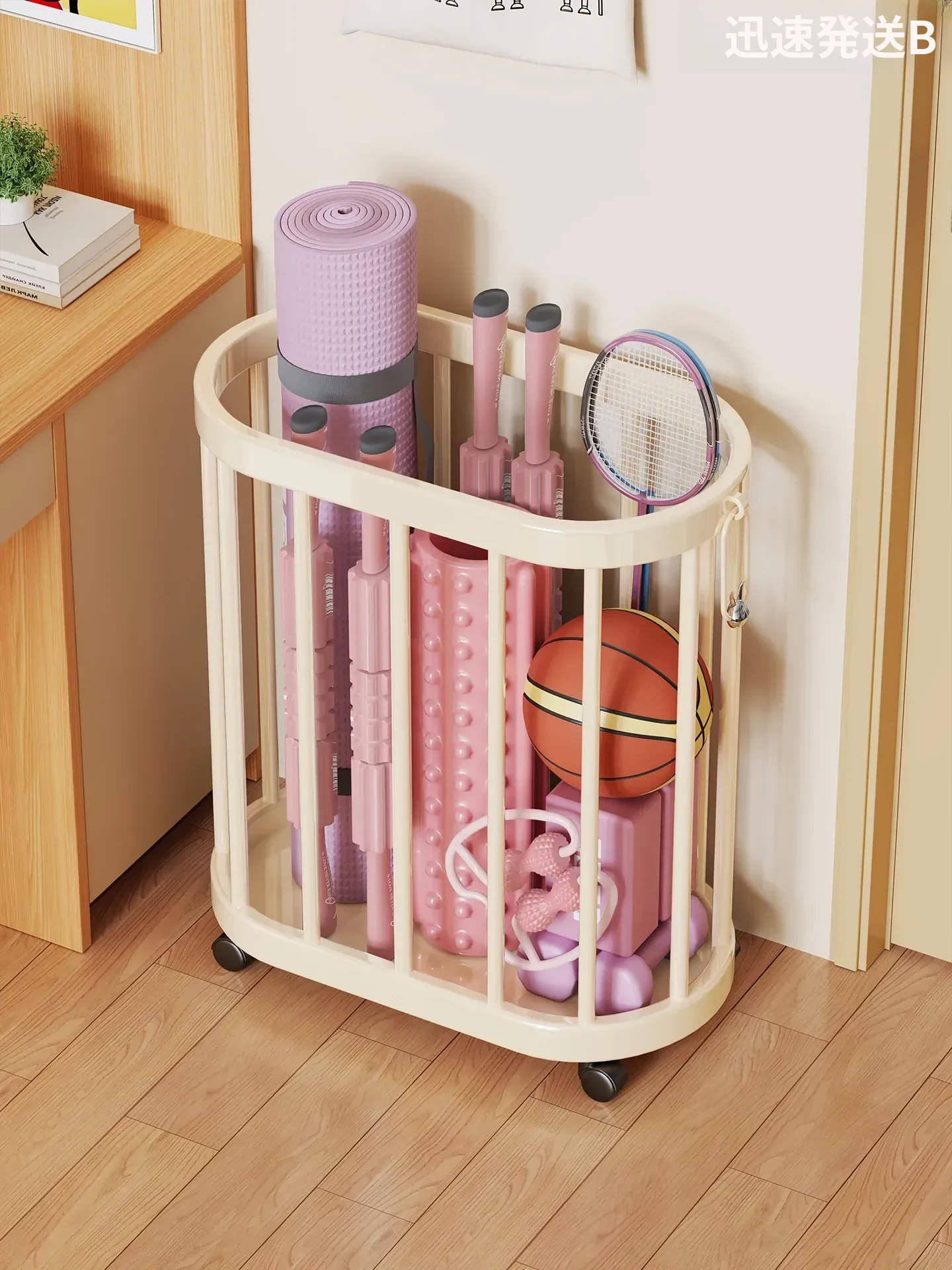 ヨガマット収納バスケット - 家庭用運動器具やバスケットボールなど、スポーツ用品をすっきり整理!便利なフィットネス器具スタンドで、あなたのトレーニングスペースをおしゃれに演出します。