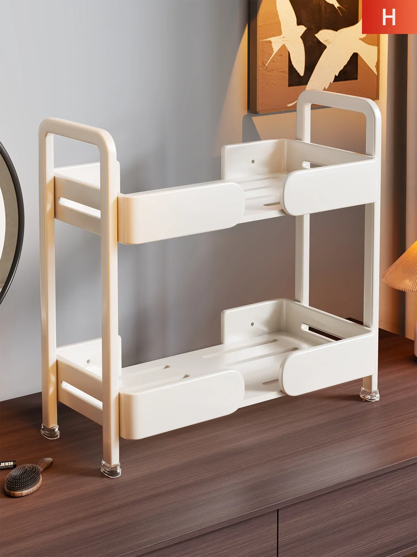 デスク用コーナー収納ラック - エントランスやキッチン、ダイニングテーブル、ドレッサーに最適!多層設計で水杯や化粧品をすっきり整理。小型で場所を取らず、スタイリッシュな空間を演出します!