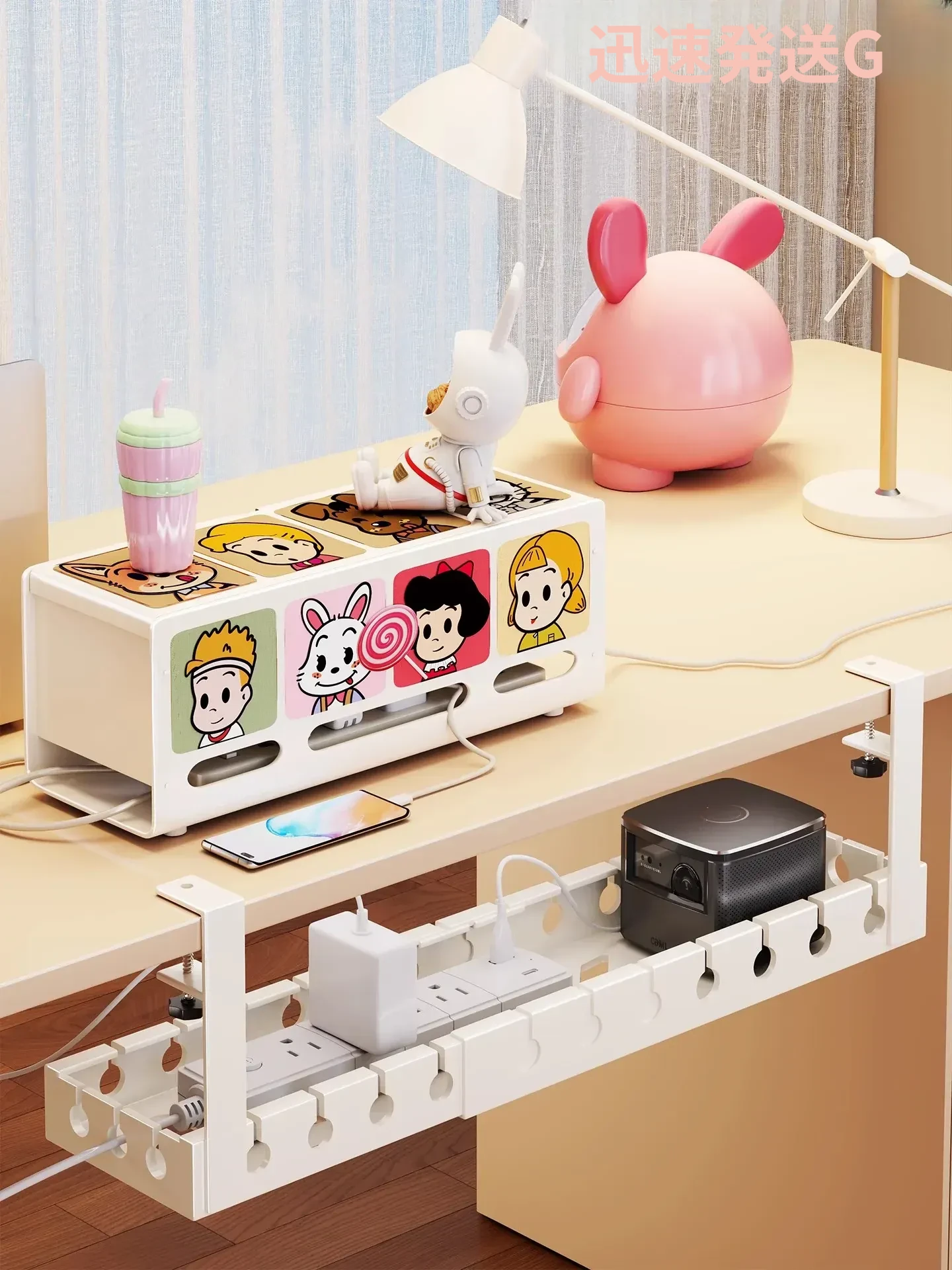 電源タップ収納ボックス - デスク上の電線整理に最適!スマホ充電器やデータケーブルもすっきり収納。スッキリとしたデザインで、あなたの作業スペースを美しく保ちます。