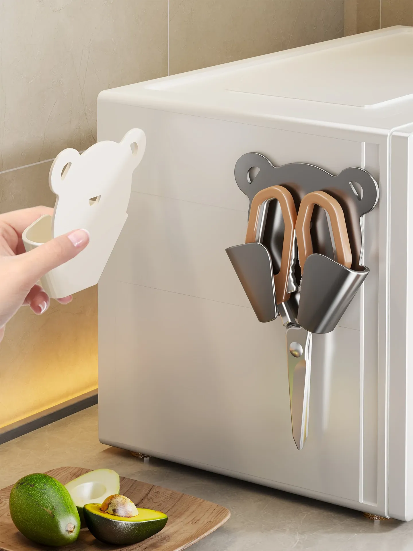 マグネット式ハサミホルダー 壁掛けキッチン用 磁石付きハサミ収納スタンド 穴あけ不要で簡単取り付け!多機能で傷から守る収納アイテム!