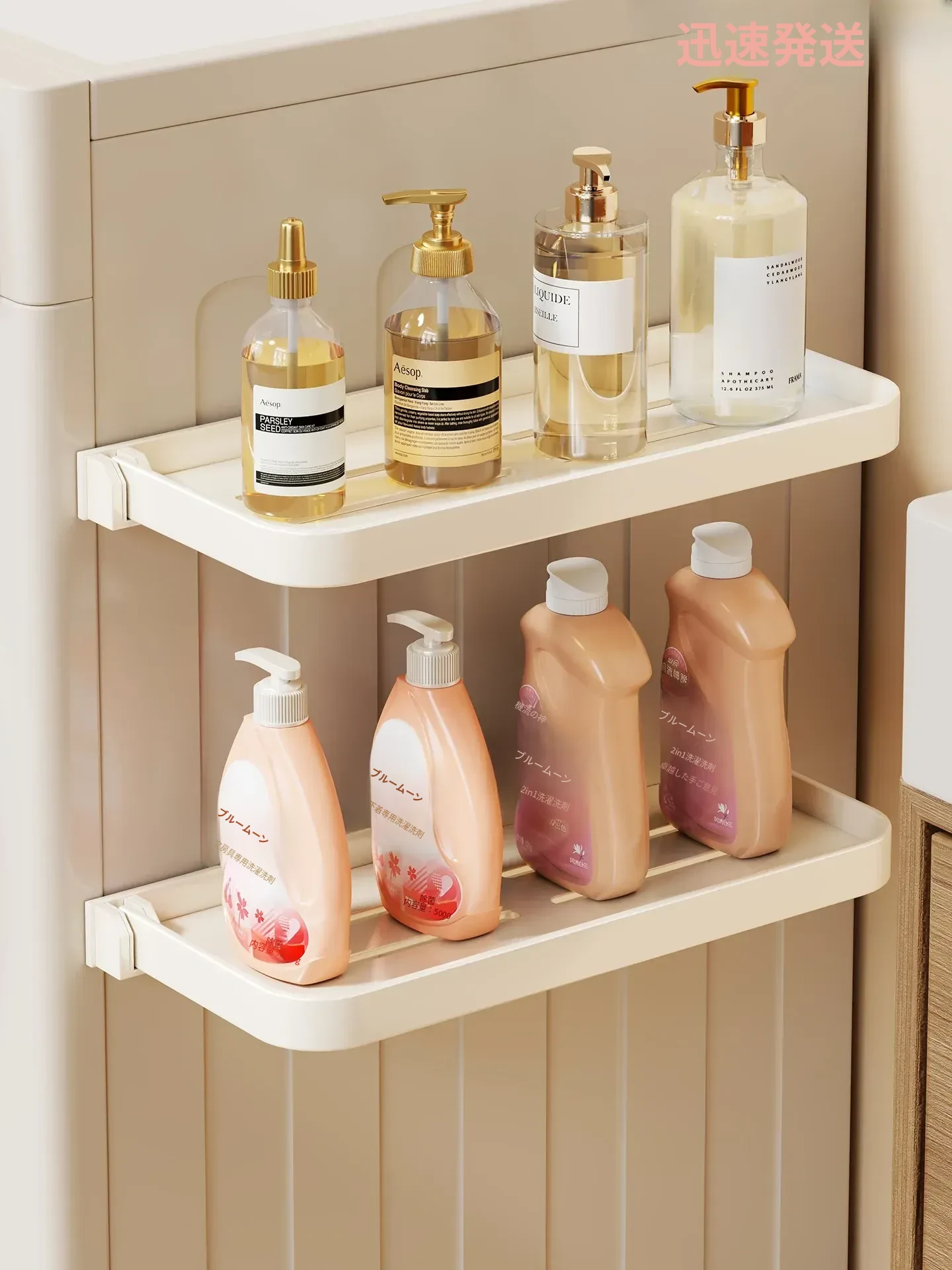 トイレ用折りたたみ収納ラック - 洗面台をスッキリ整理!壁掛け式で穴あけ不要、折りたたみ可能な洗面台ミラー前ラックで、スペースを有効活用し、あなたのバスルームをスタイリッシュに演出します!