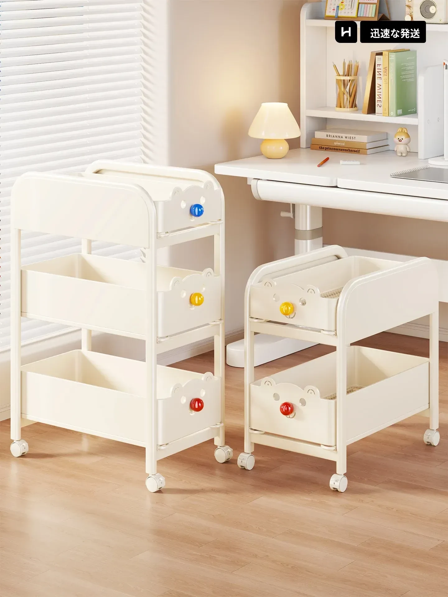 多機能キャスター付きブックシェルフ - 学生の教科書や本をスッキリ収納!デスク下にぴったりなコンパクト設計で、移動もラクラク。おしゃれで便利な収納アイテムで、勉強環境を整えましょう!
