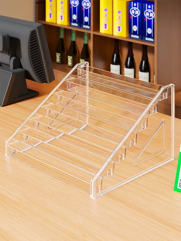 デスクトップ用煙草・酒収納ボックス|スーパー用階段型香煙・ガム陳列棚|便利店向け透明アクリルディスプレイラックでおしゃれに整理整頓!