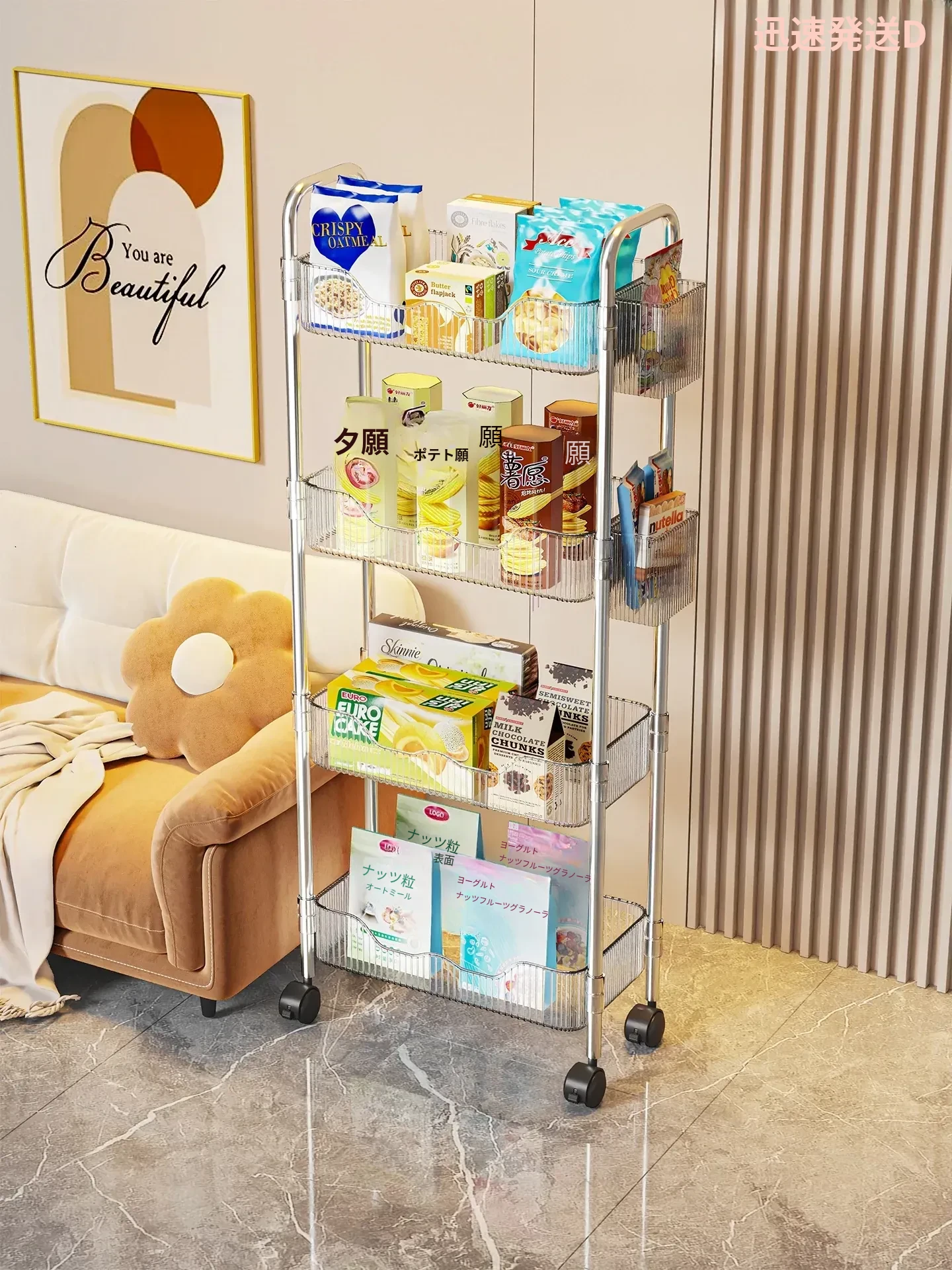 多機能小型キャリーラック - 家庭用のスタイリッシュな多層収納棚!お菓子やリュックもスッキリ整理できるアクリル製のデスク下収納の必需品!あなたの生活空間をおしゃれに変身させましょう!