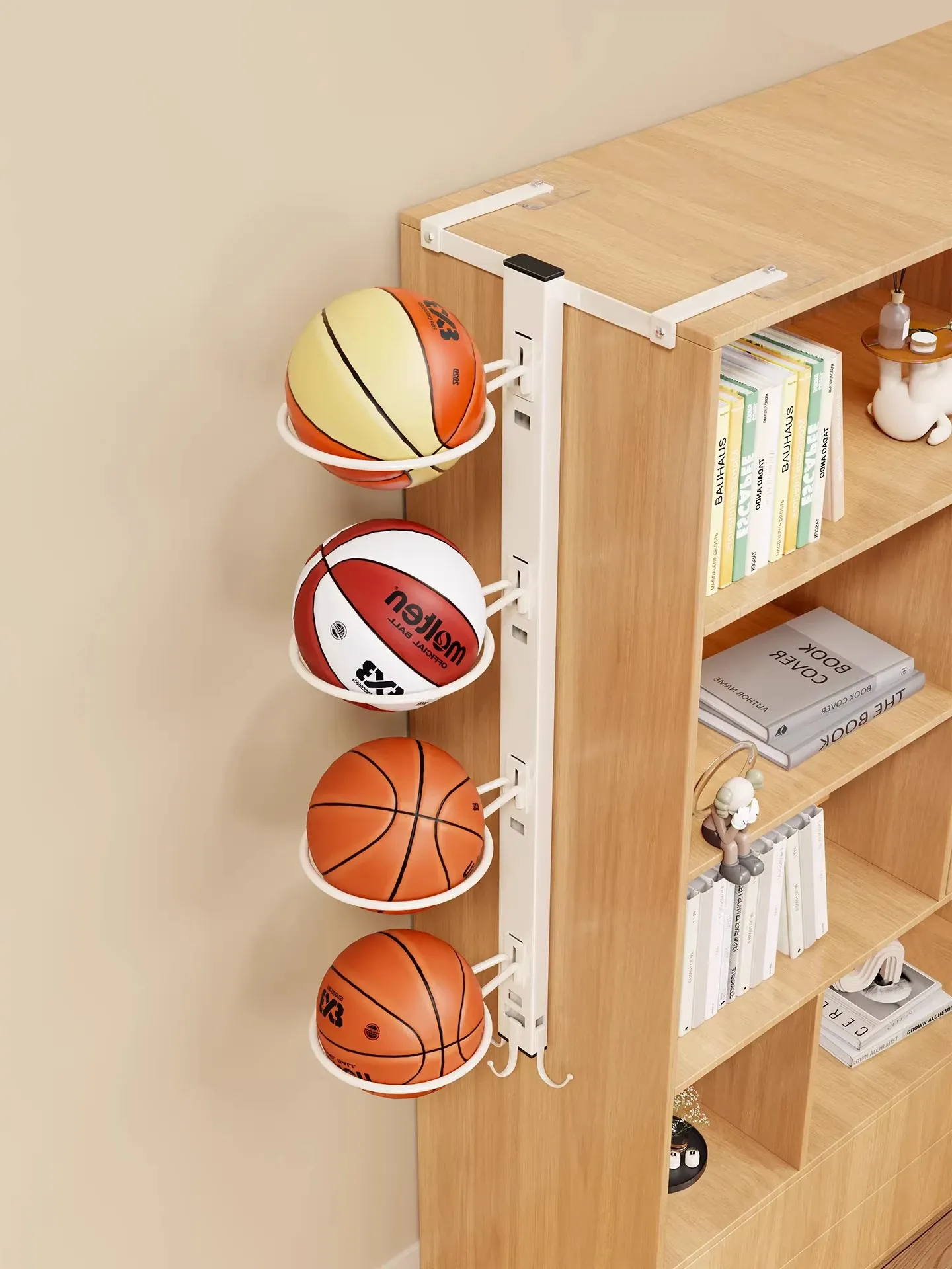 バスケットボール収納ラック - 家庭用壁掛け式、穴あけ不要の多層デザイン!バレーボールやサッカーも収納できる、スポーツ用品整理の必需品!